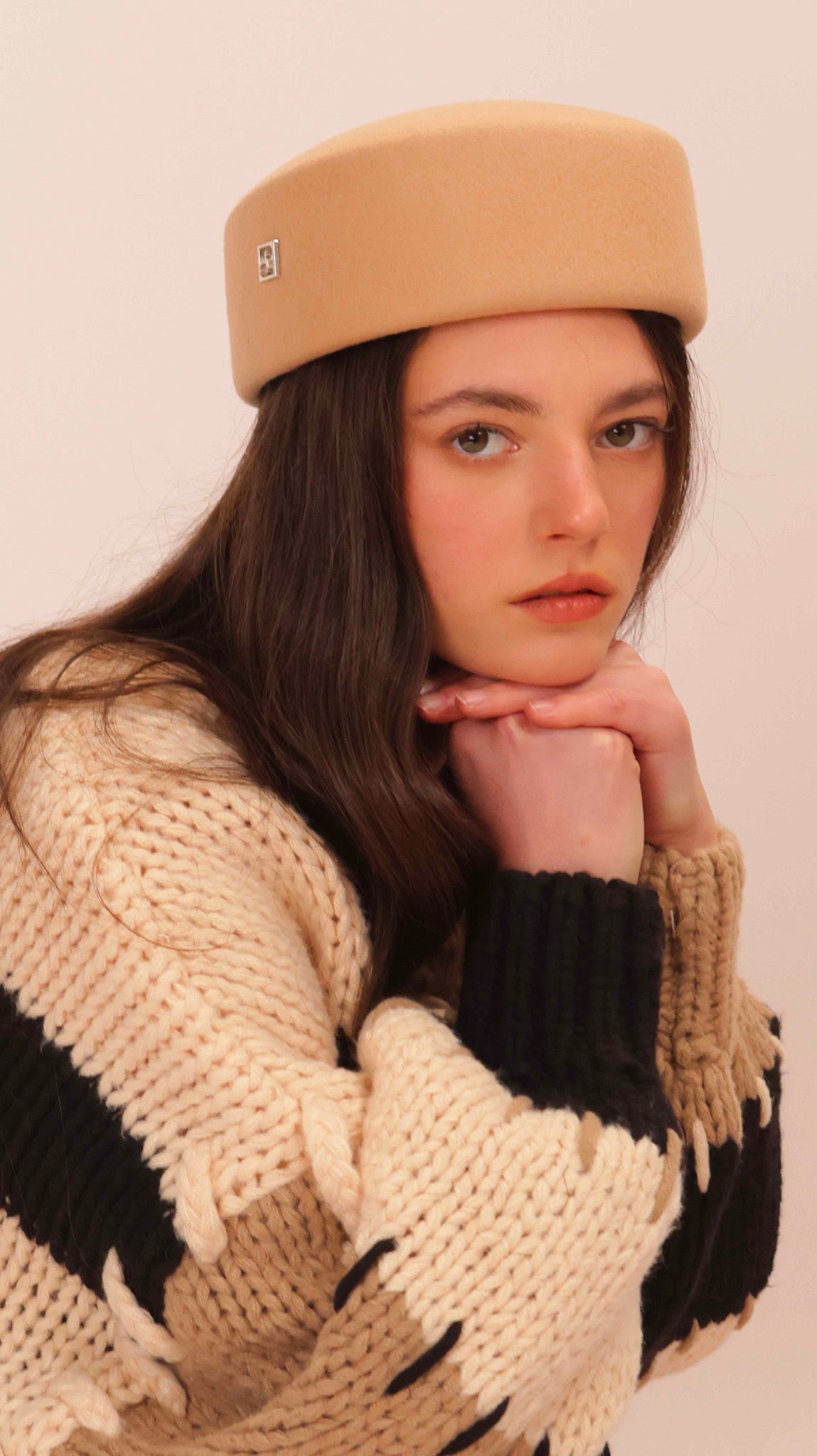 The ALBA hat embodies minimalist sophistication with a modern silhouette. Crafted from 100% wool, it features a smooth texture, a structured yet comfortable fit, and a clean, refined finish. Its rounded shape and understated design make it a versatile accessory, perfect for both everyday wear and more polished looks.