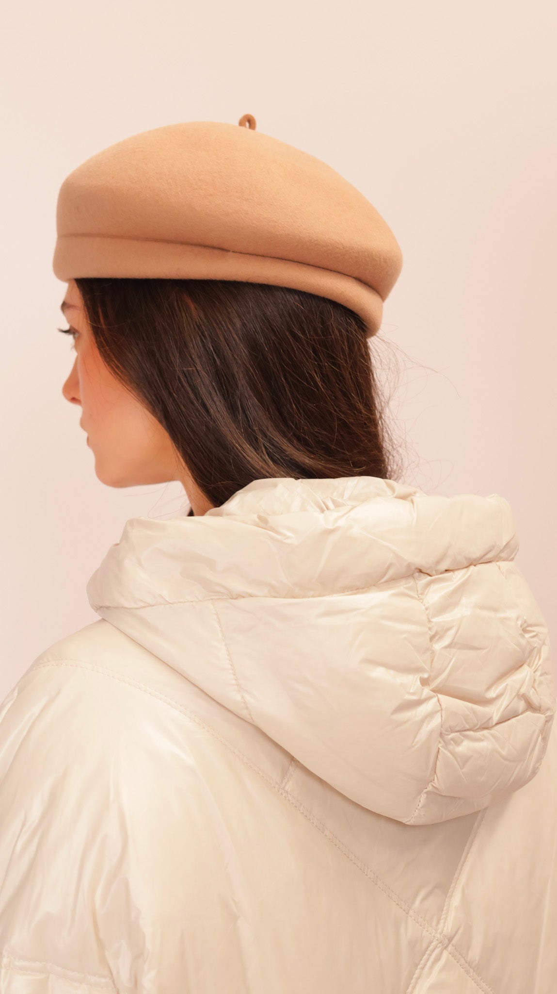 The NINO hat features a soft, contemporary silhouette inspired by minimalist design. Crafted from 100% wool, it offers a smooth texture, a comfortable fit, and a structured yet lightweight feel. Its clean lines and subtle detailing make it an effortless accessory, perfect for both casual looks and refined outfits.