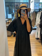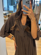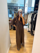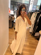 Légère, ample et naturellement élégante, cette robe longue en 100 % coton est pensée pour vous accompagner tout l’été. Sa coupe fluide crée une silhouette vaporeuse et décontractée, tandis que le dos partiellement ajouré, délicatement noué, dévoile juste ce qu’il faut de peau pour un effet féminin et raffiné.