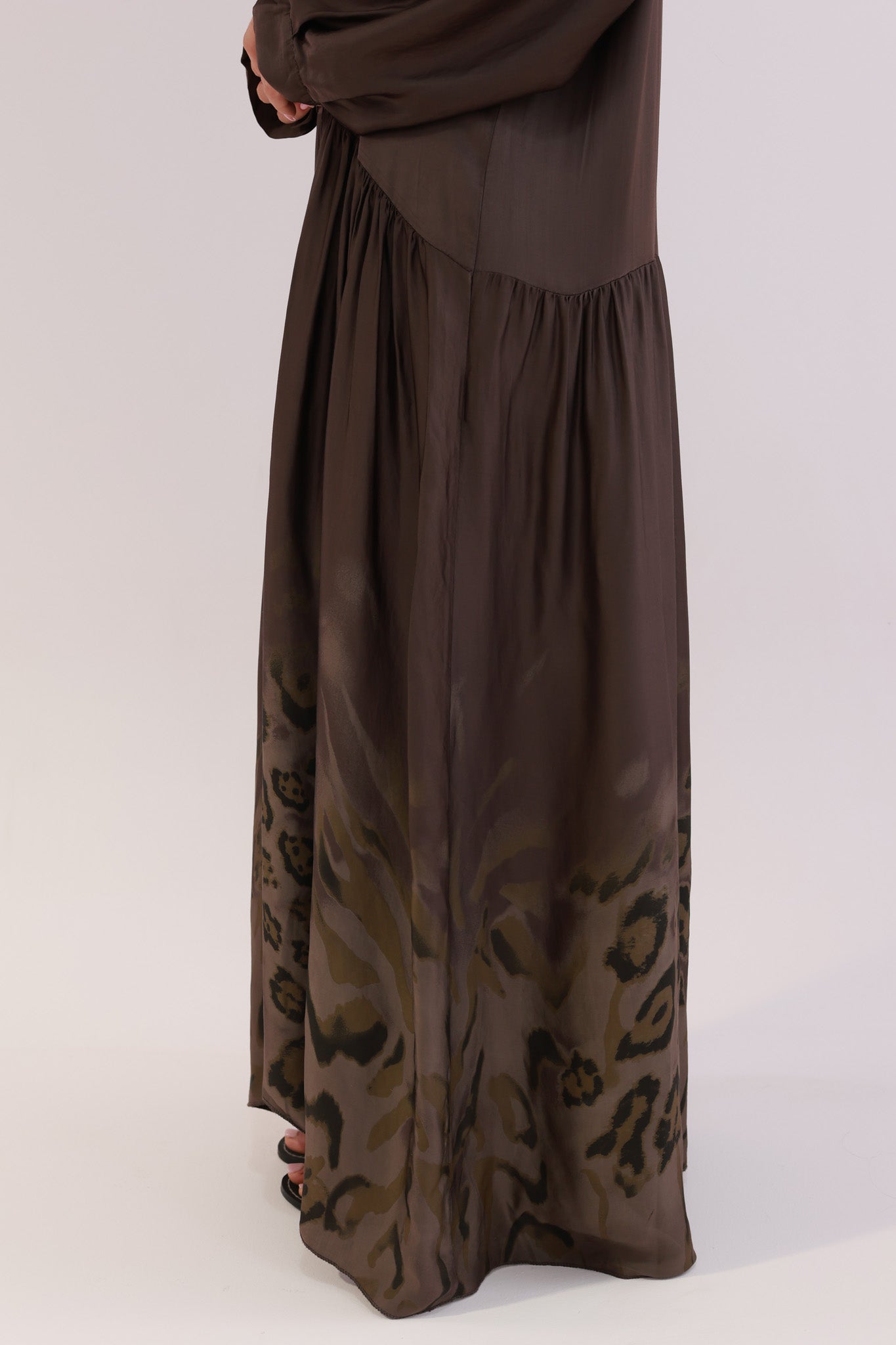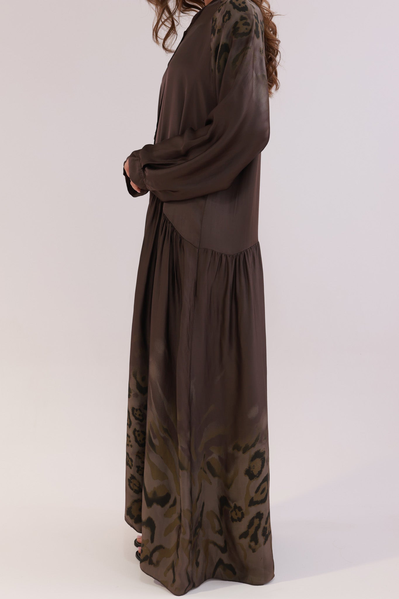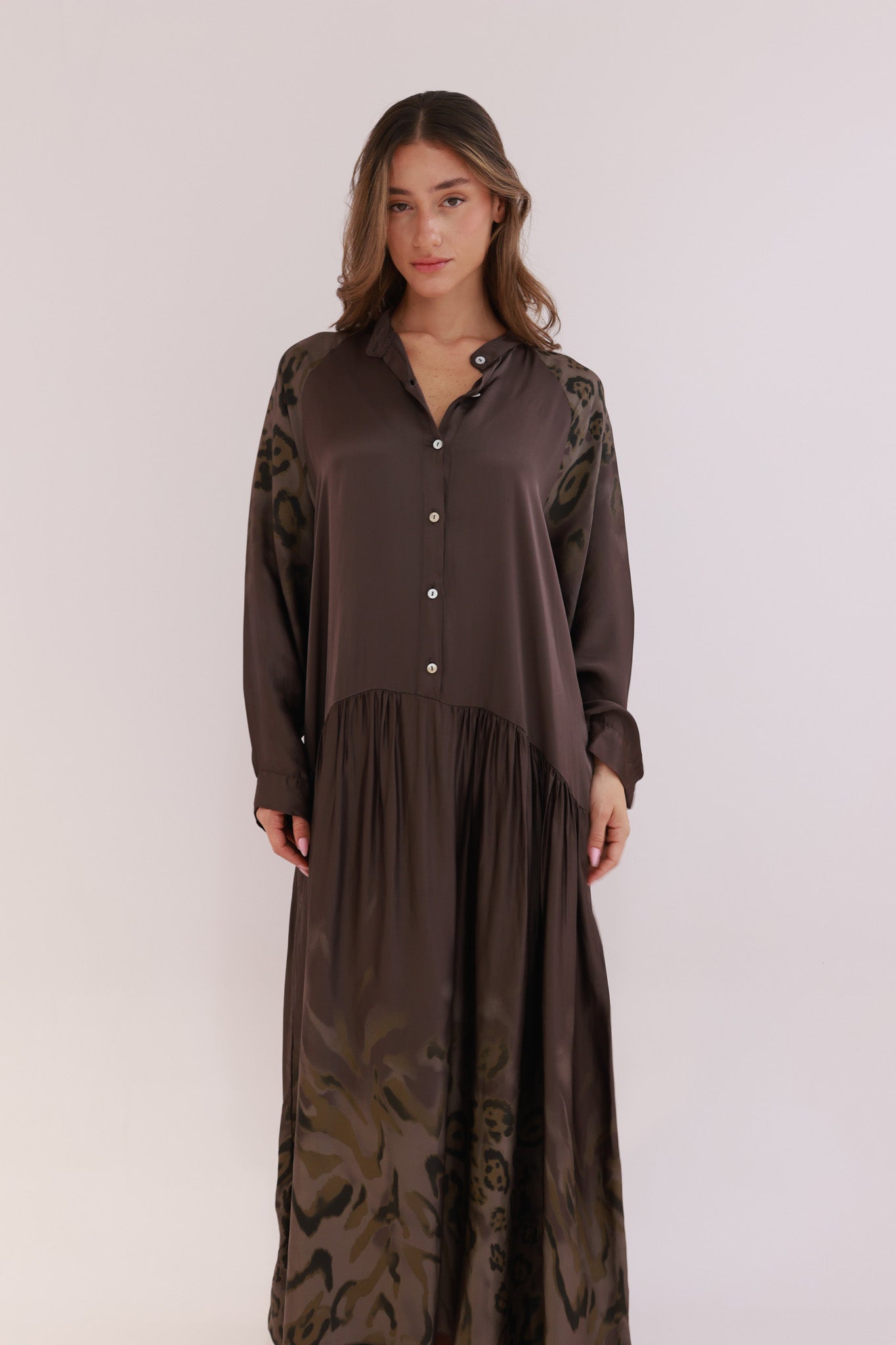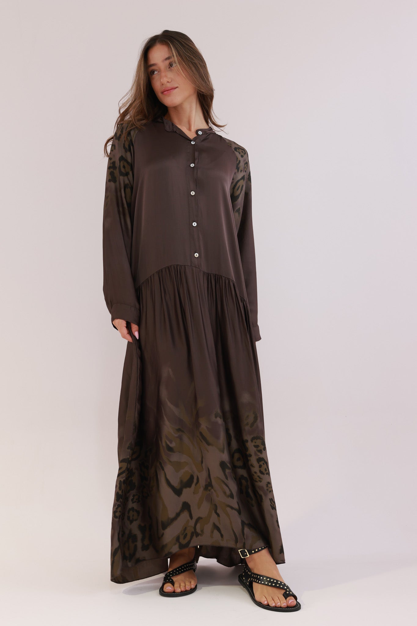 LEOPARD PRINTED SATIN DRE  – Leopard printed satin dress, bold and silky.