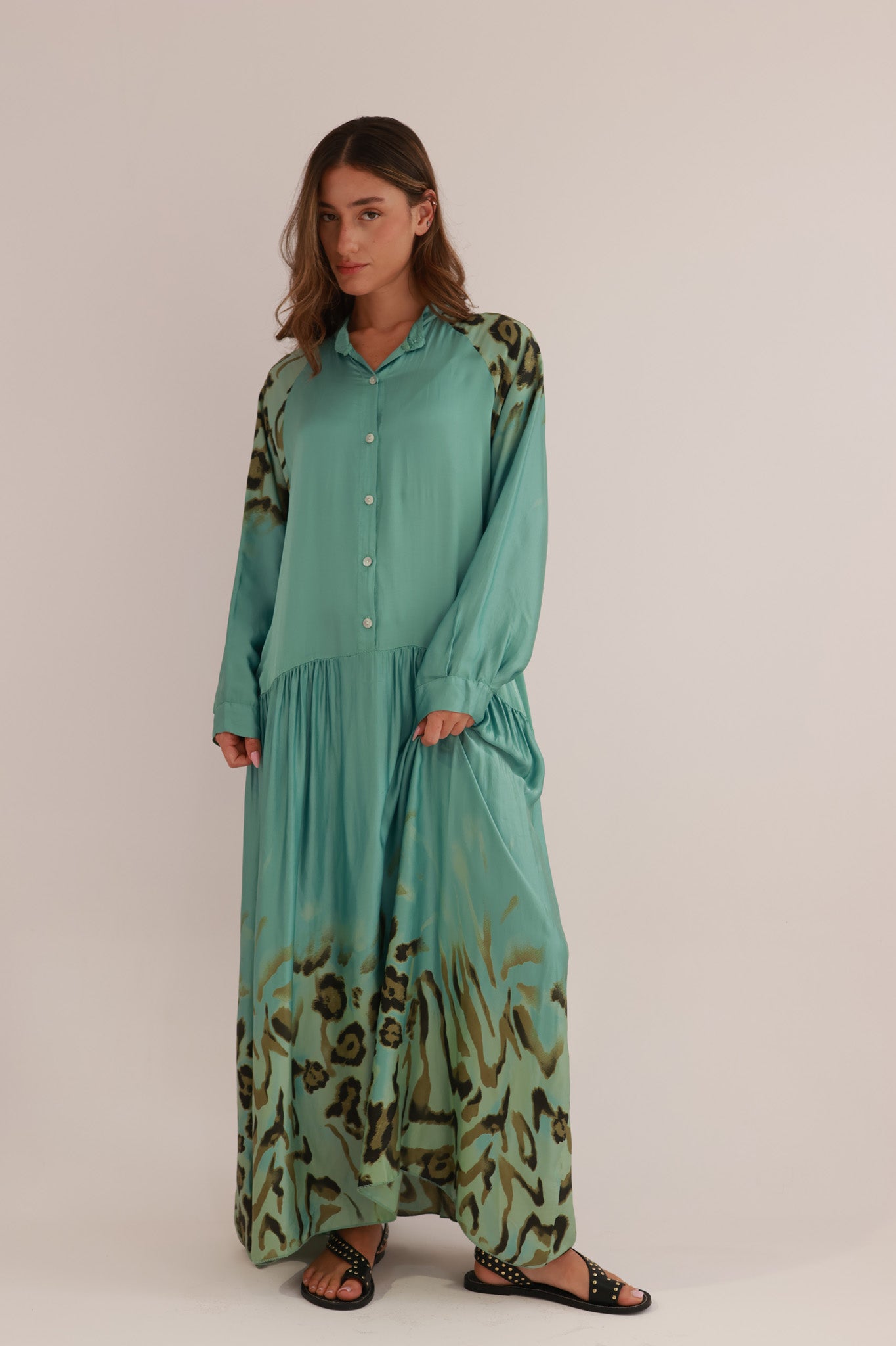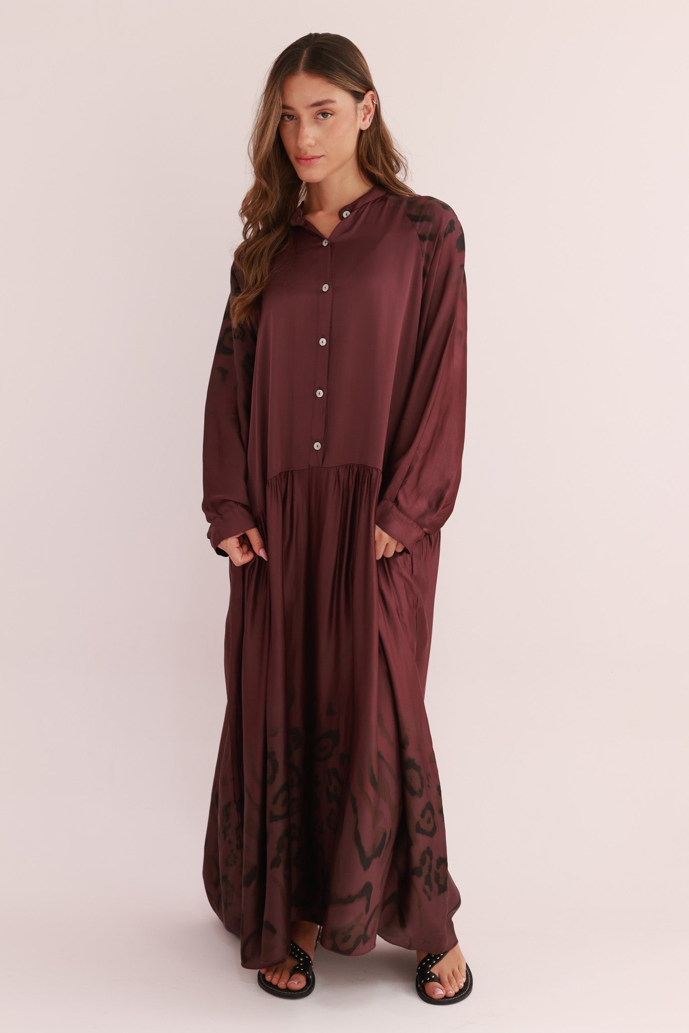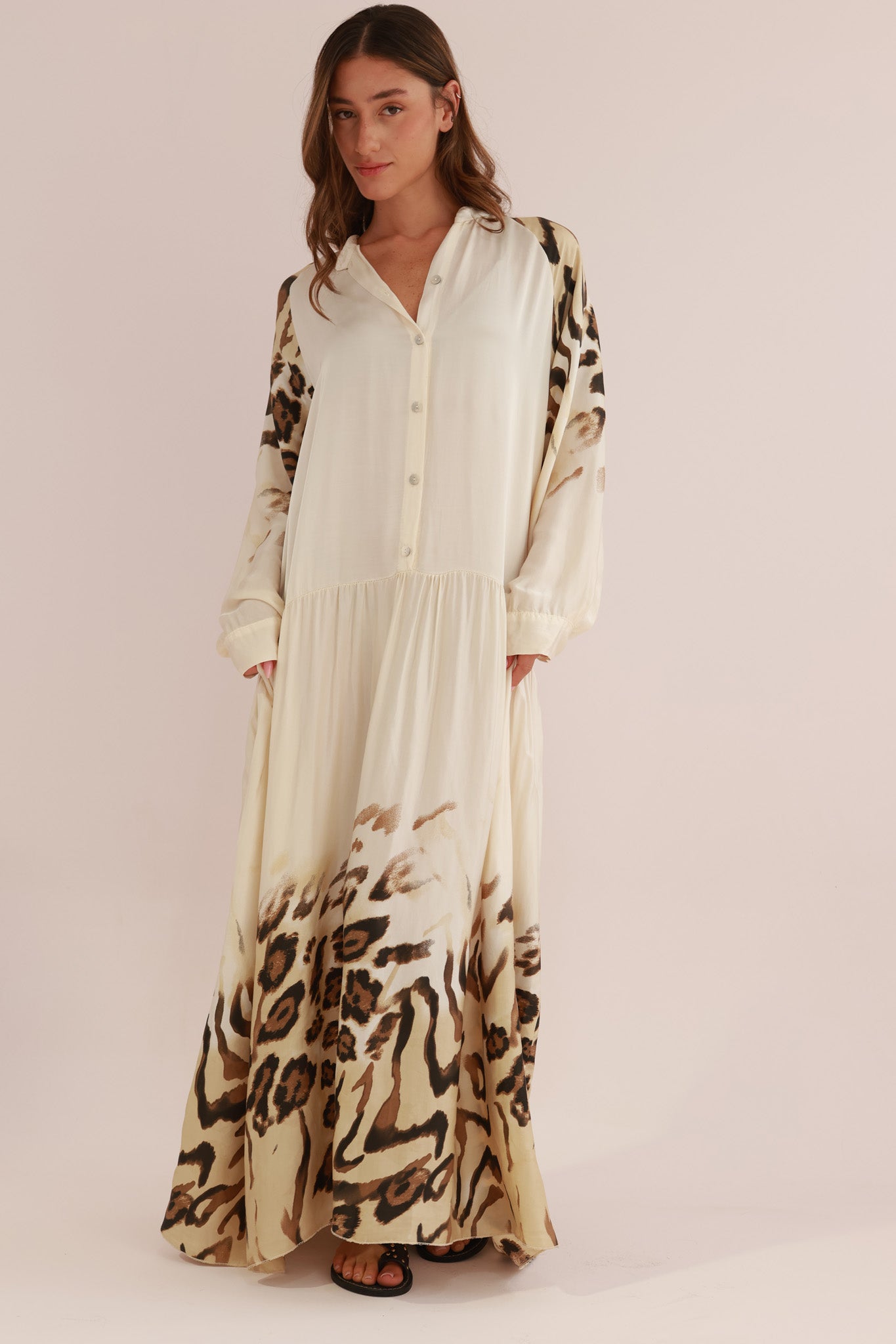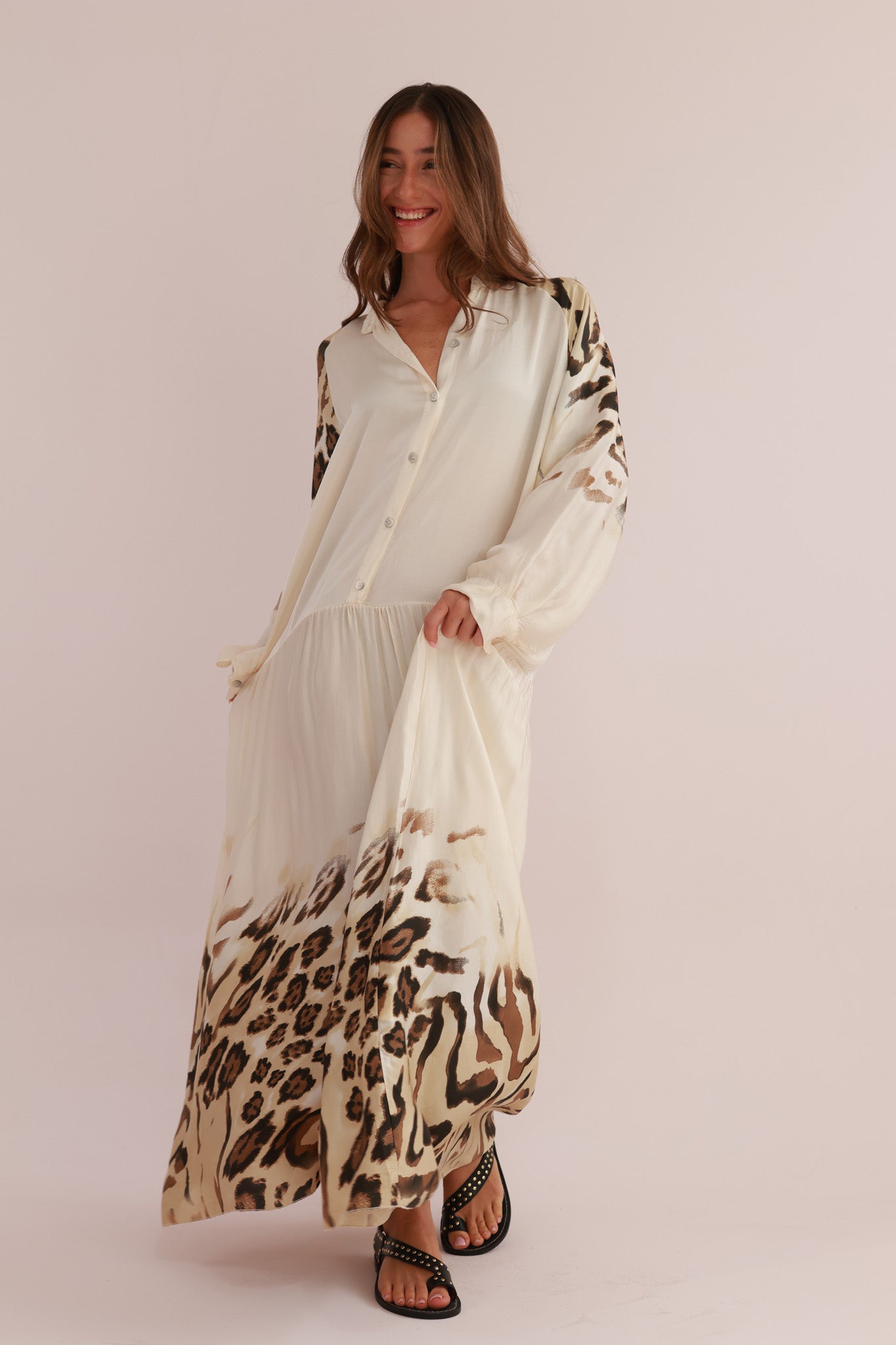 LEOPARD PRINTED SATIN DRE  – Leopard printed satin dress, bold and silky.