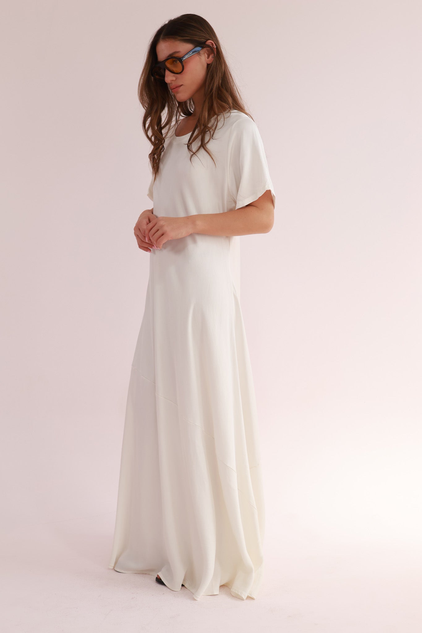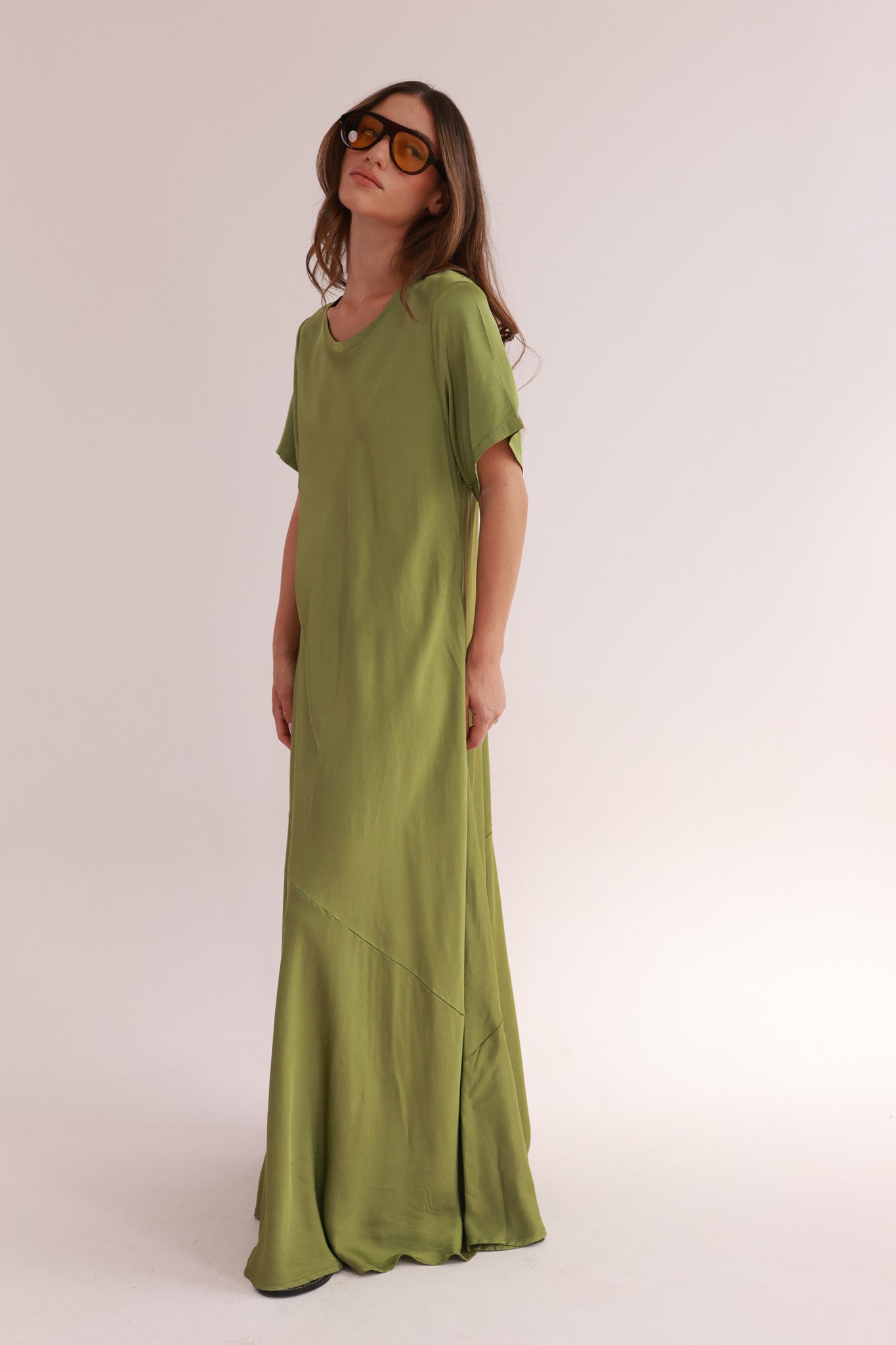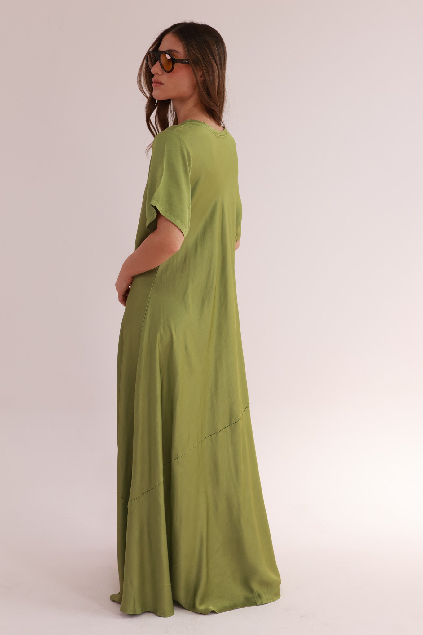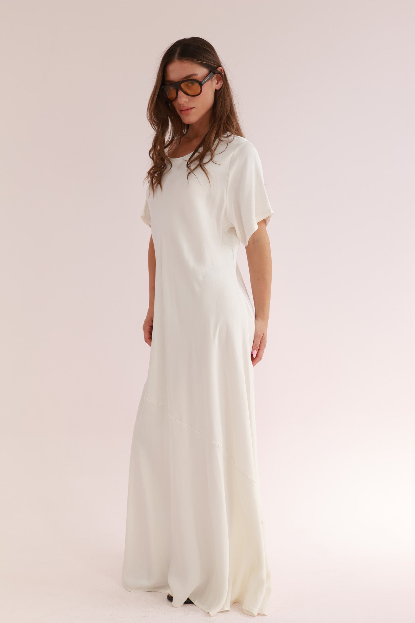 V SHORT SLEEVES SATIN DRE – soft, sleek, and refined.