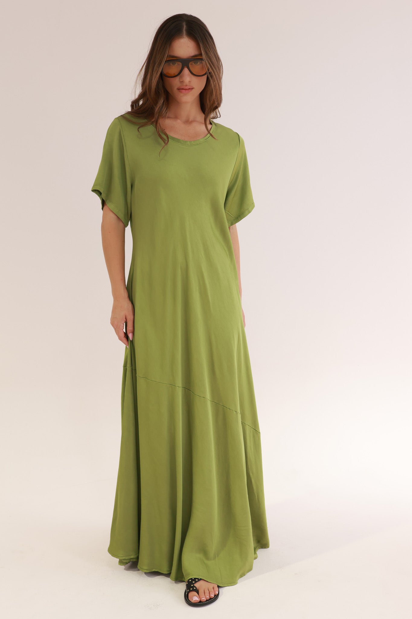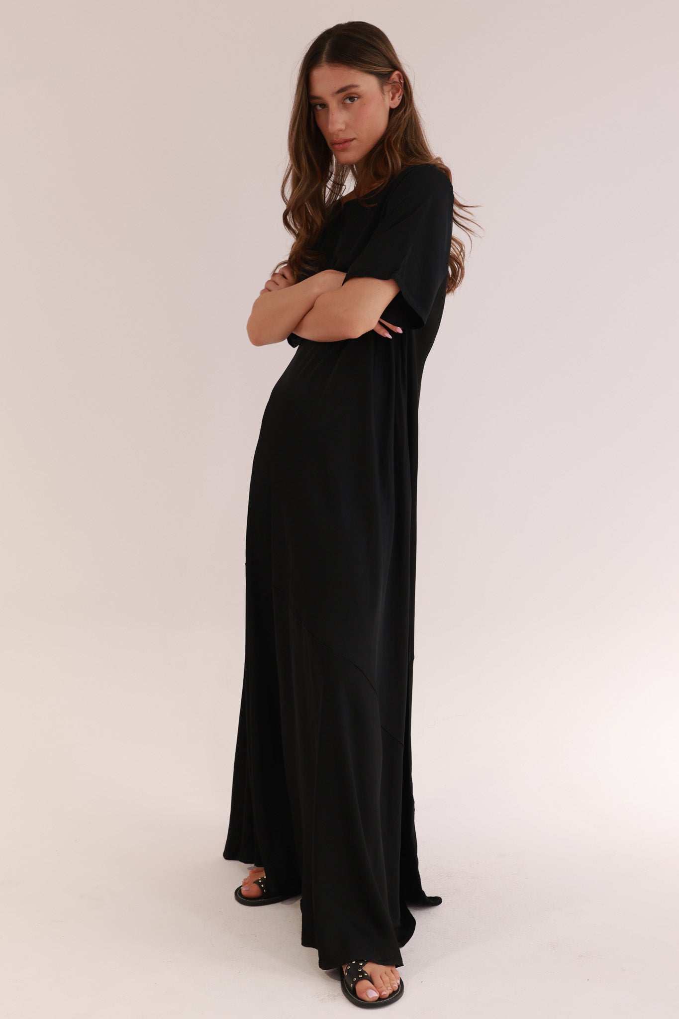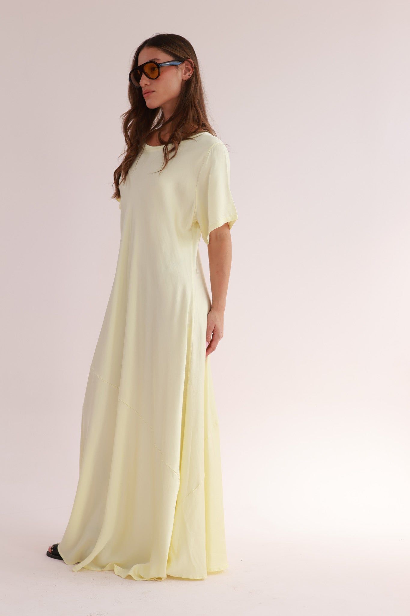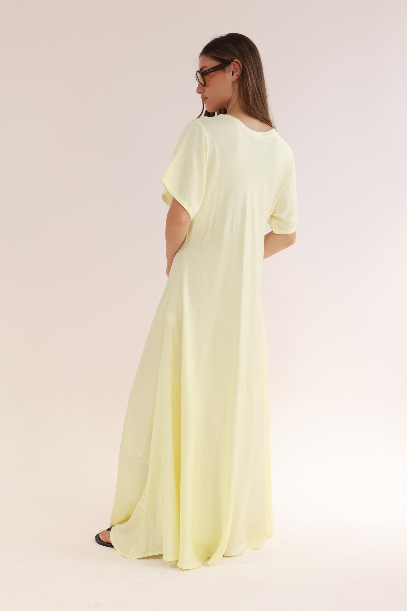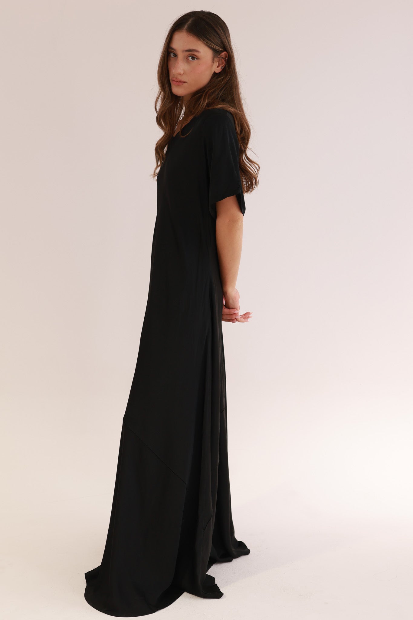V SHORT SLEEVES SATIN DRE – soft, sleek, and refined.