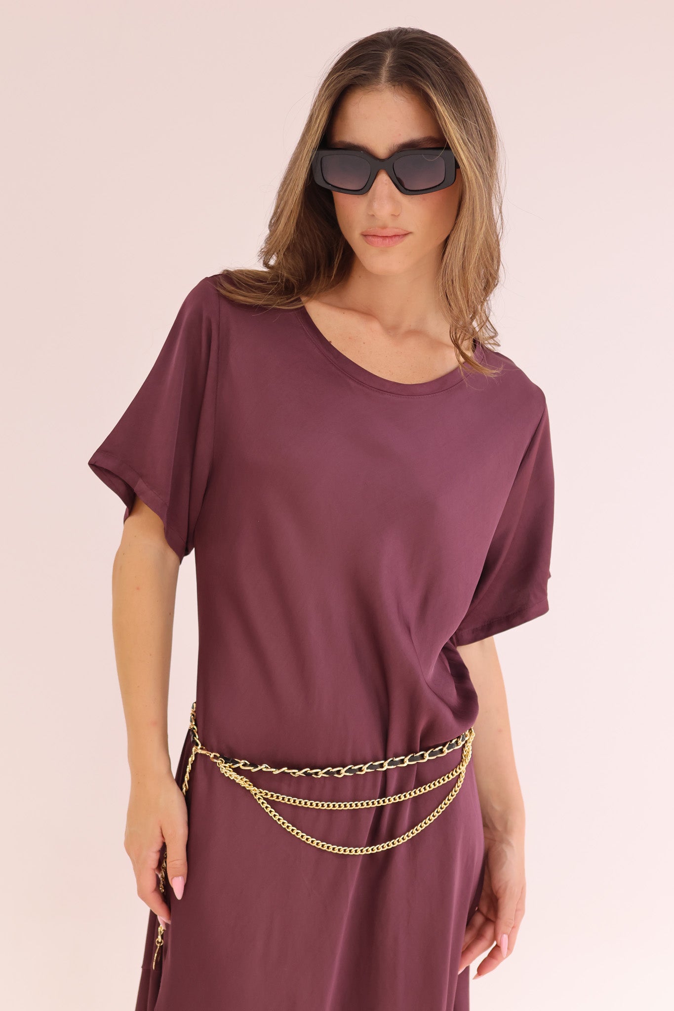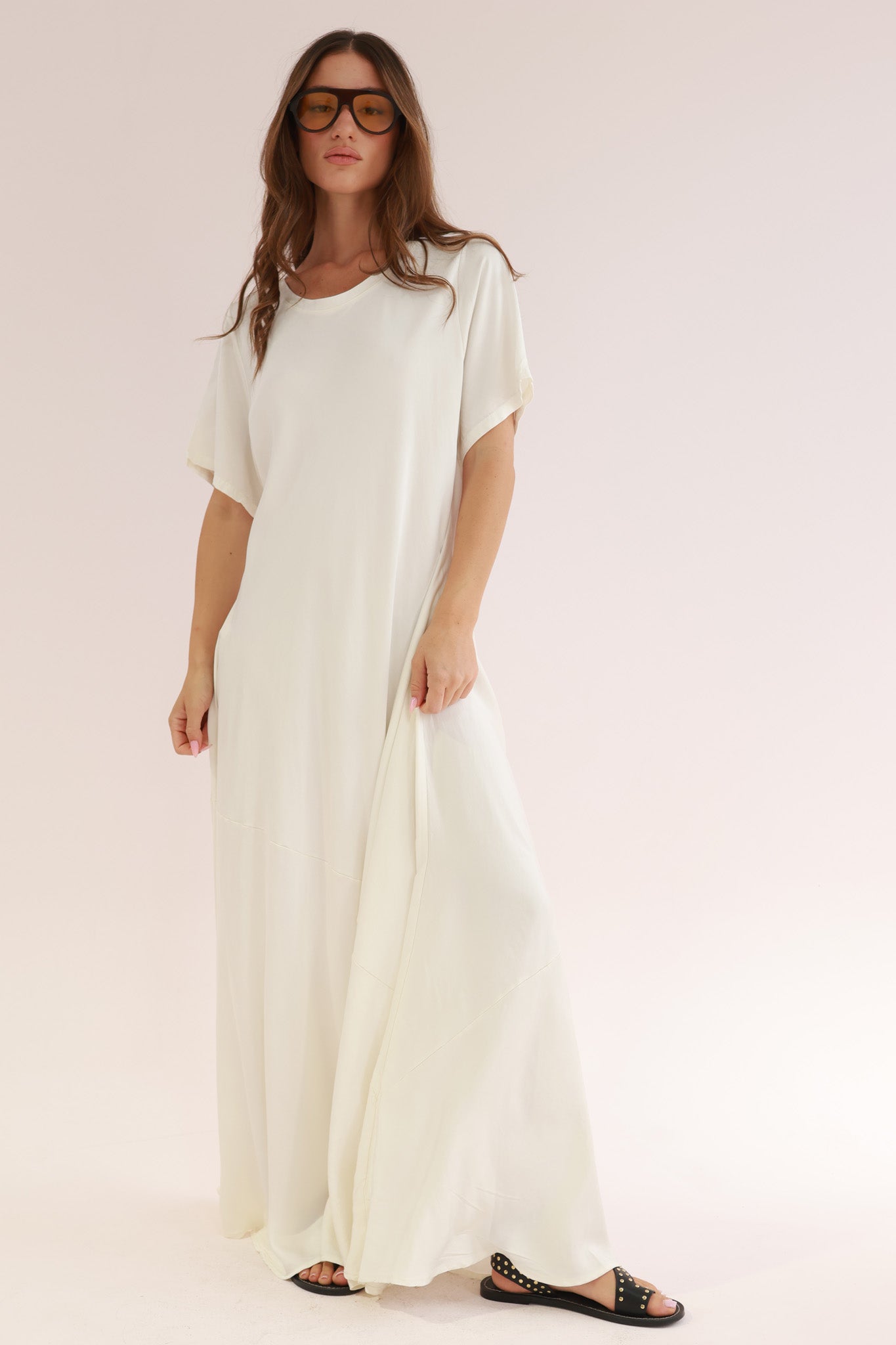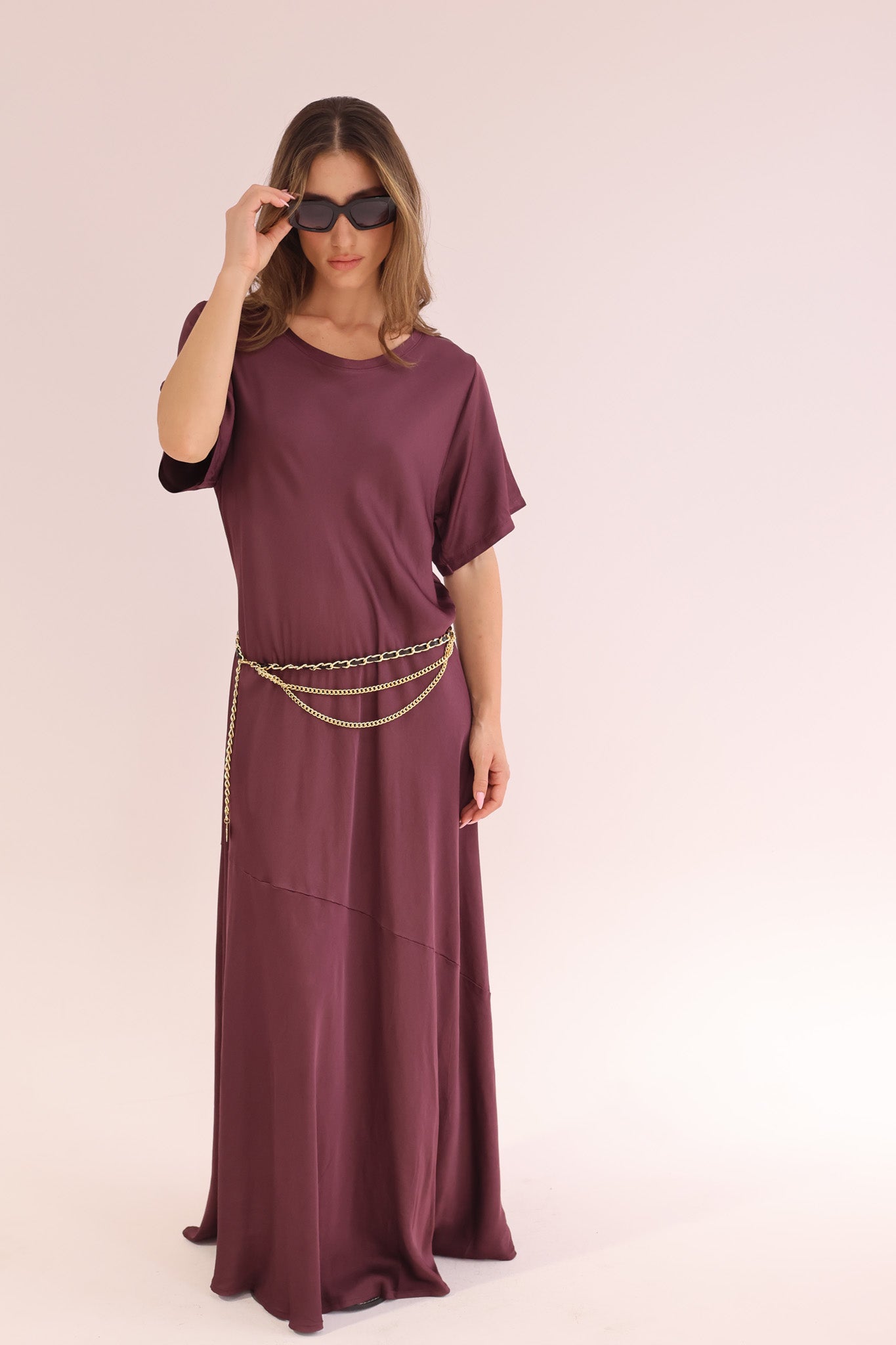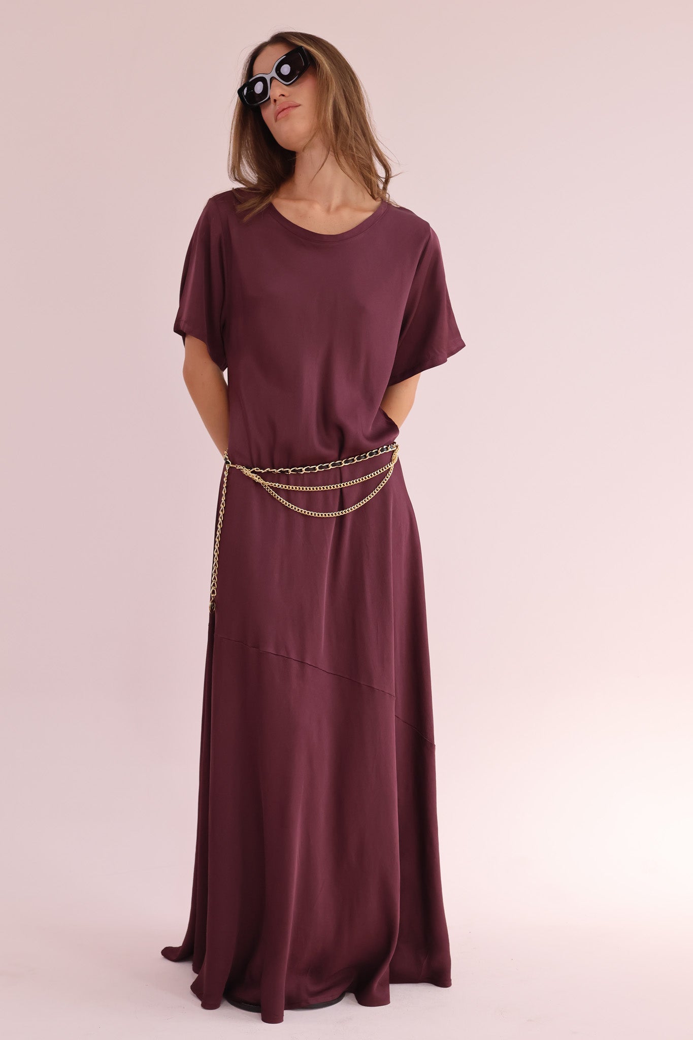 V SHORT SLEEVES SATIN DRE – soft, sleek, and refined.