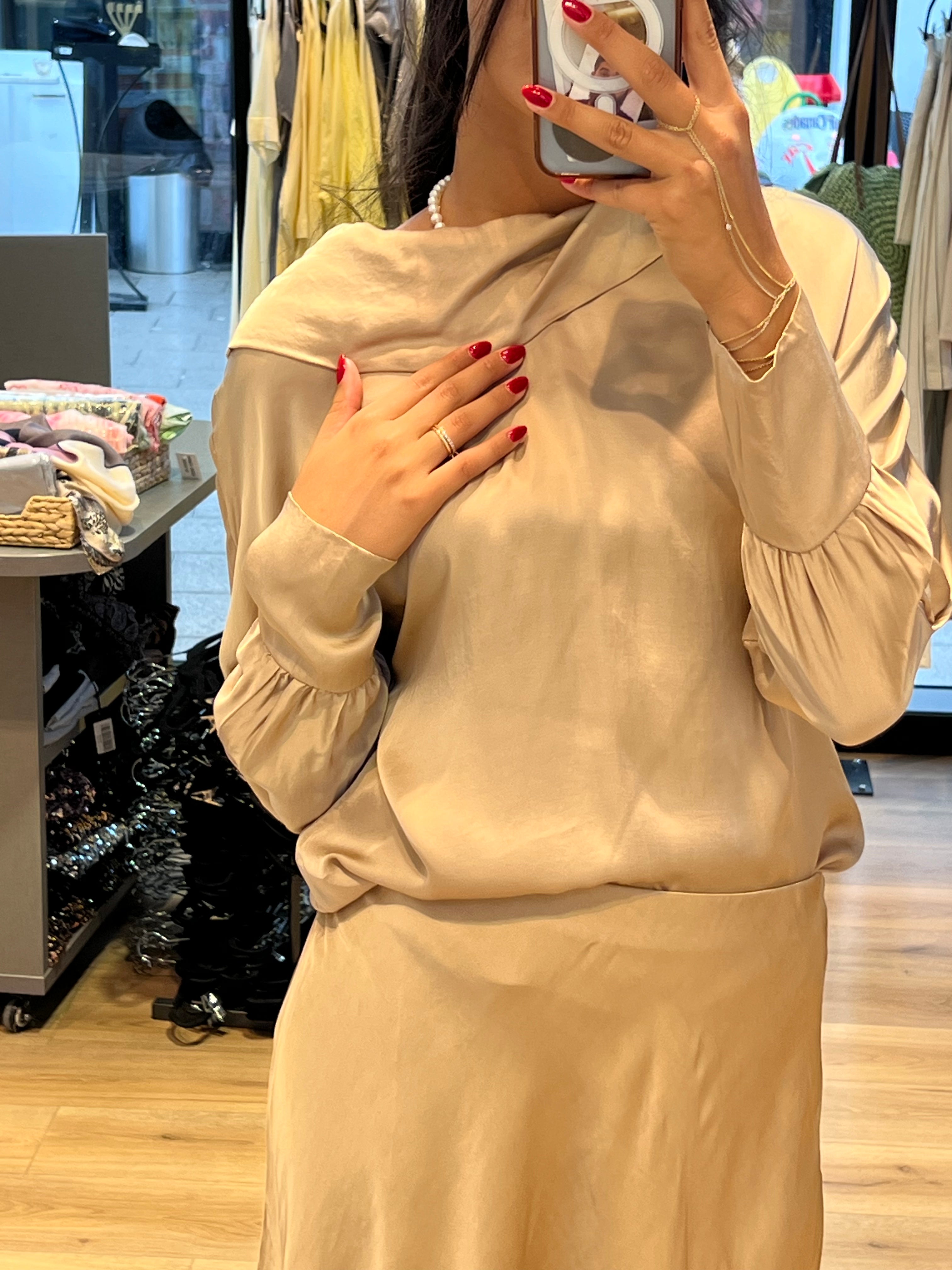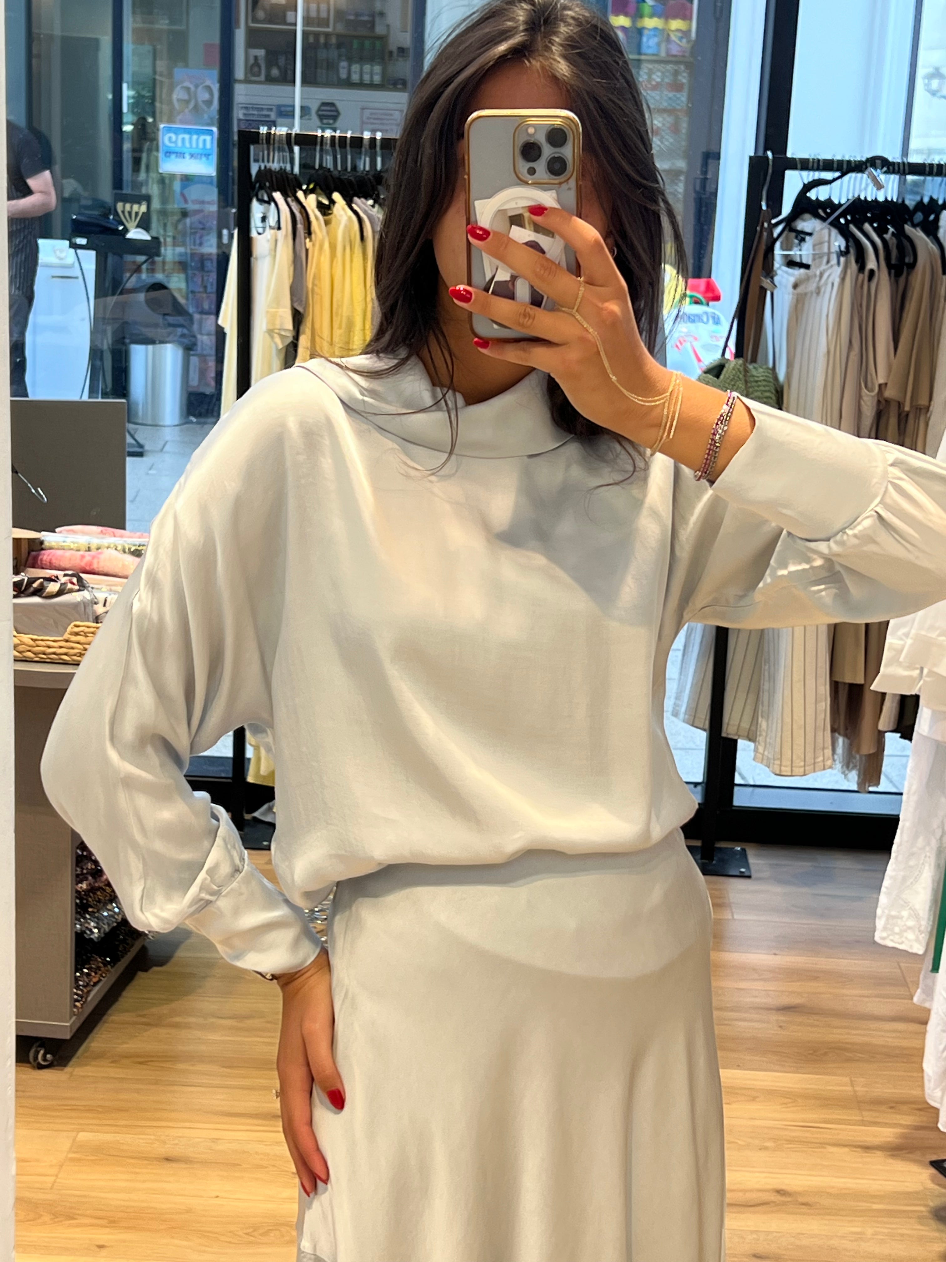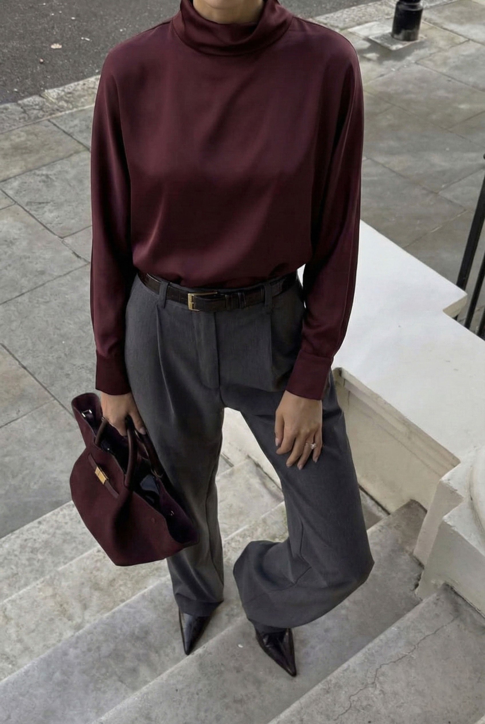 SANDRA TOP – Featuring a draped collar that instantly elevates any outfit