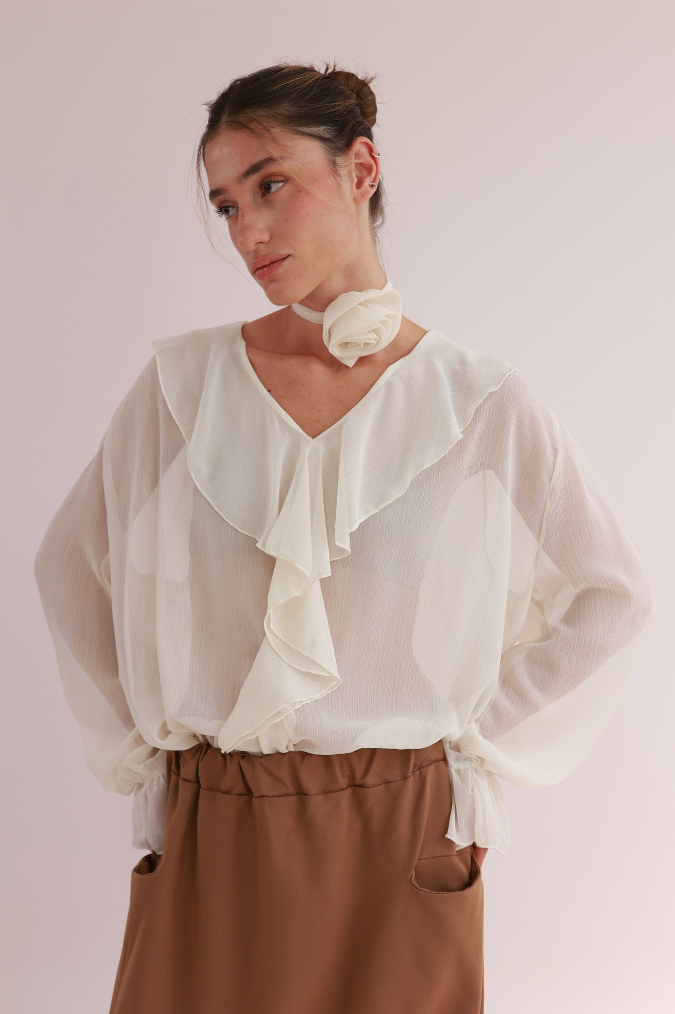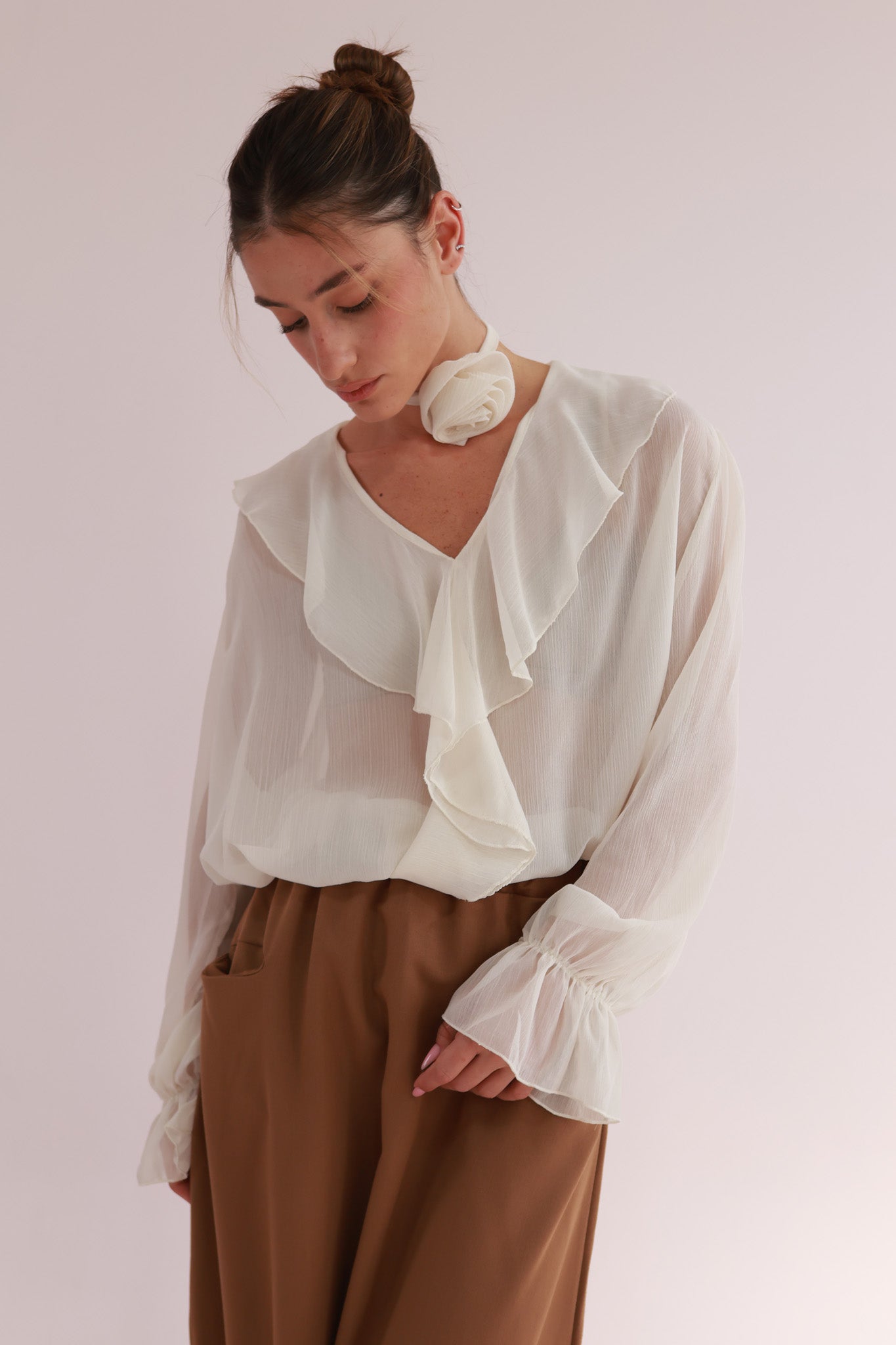 BLOUSE WITH ROSE  – A touch of romance, a bloom of style.