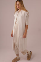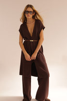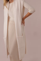 NO SLEEVES LONG JACKET –where structure meets elegance.