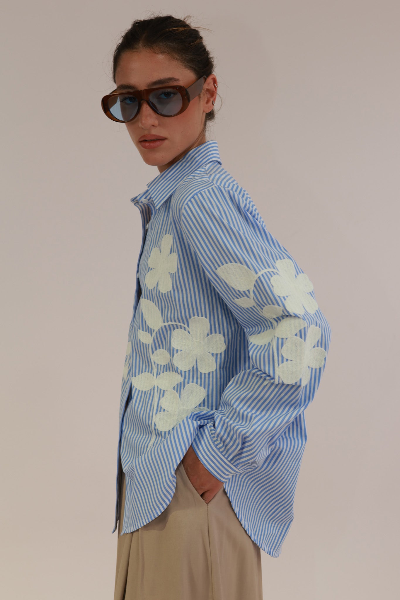 STRIPED EMBROIDED SHIRT  – Striped shirt with delicate embroidery details.