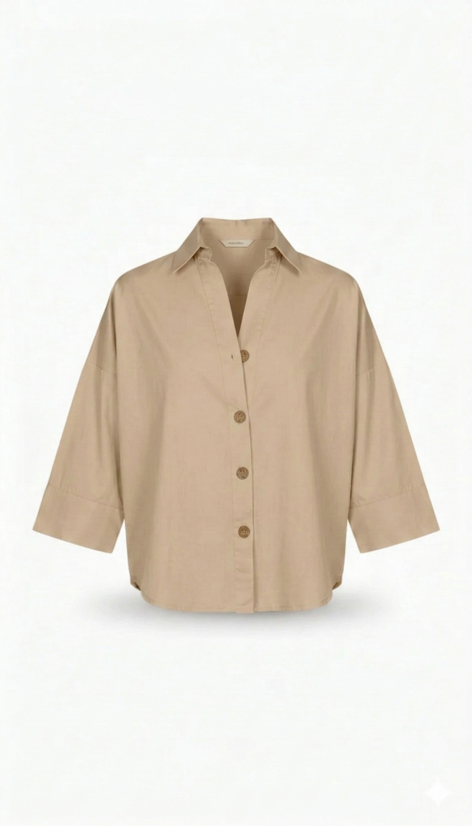3/4 SLEEVES BUTTON SHIRT – Timeless ease, natural elegance.