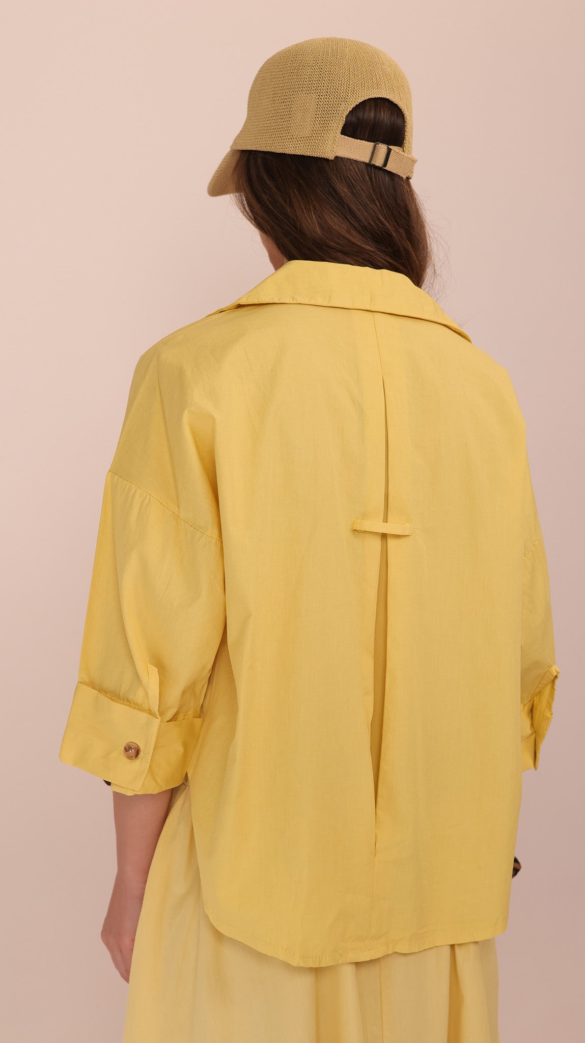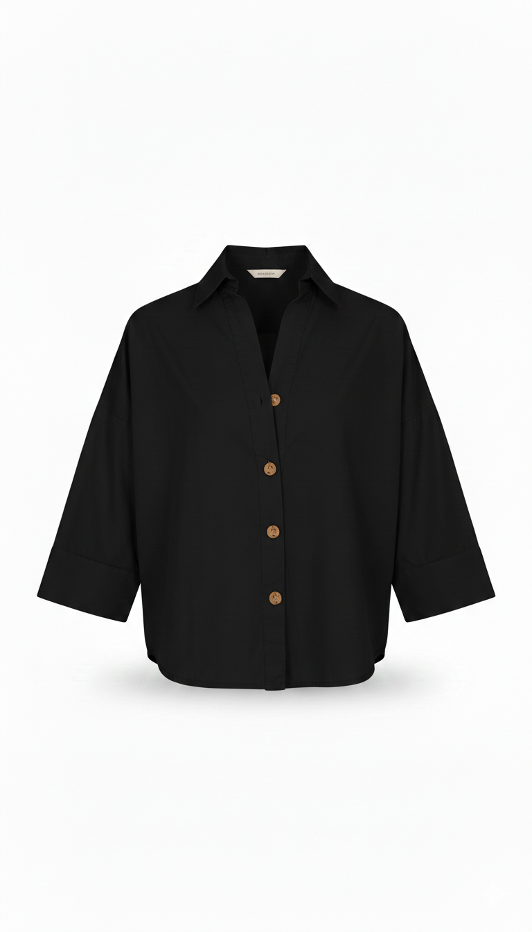 Designed with elegant 3/4 sleeves, it creates the perfect balance between structure and relaxed sophistication. The classic button-down silhouette makes it a versatile essential — easy to dress up or down, from day to evening.