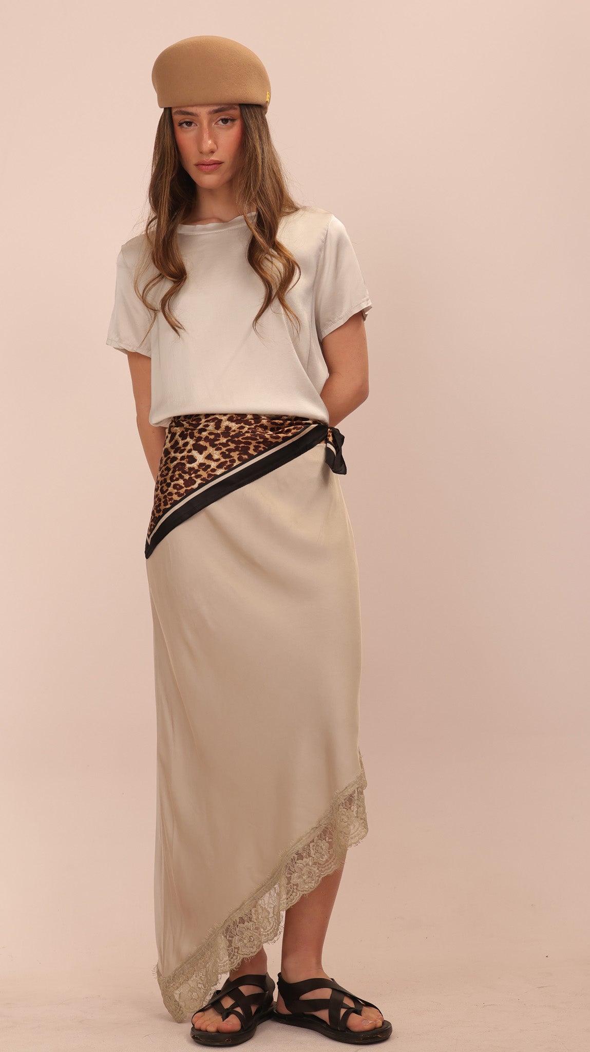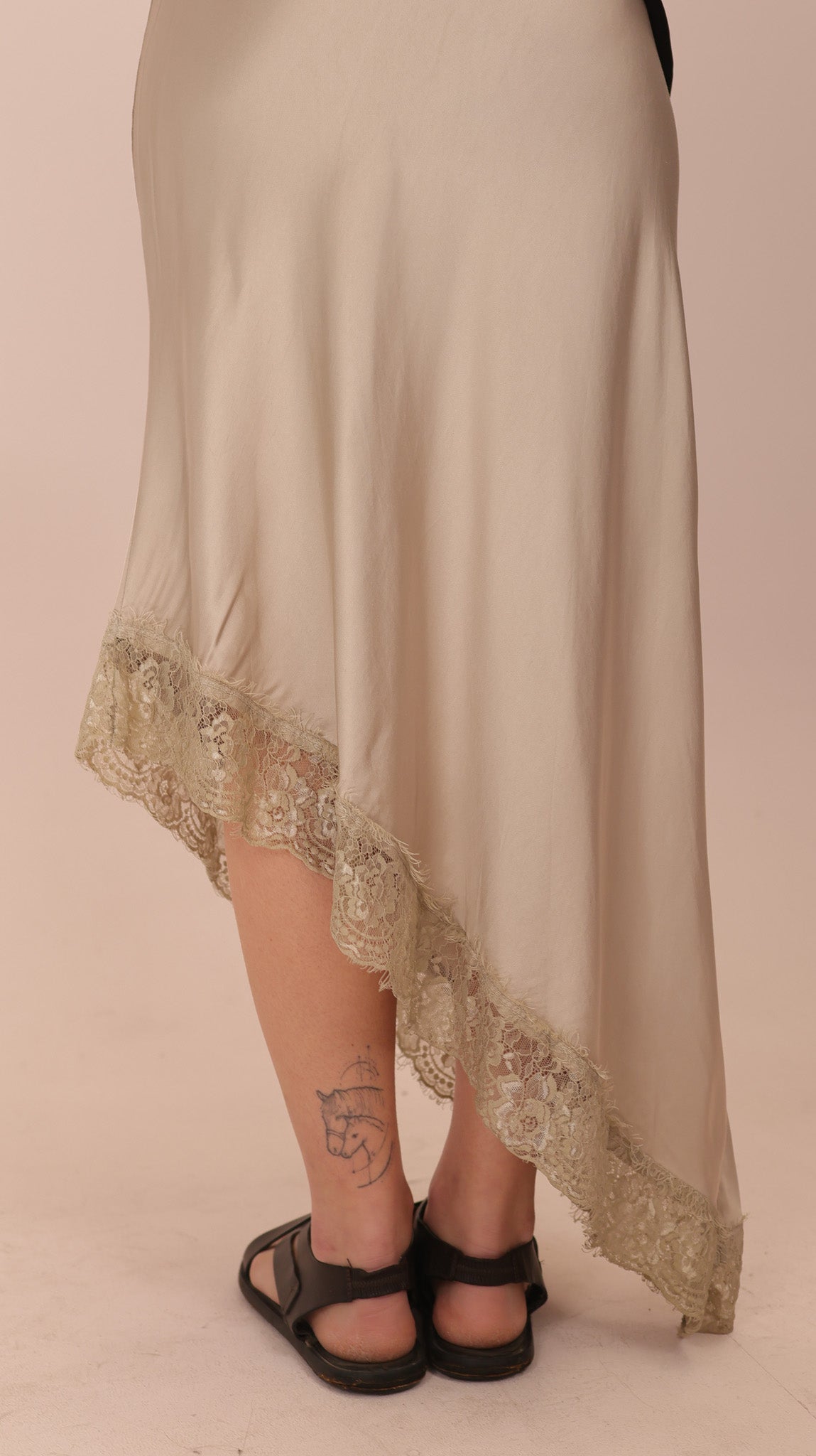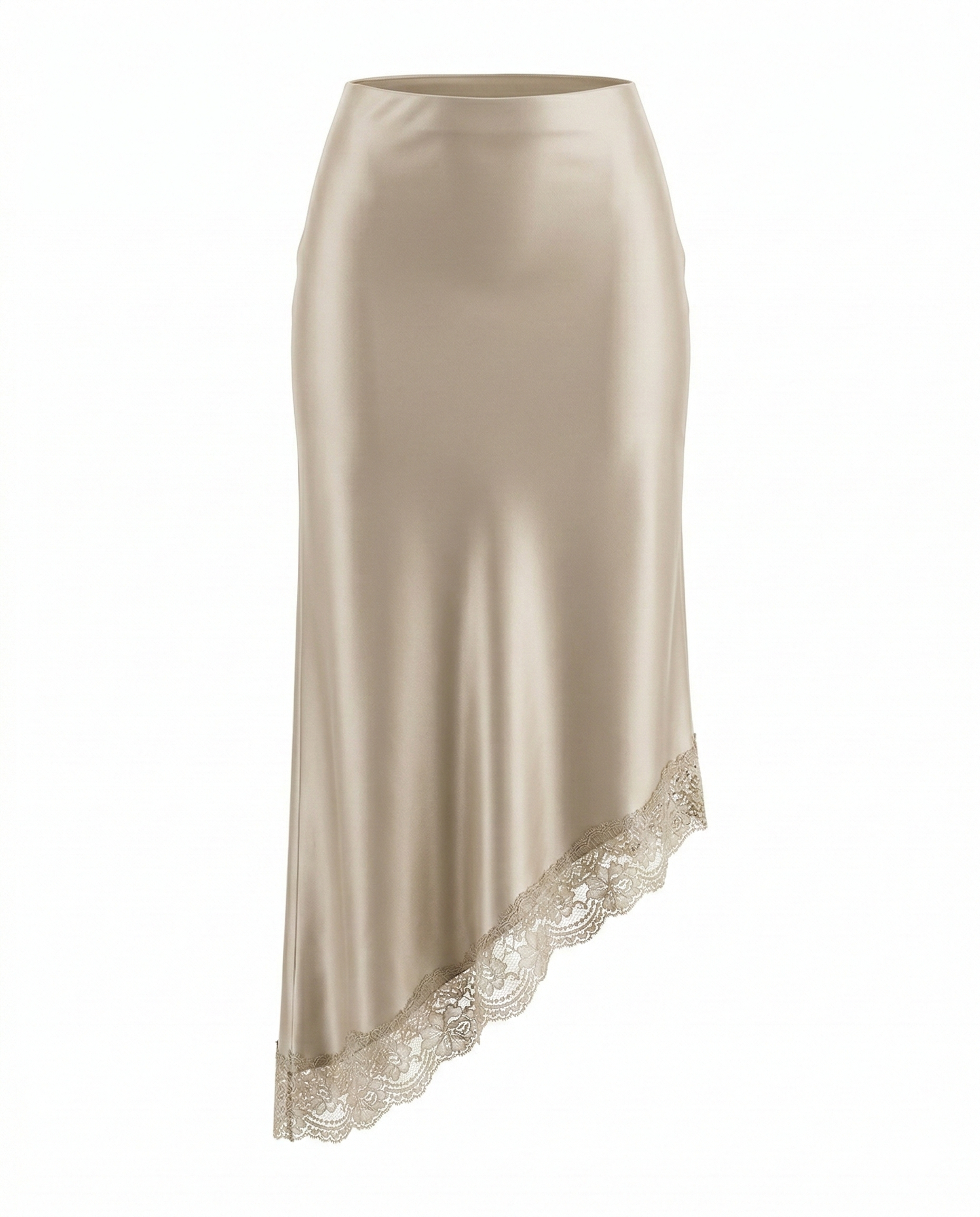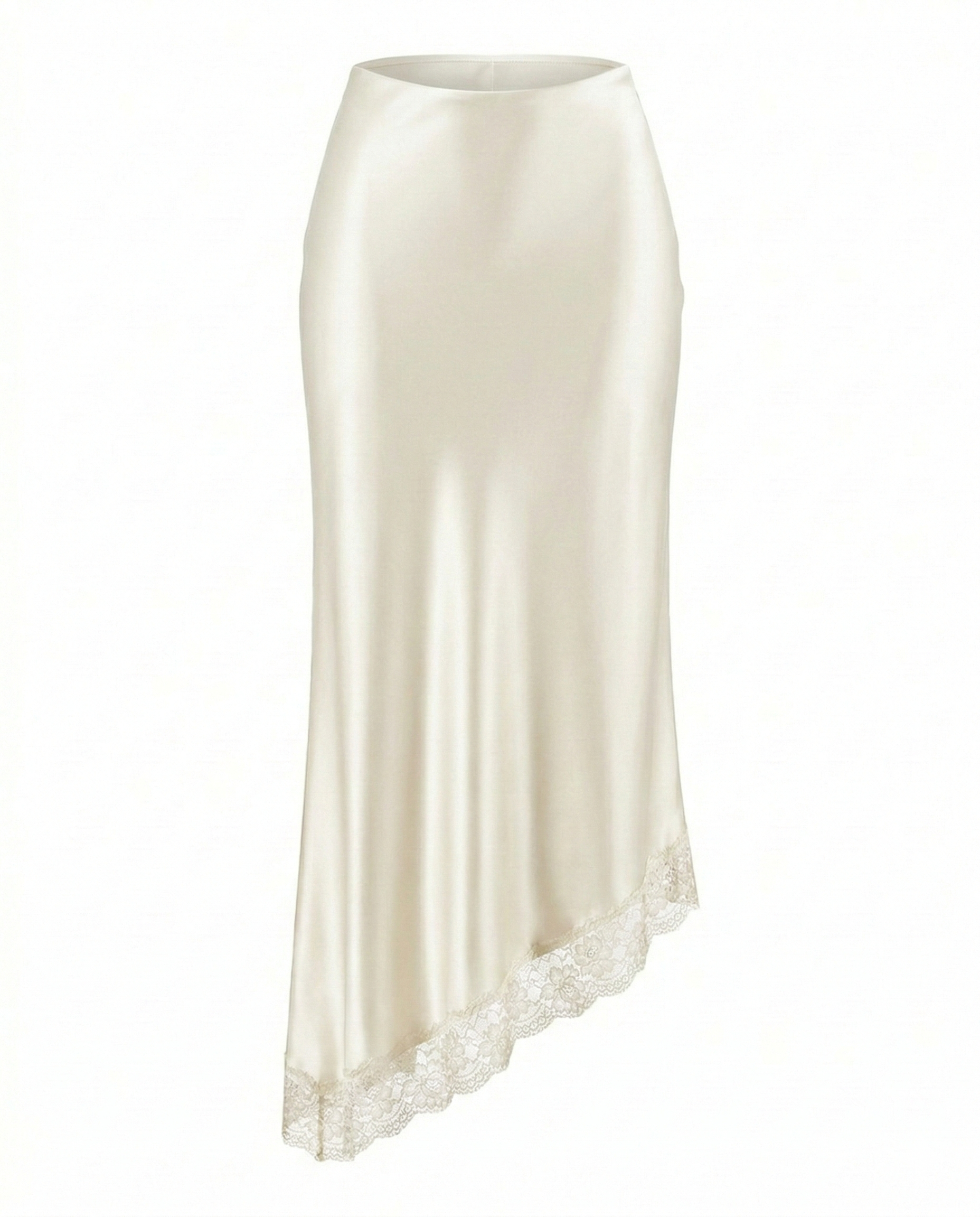 ASYMETRICAL SATIN SKIRT – Delicate edge, graceful movement.