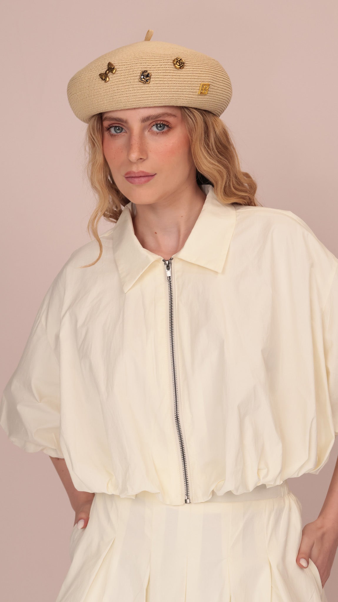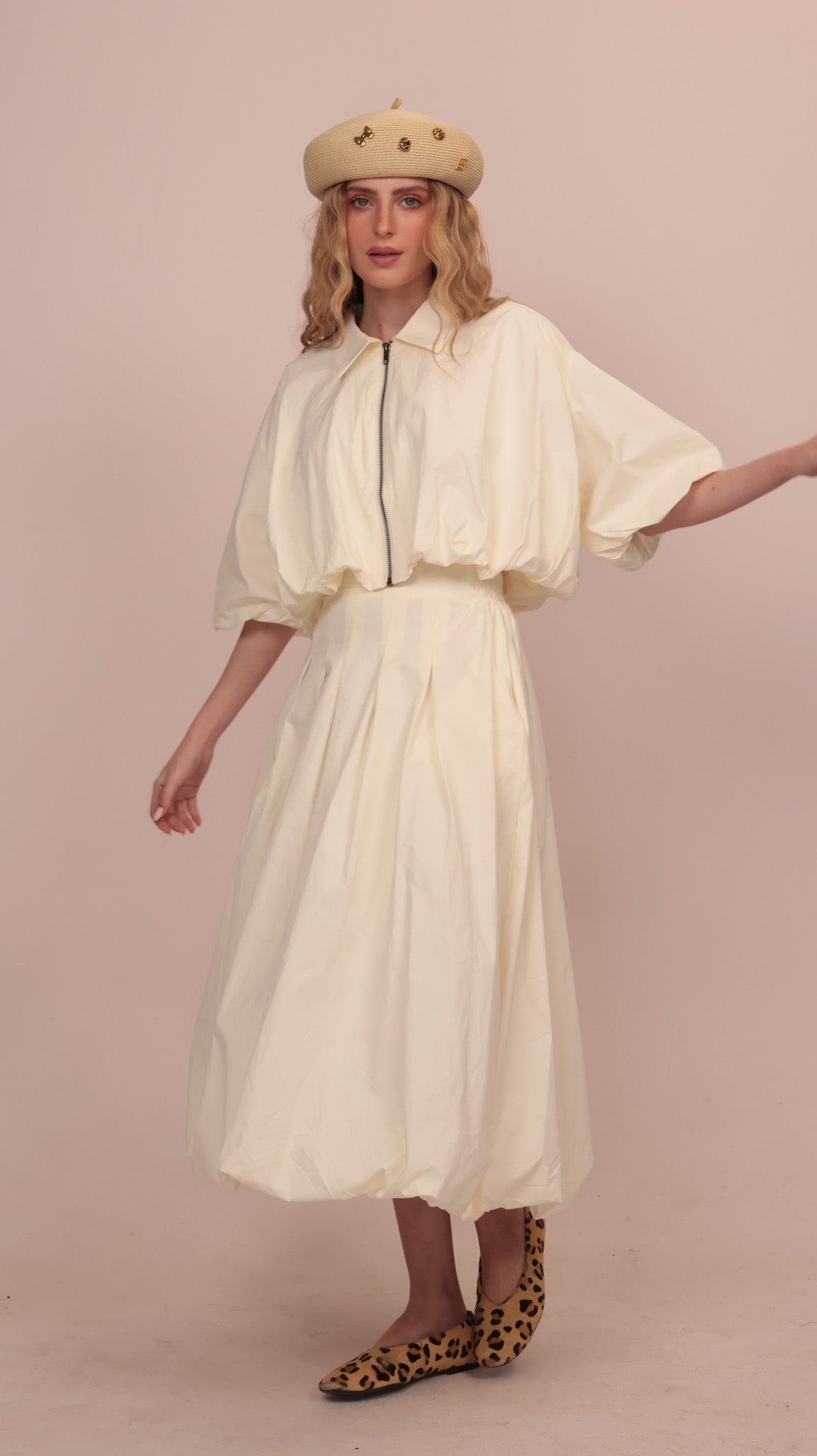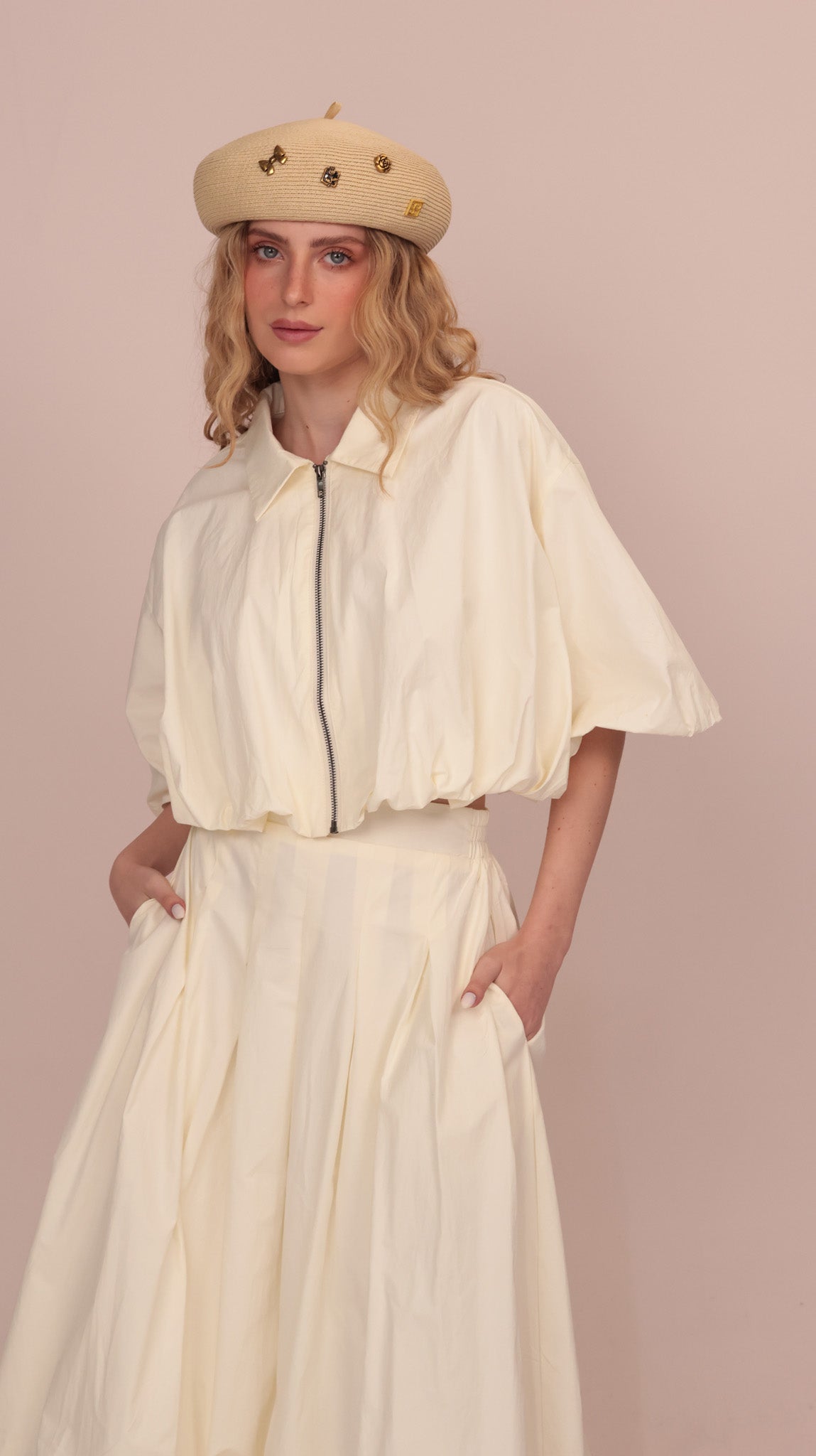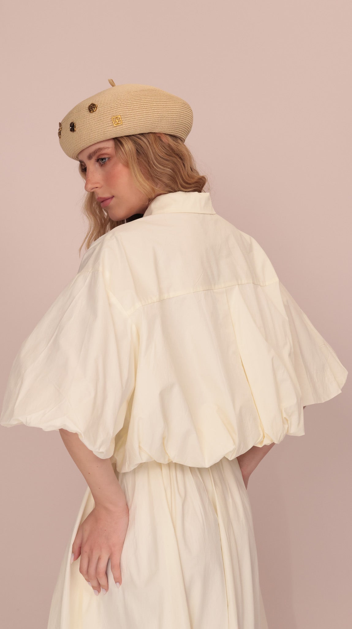 Crafted from high-quality fabric, this jacket combines comfort with a distinctive silhouette. Its balloon shape creates a soft, voluminous structure that adds a modern and sophisticated touch while remaining easy to wear.