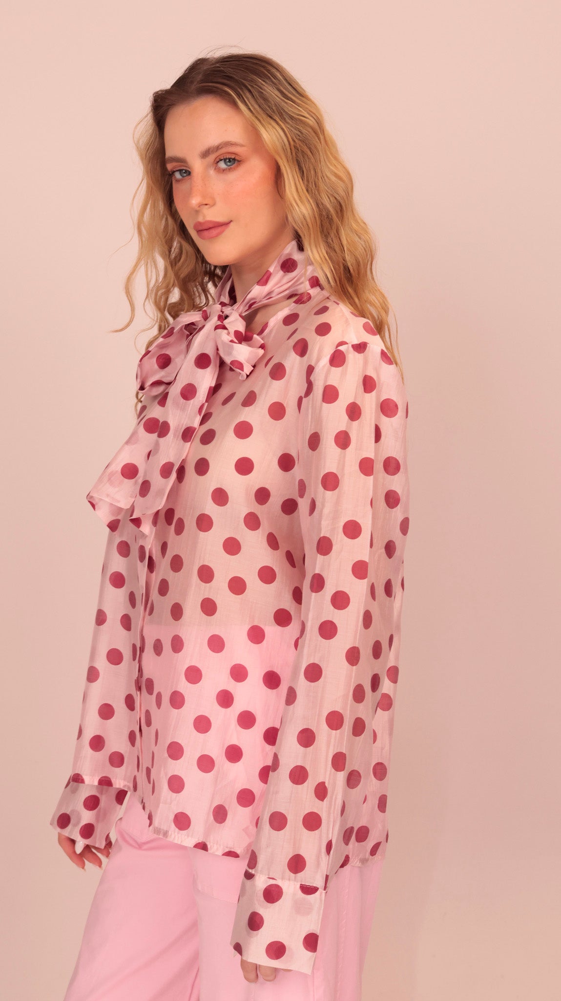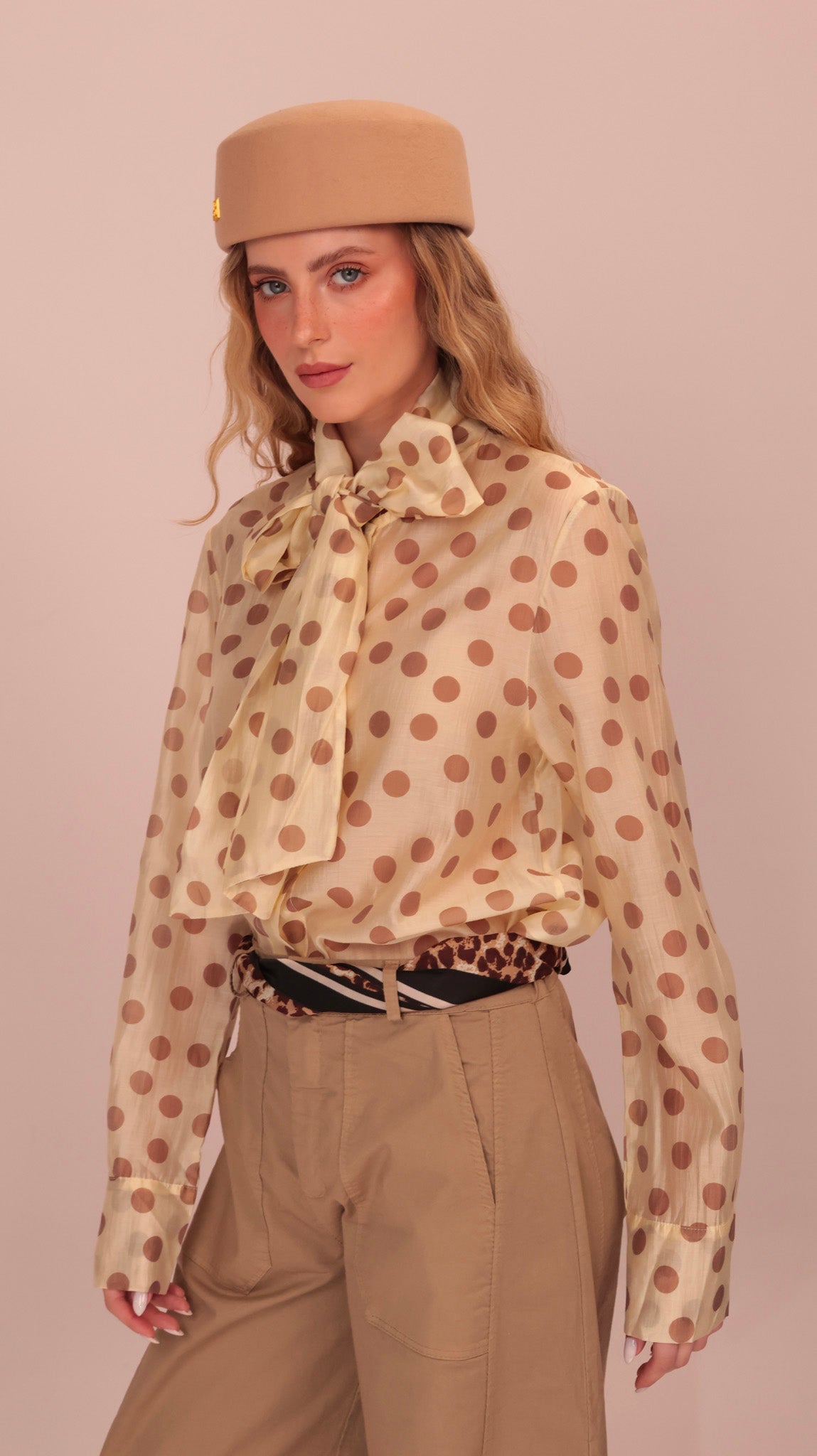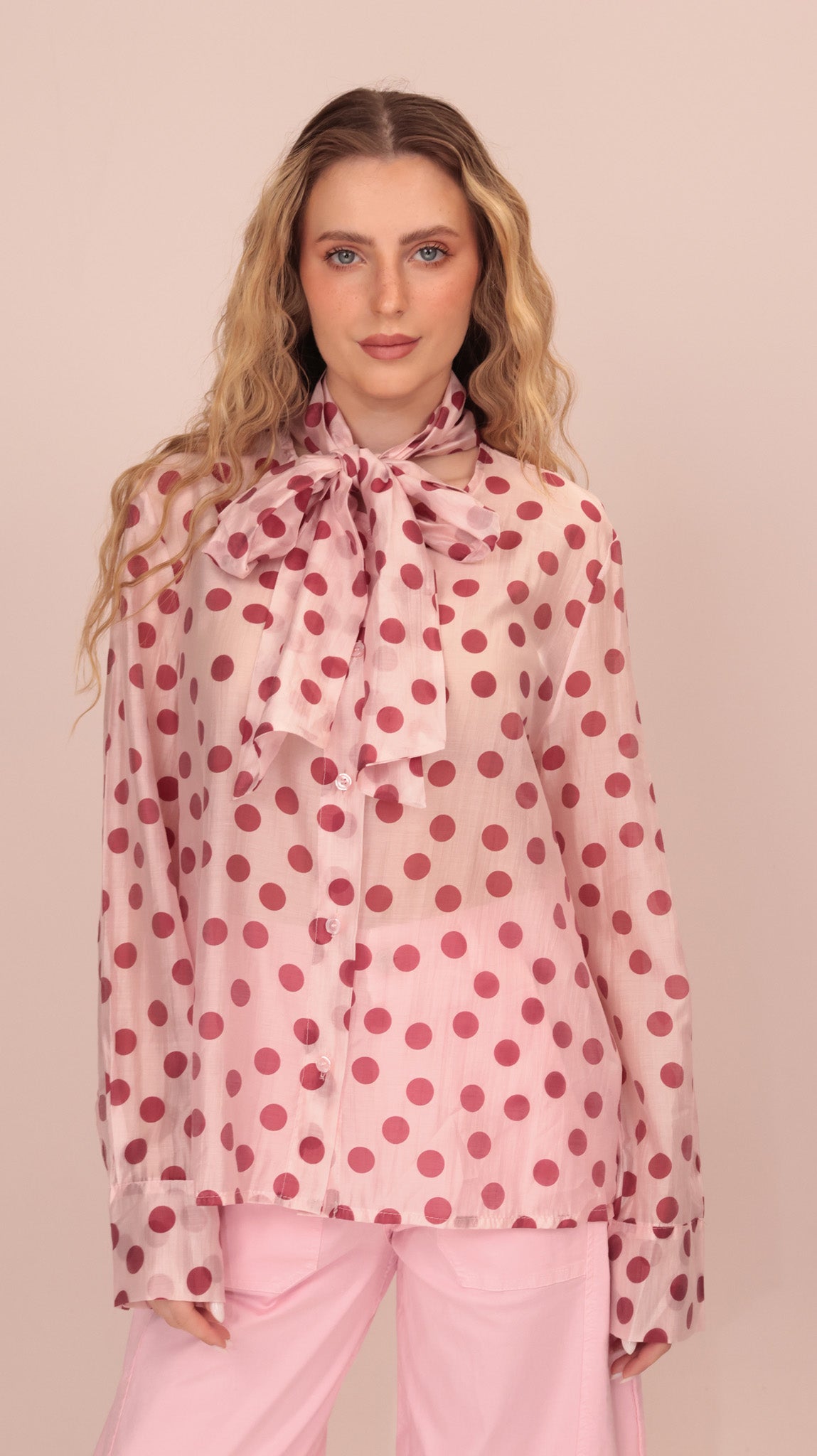 BIG DOTS BLOUSE WITH KNOT – Playful pattern, feminine detail.