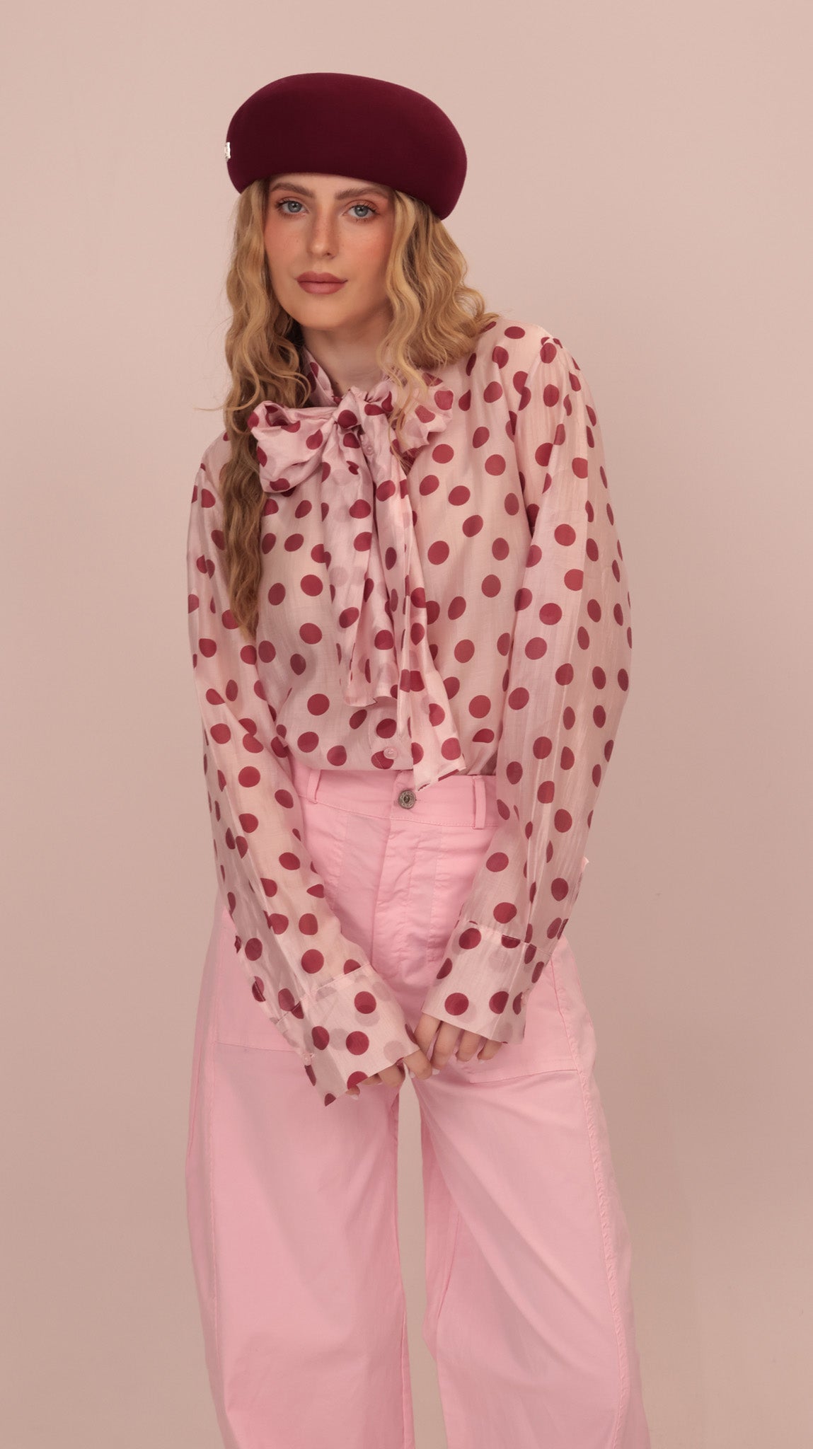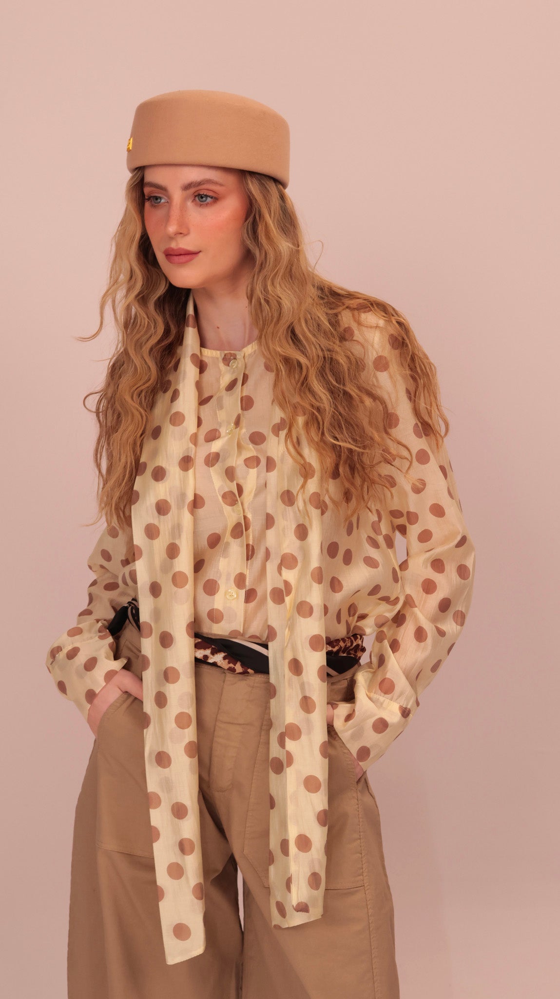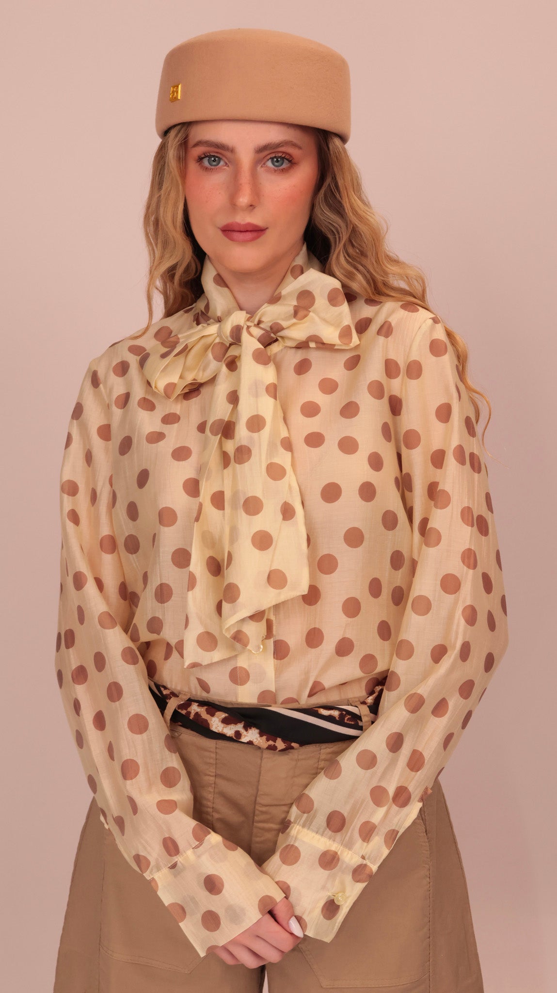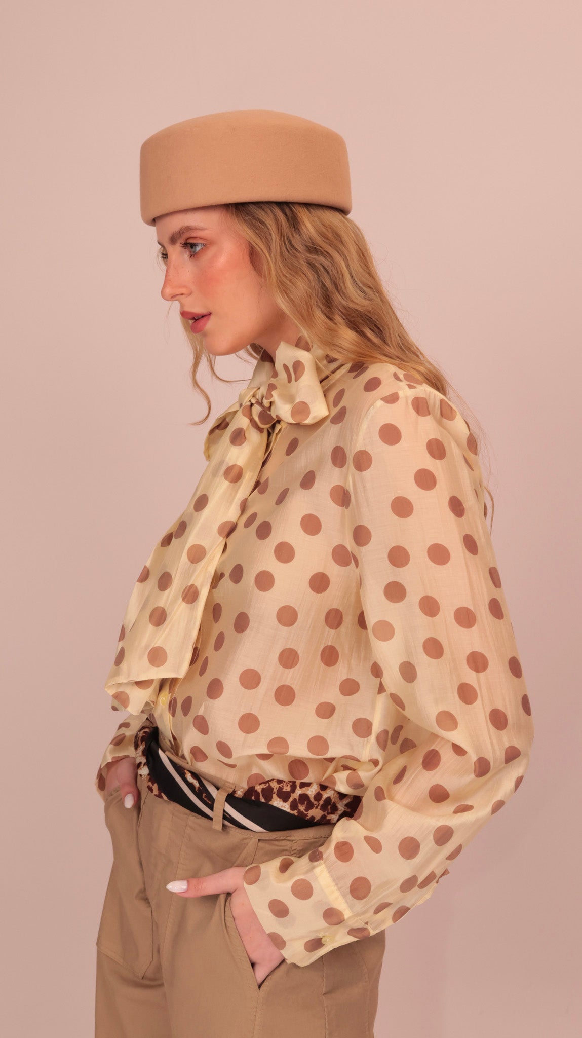 BIG DOTS BLOUSE WITH KNOT – Playful pattern, feminine detail.