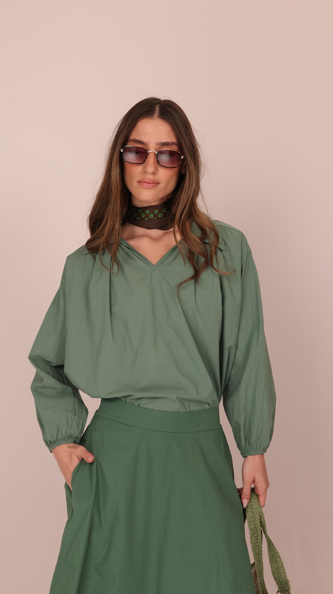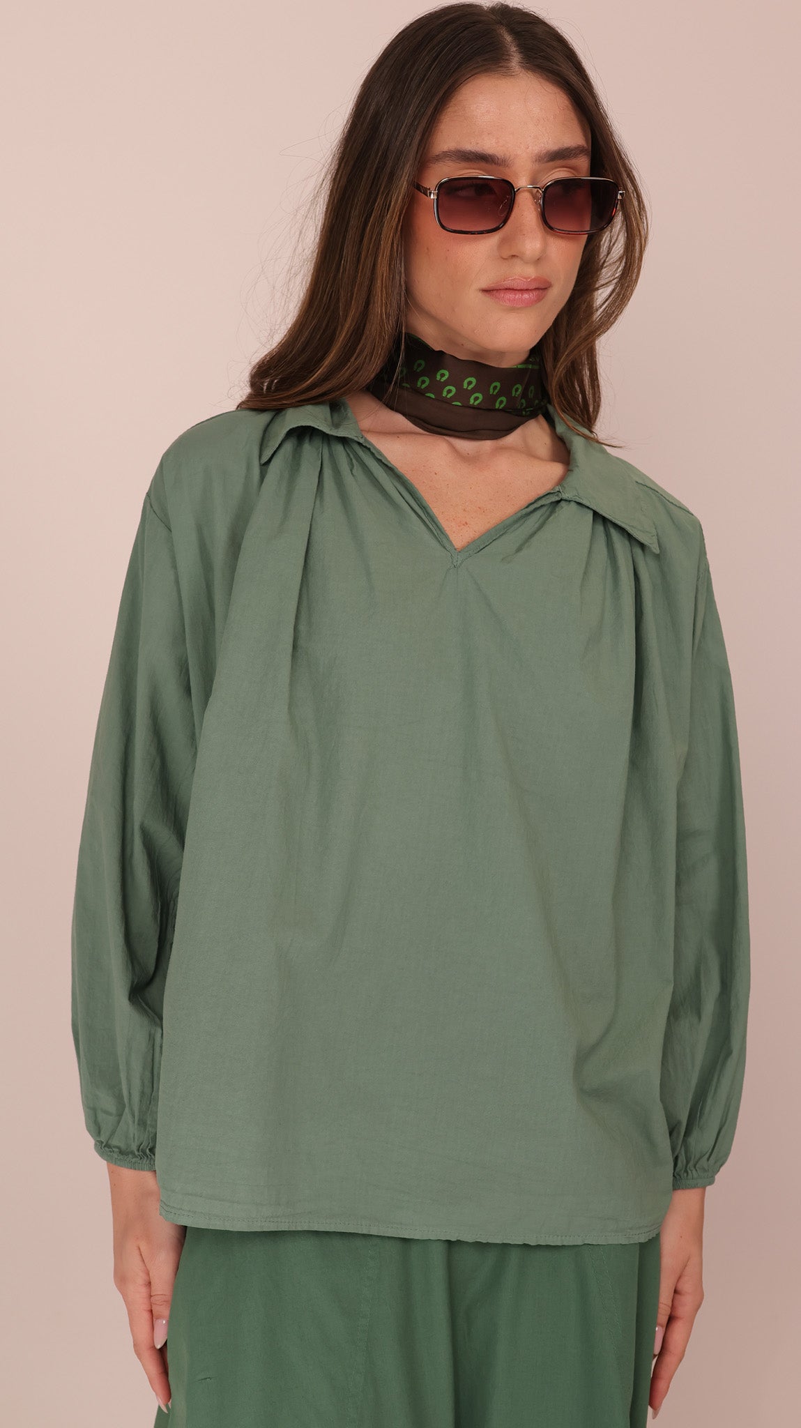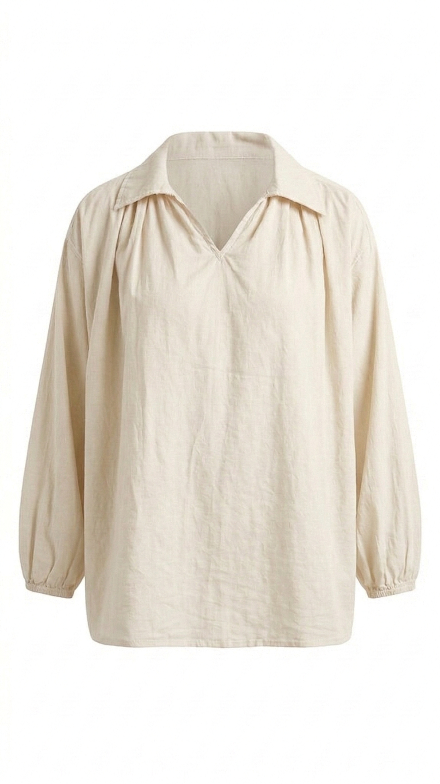 OPEN COLLAR COTTON BLOUSE – Relaxed structure, timeless refinement.
