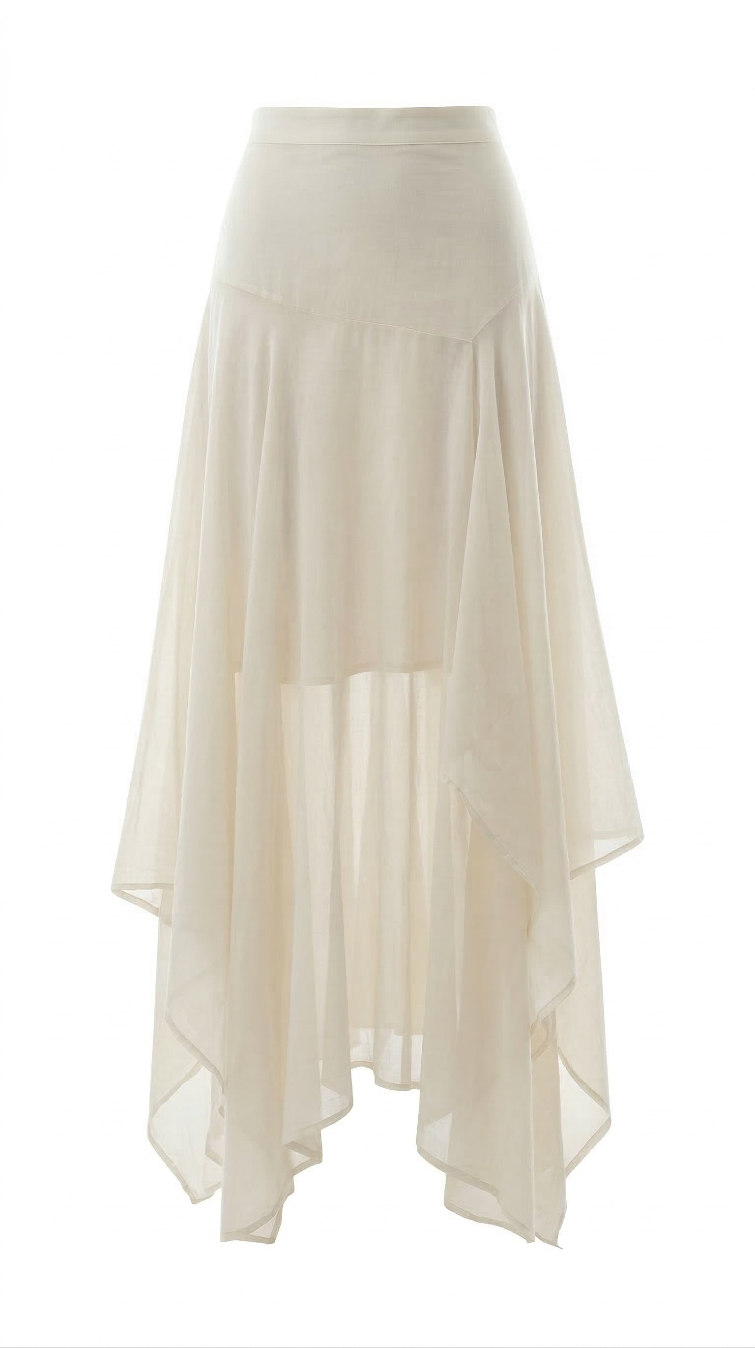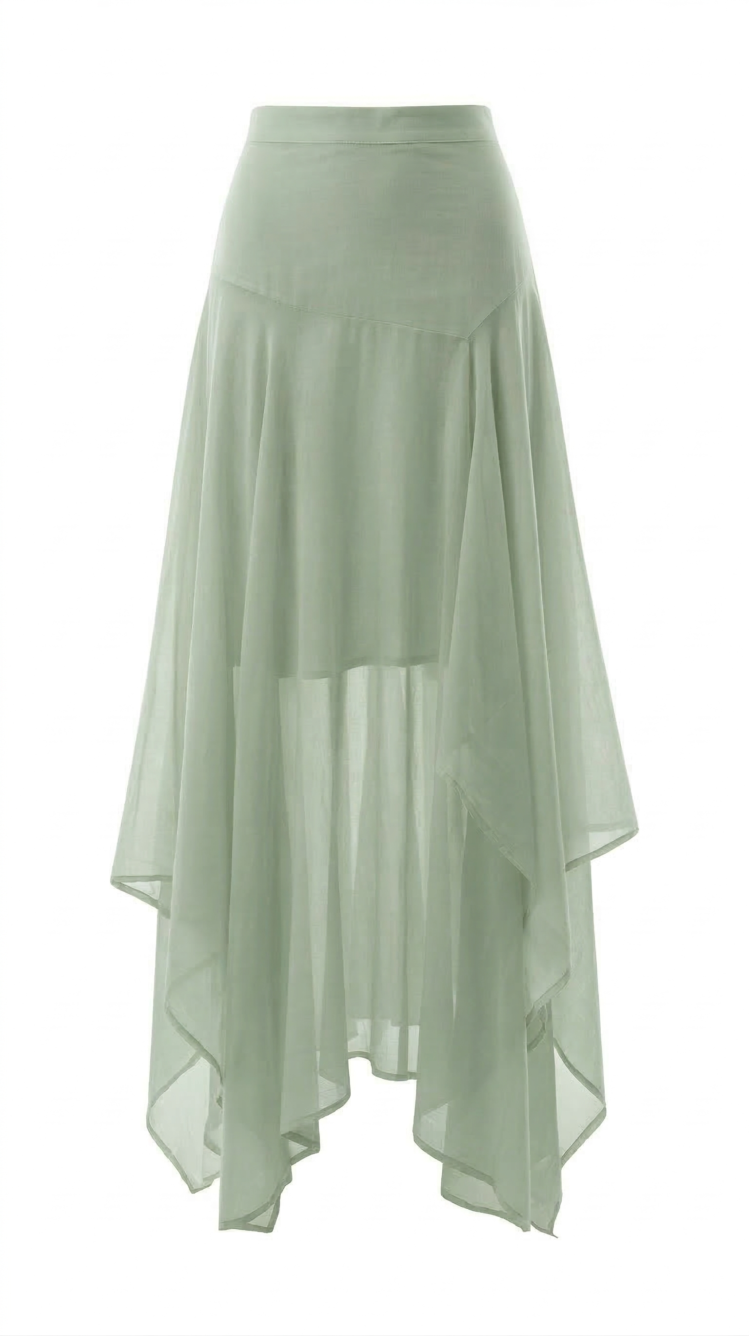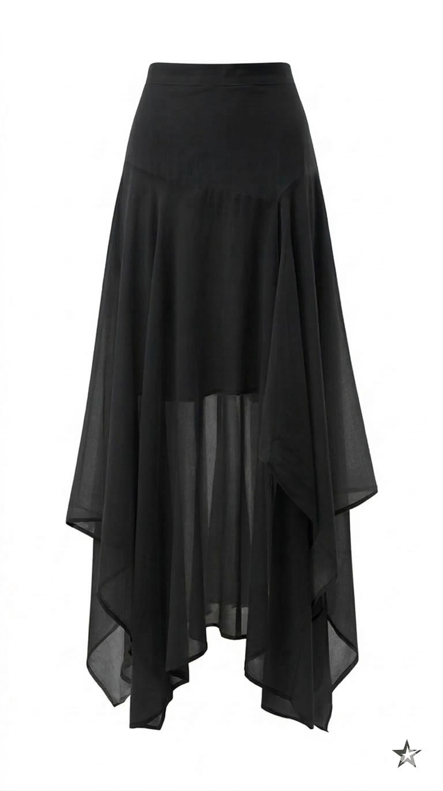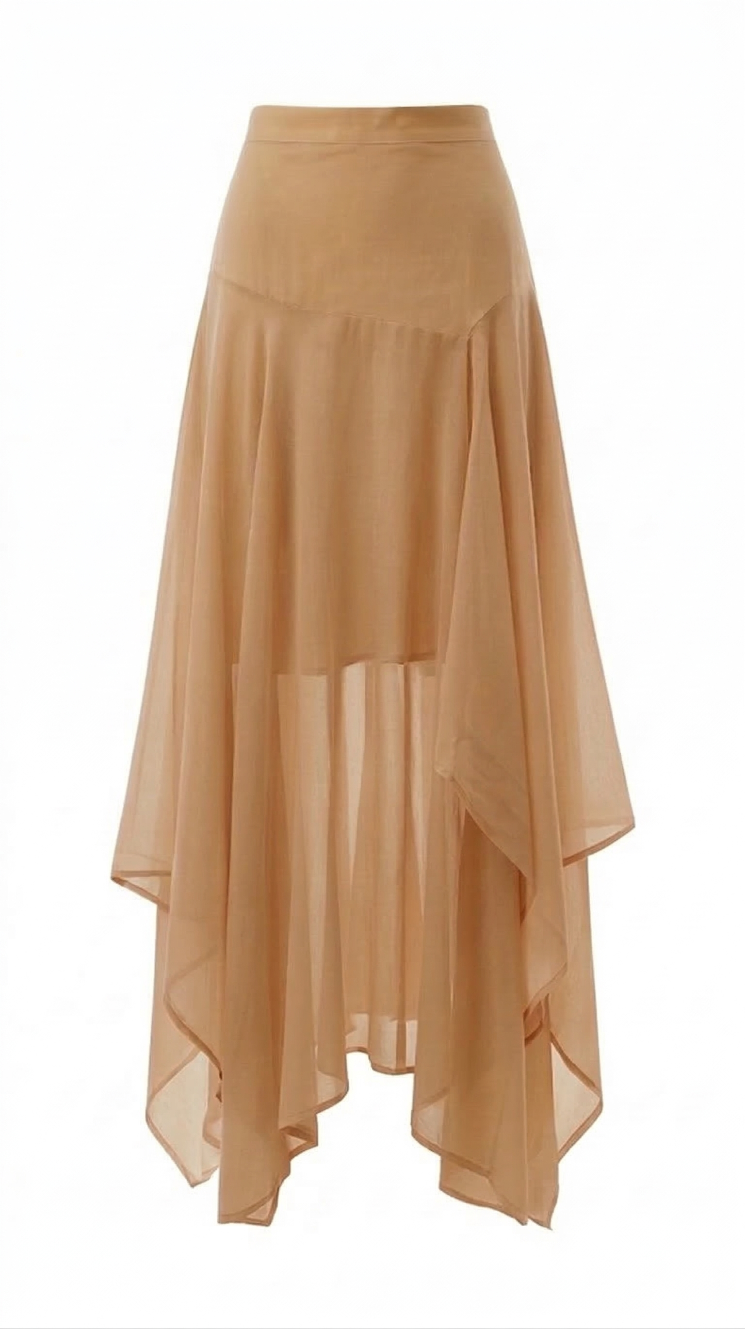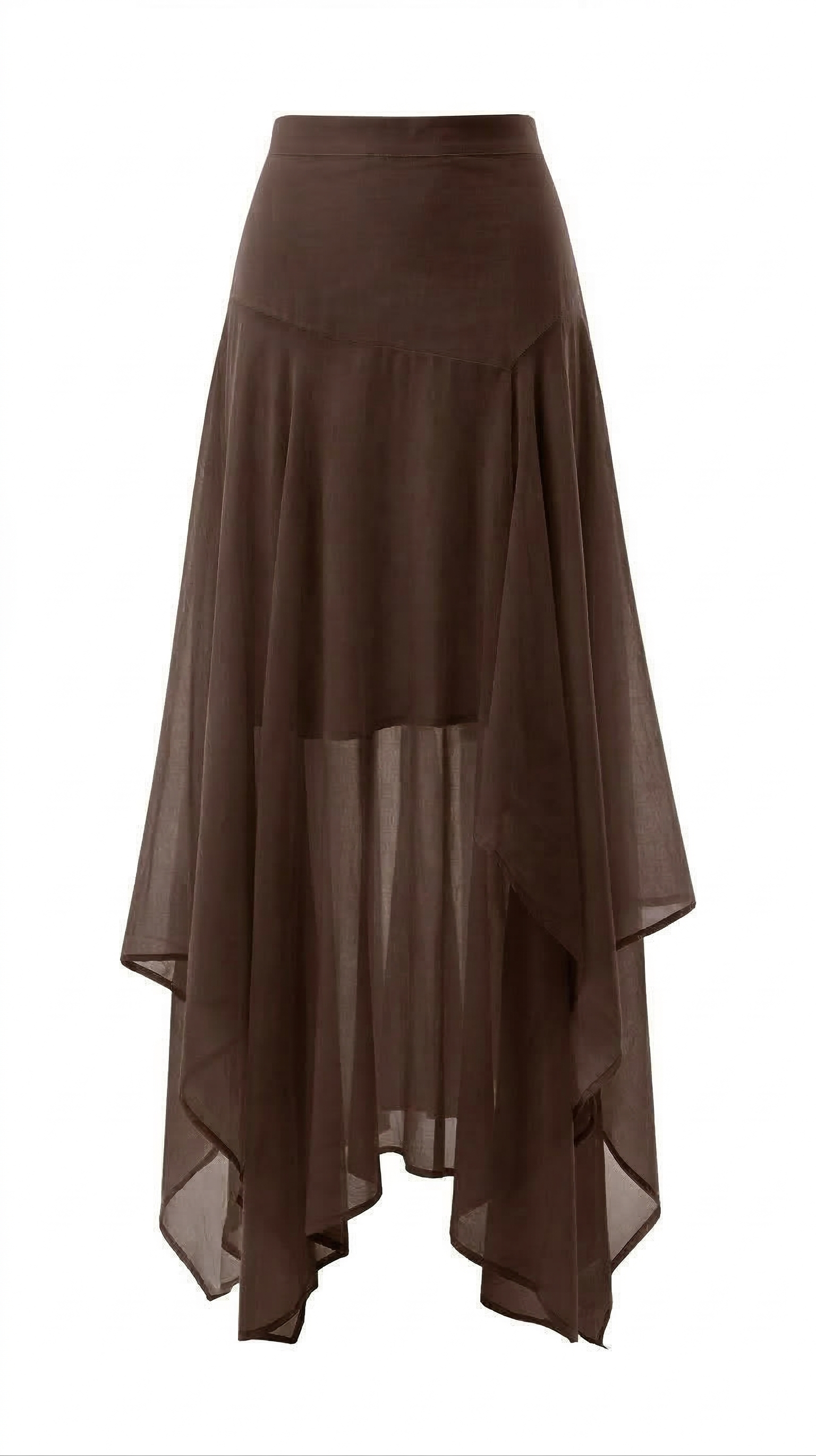 Crafted from a lightweight, fluid fabric, this long skirt features elegant panel construction that creates beautiful movement and natural volume. The vertical panels elongate the silhouette, giving the skirt a graceful and flattering flow with every step.