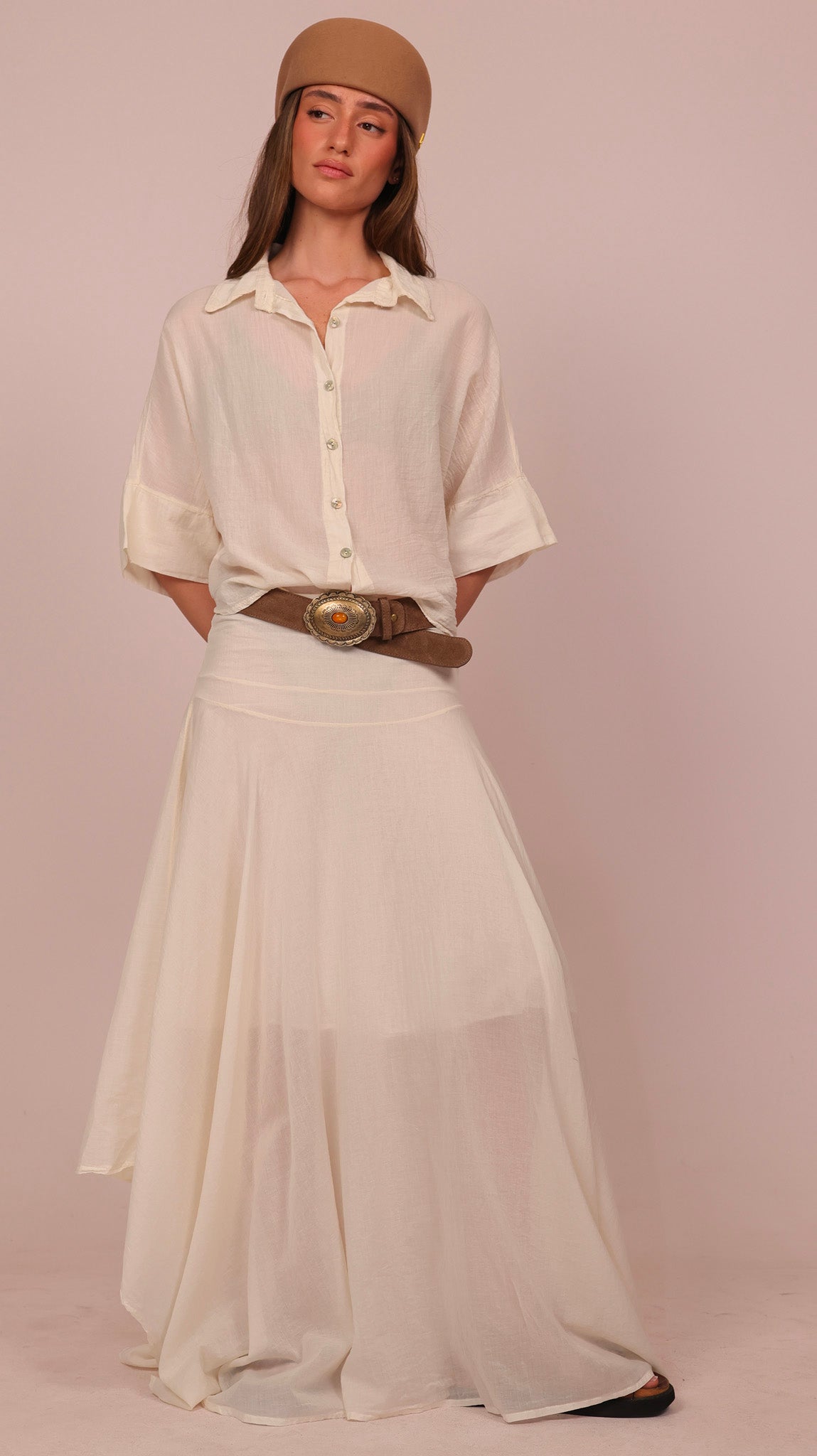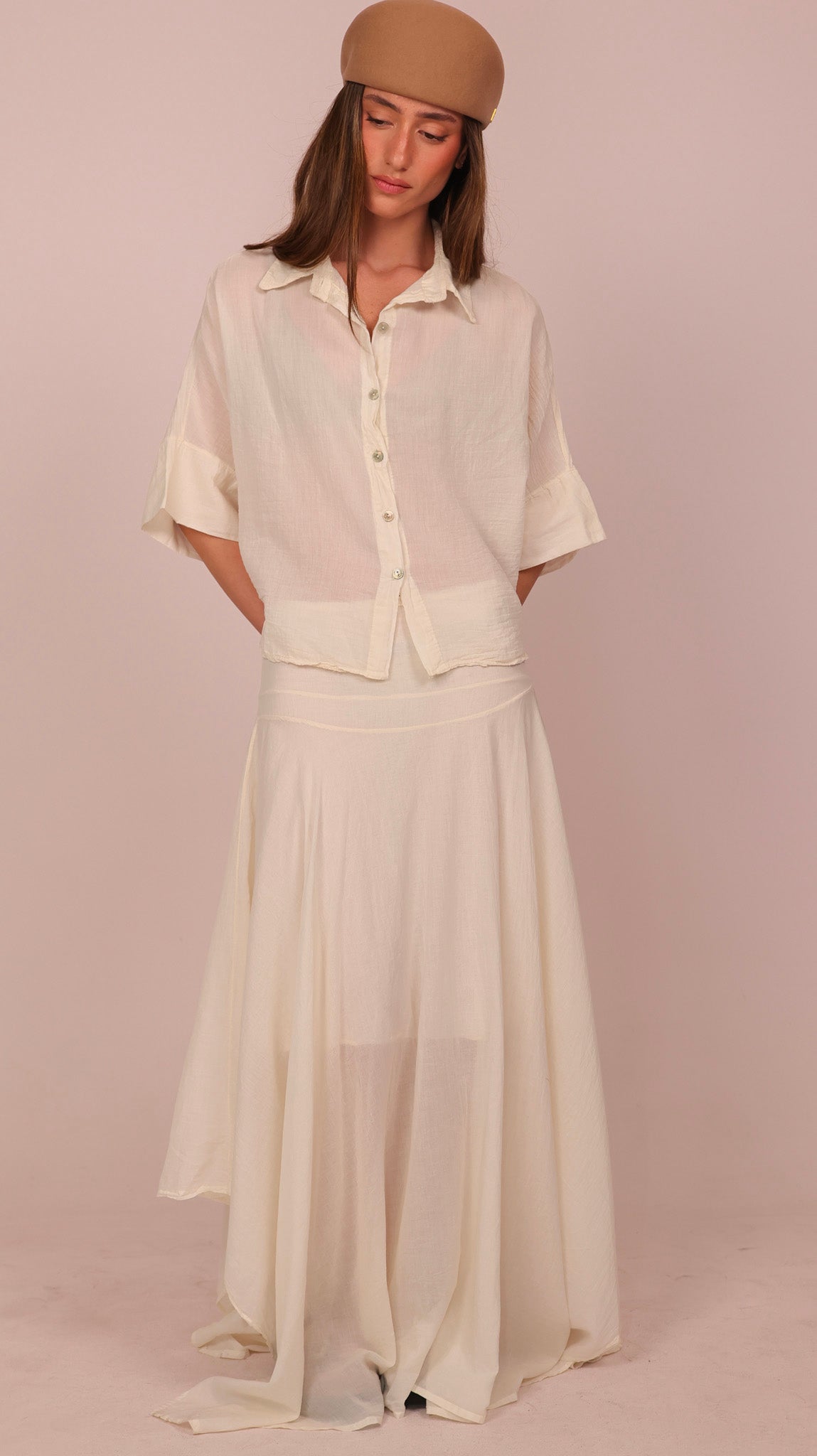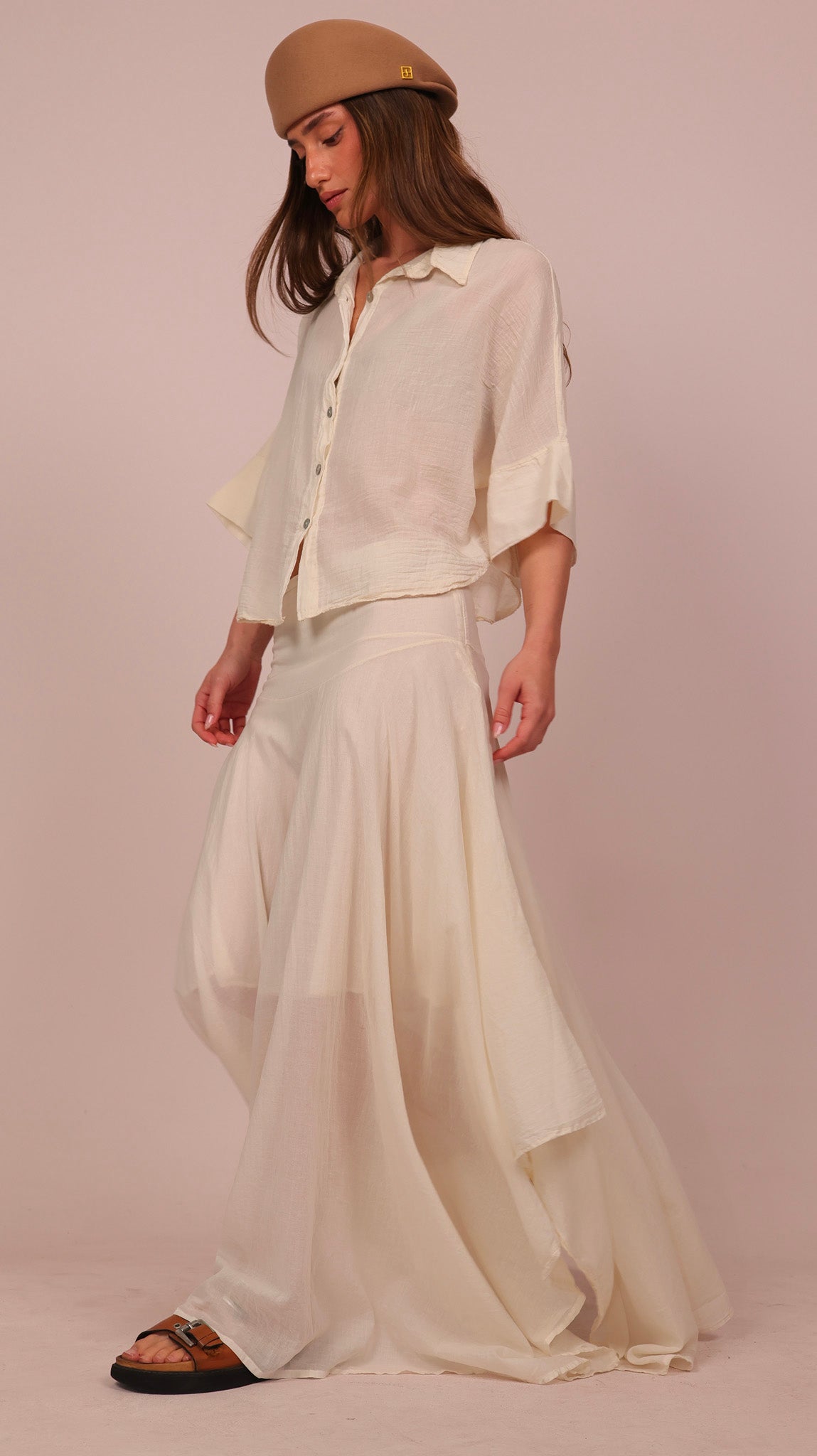 PANELED LONG SKIRT – Effortless movement, refined detail.