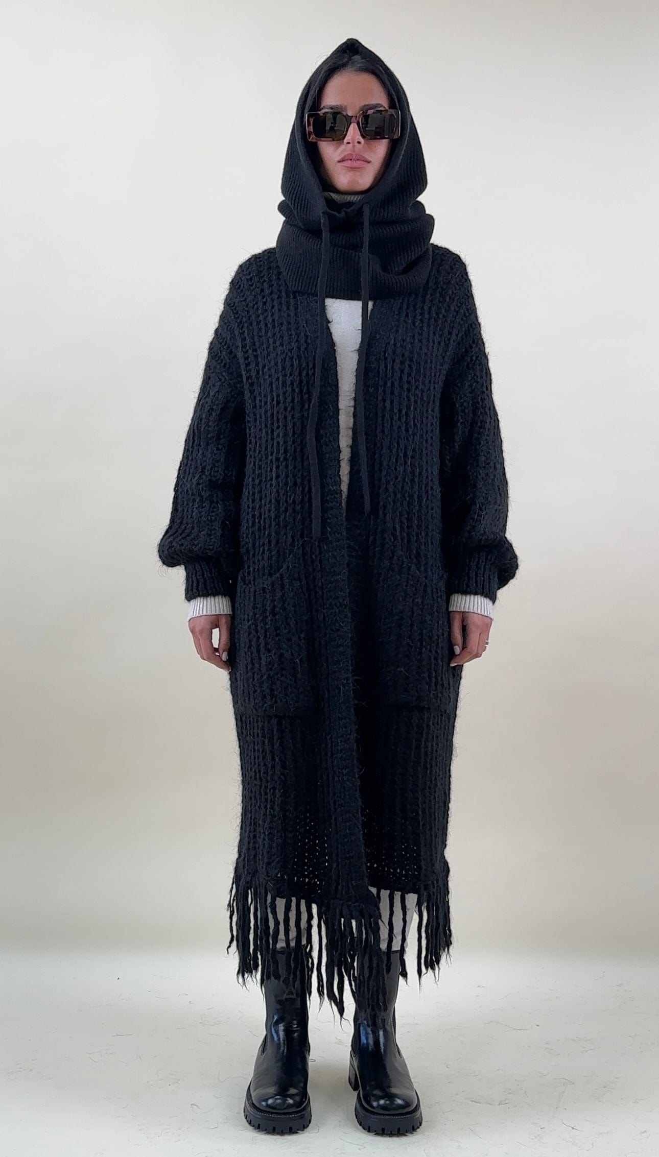 FRINGES JACKET – A stylish jacket enhanced with elegant fringe details.