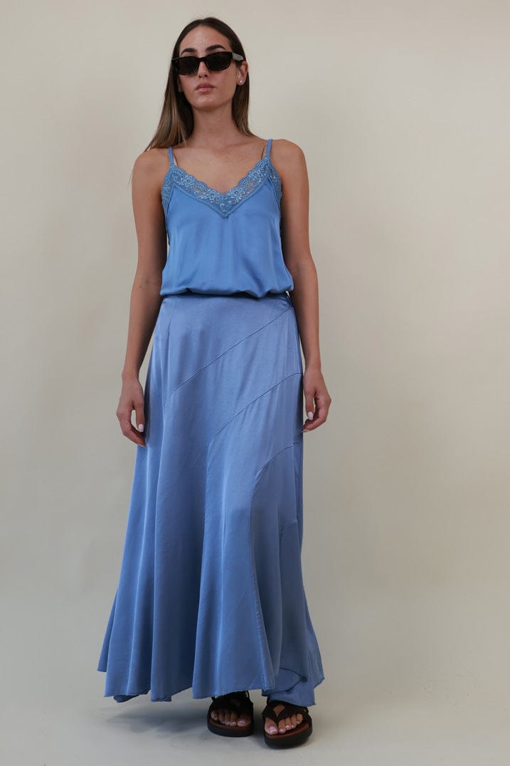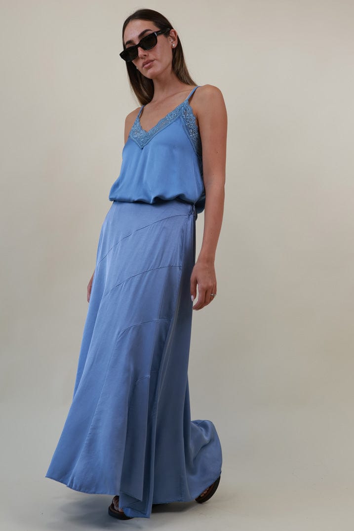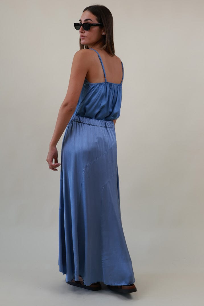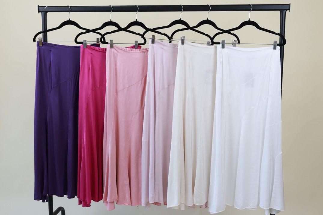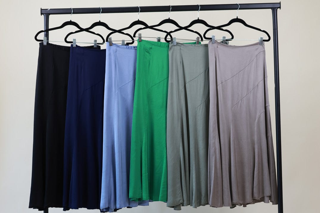 NO SLIT SATIN SKIRT –A sleek no-slit satin skirt for an elegant, timeless silhouette.