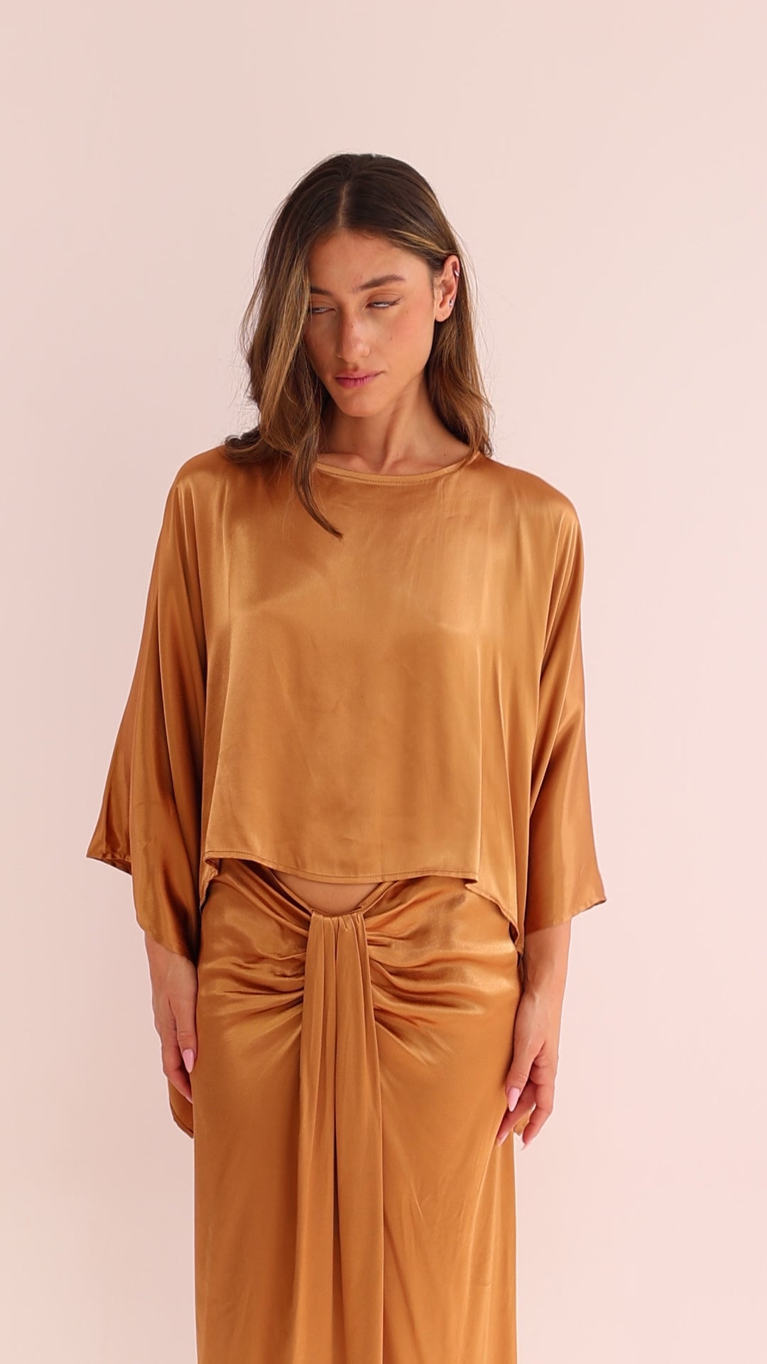SATIN SKIRT WITH KNOT – Satin elegance tied with style.