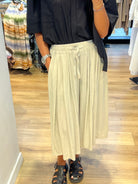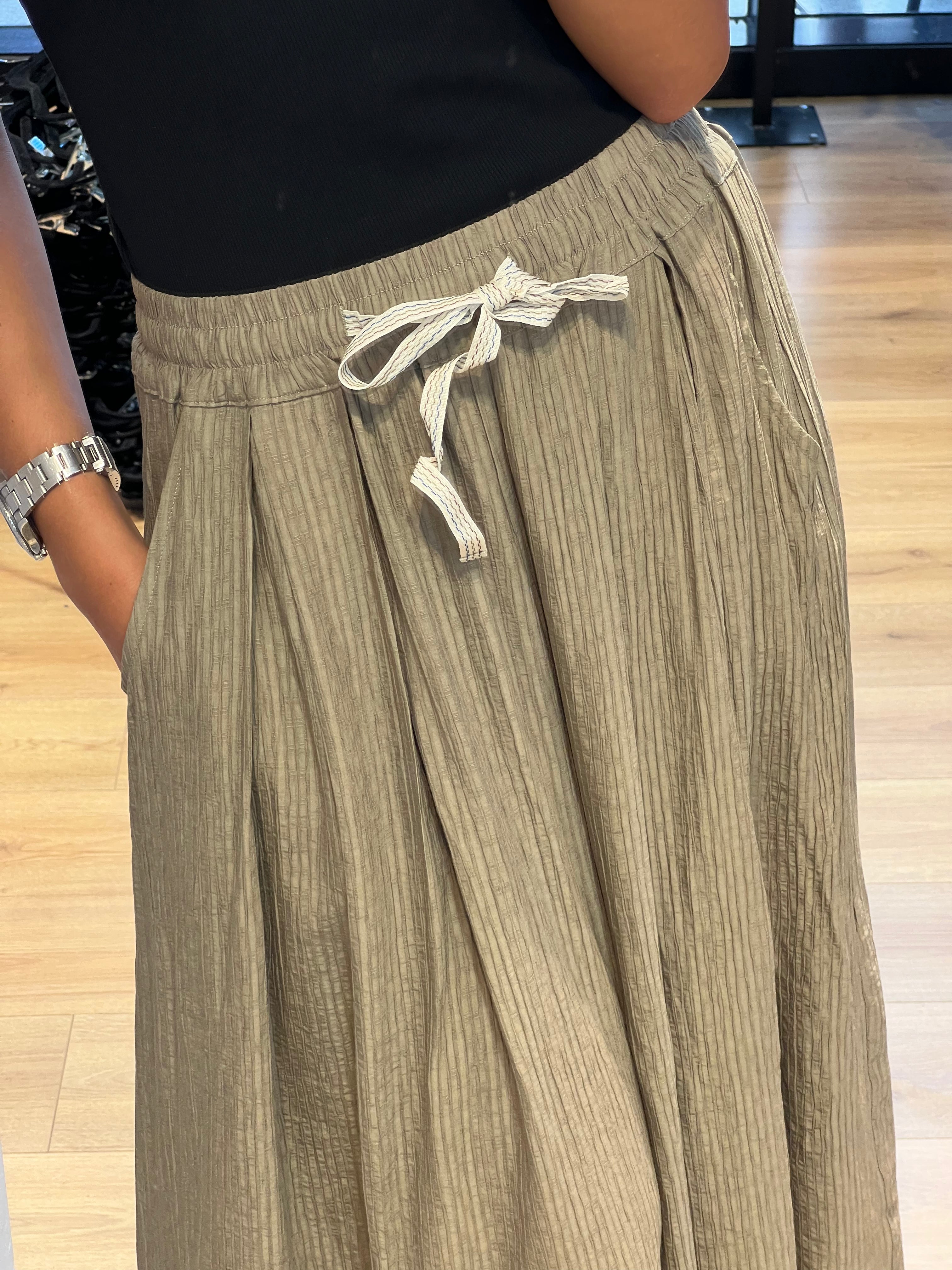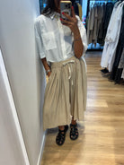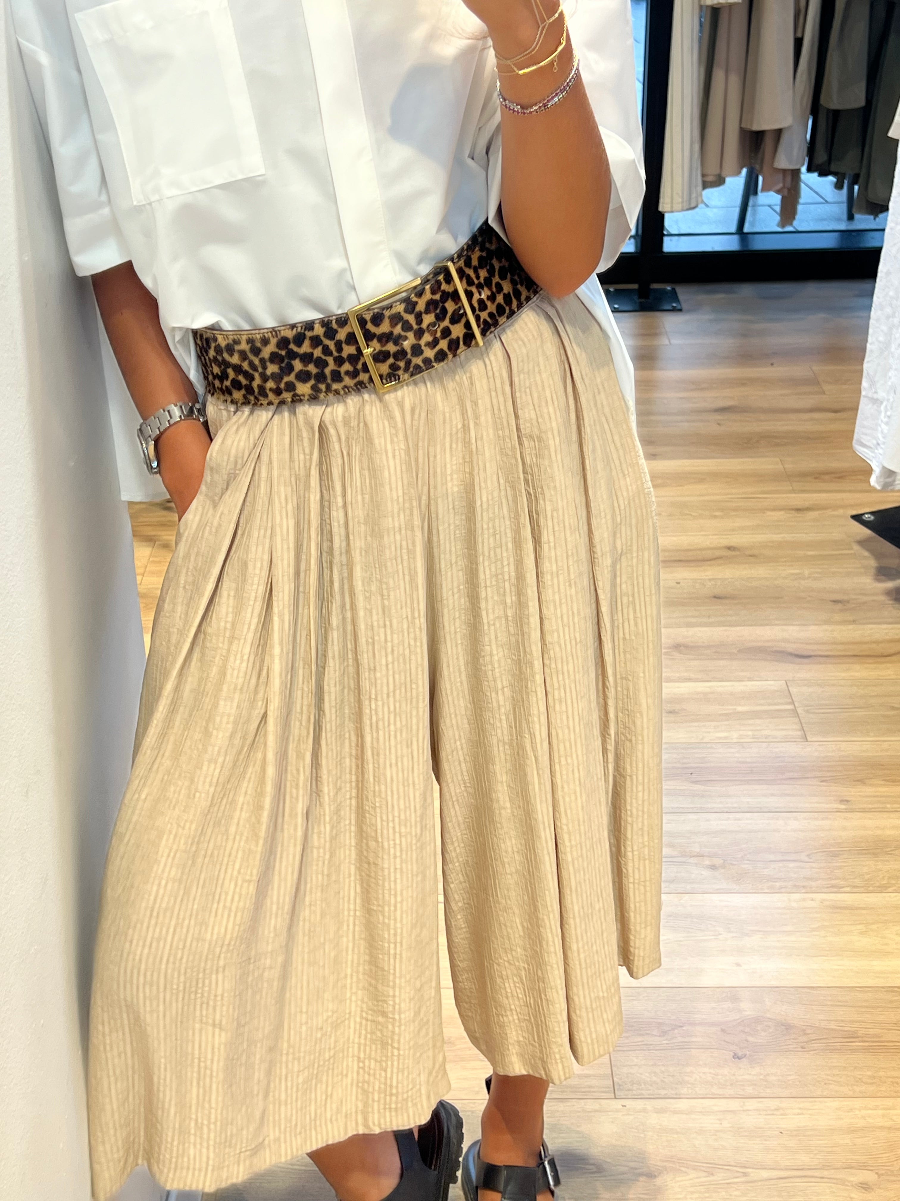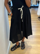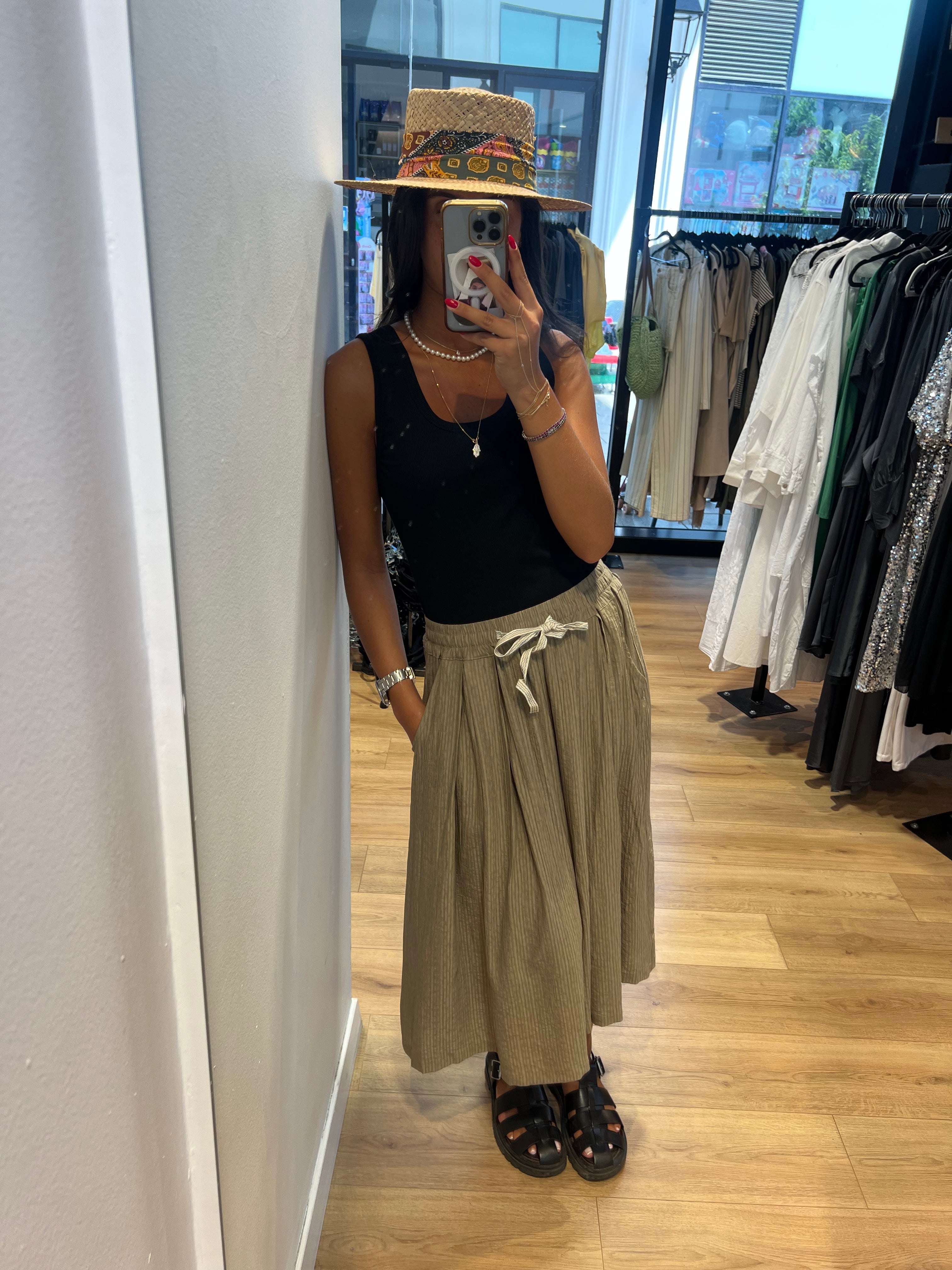 Craquez pour notre skirt pants, l’équilibre parfait entre la fluidité d’une jupe et le confort d’un pantalon. Sa coupe large et son tissu léger créent une silhouette flatteuse et moderne, facile à porter au quotidien comme pour une occasion spéciale. On l’aime avec une chemise rentrée pour un look chic, ou avec un tee-shirt loose pour une allure plus cool.