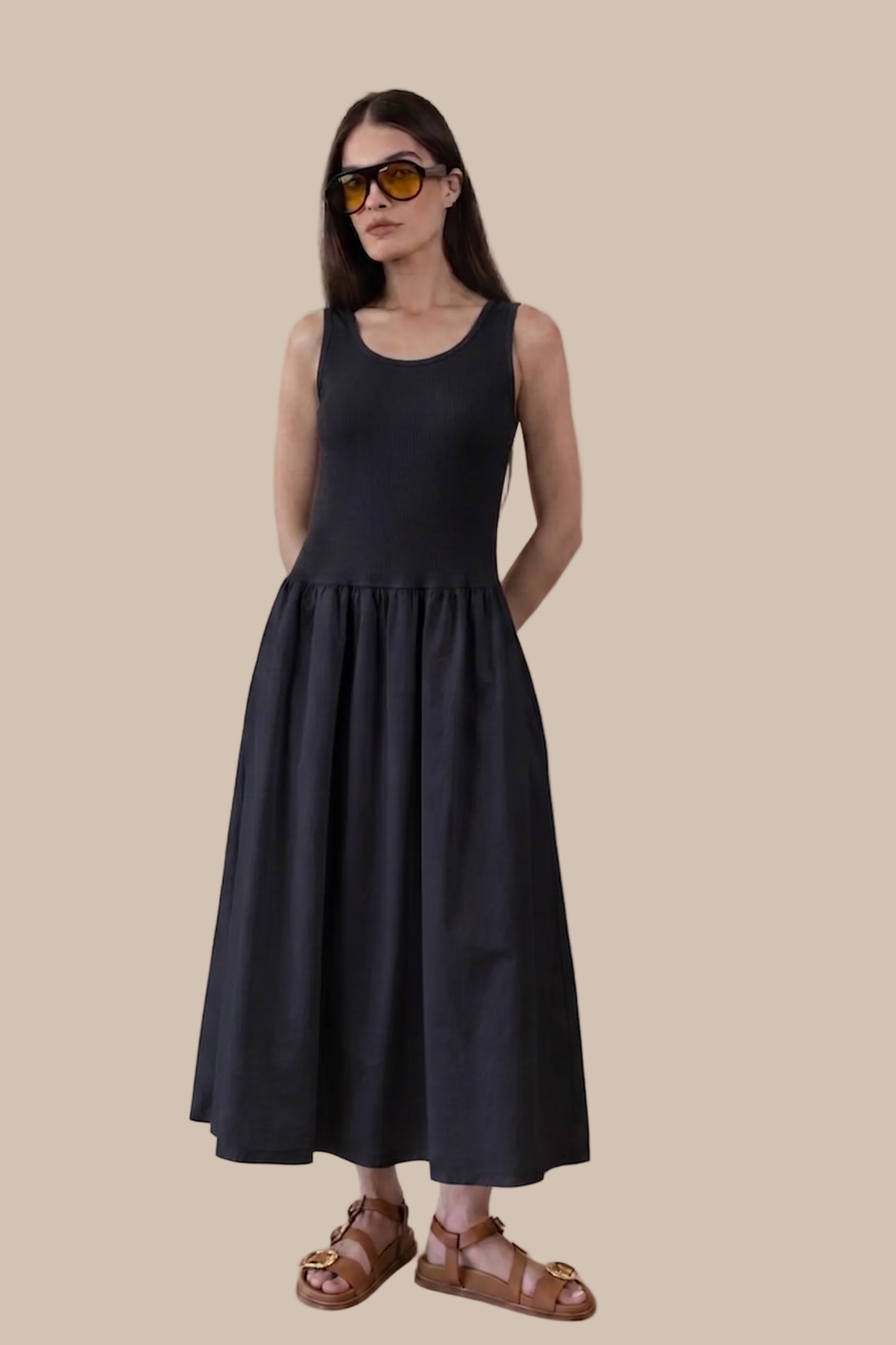 SLEEVELESS COTTON DRESS – Mixed textures, one easy look.