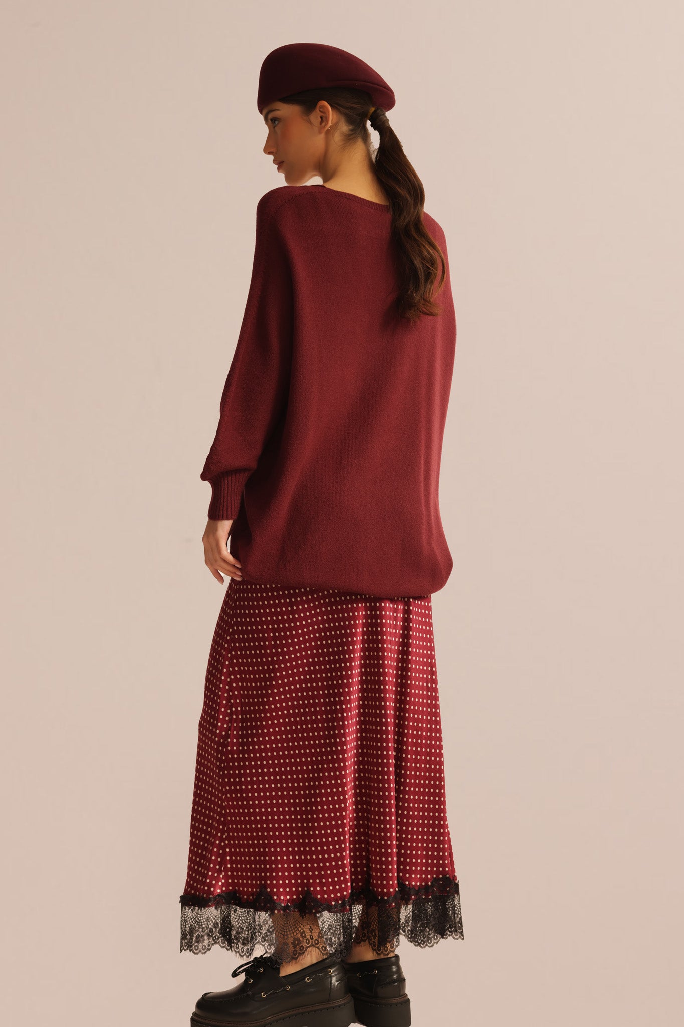 SMALL DOT LACE SKIRT – Delicate lace skirt with fine small-dot accents.