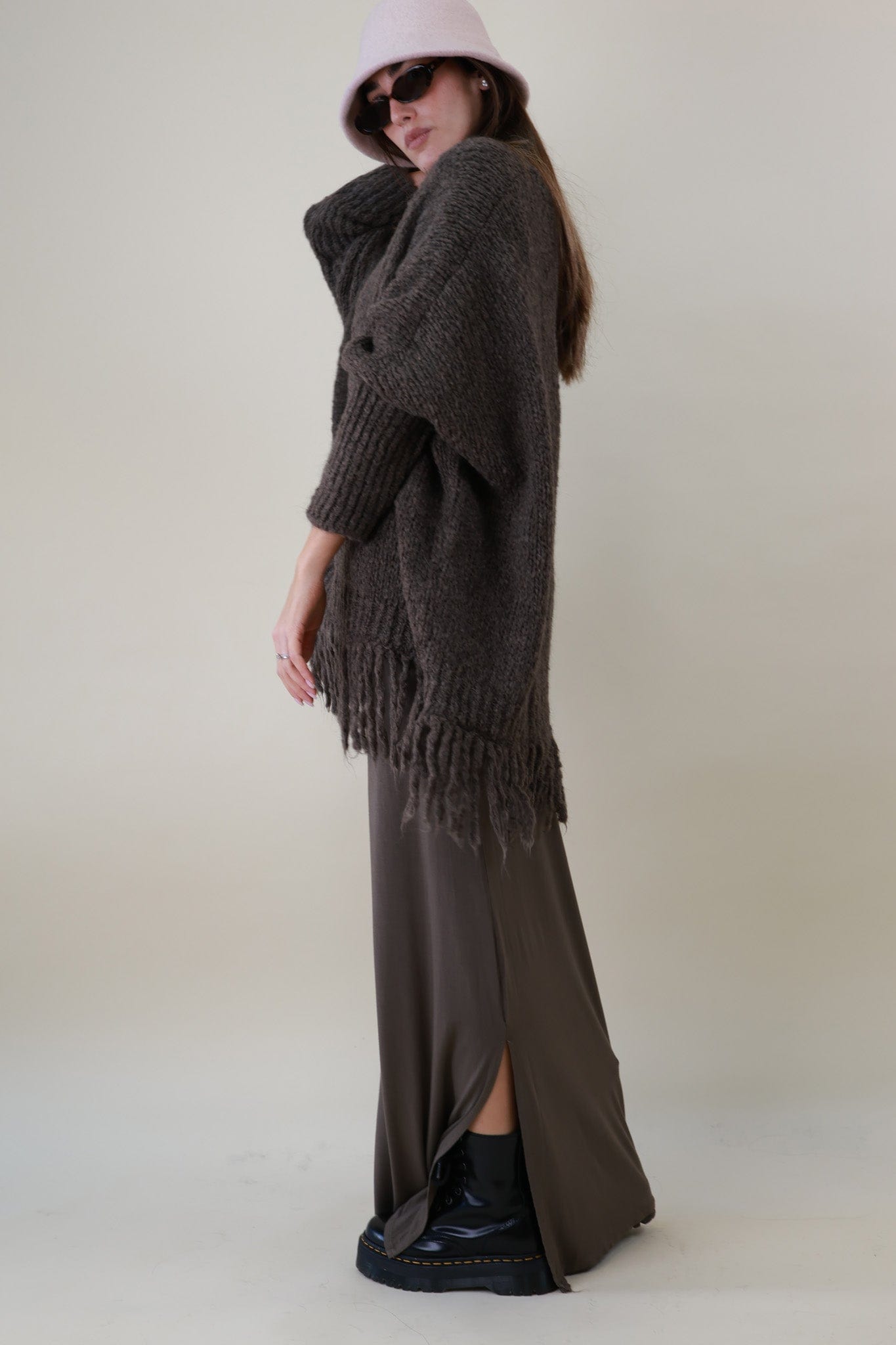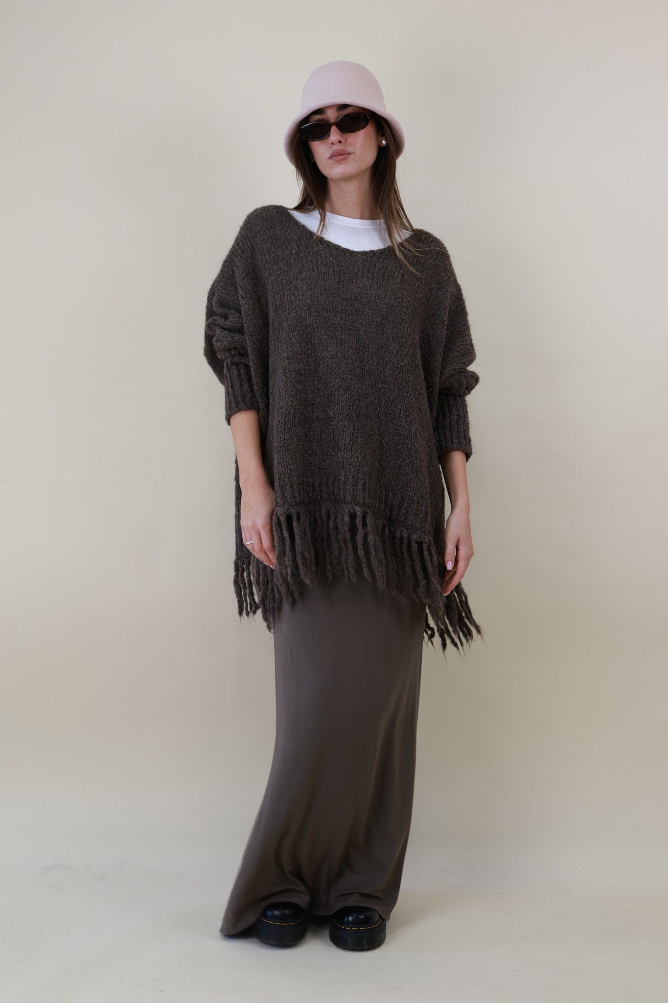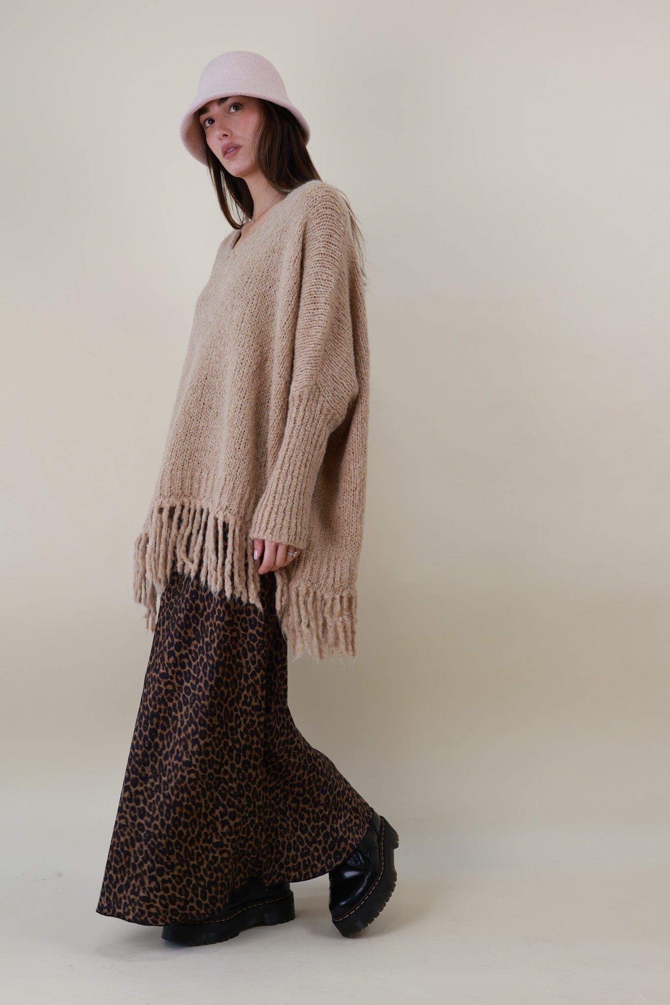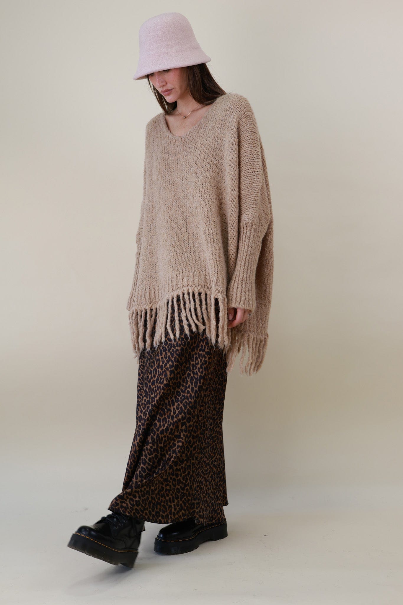 V SWEATER FRINGES – A chic V-neck sweater with stylish fringe details.