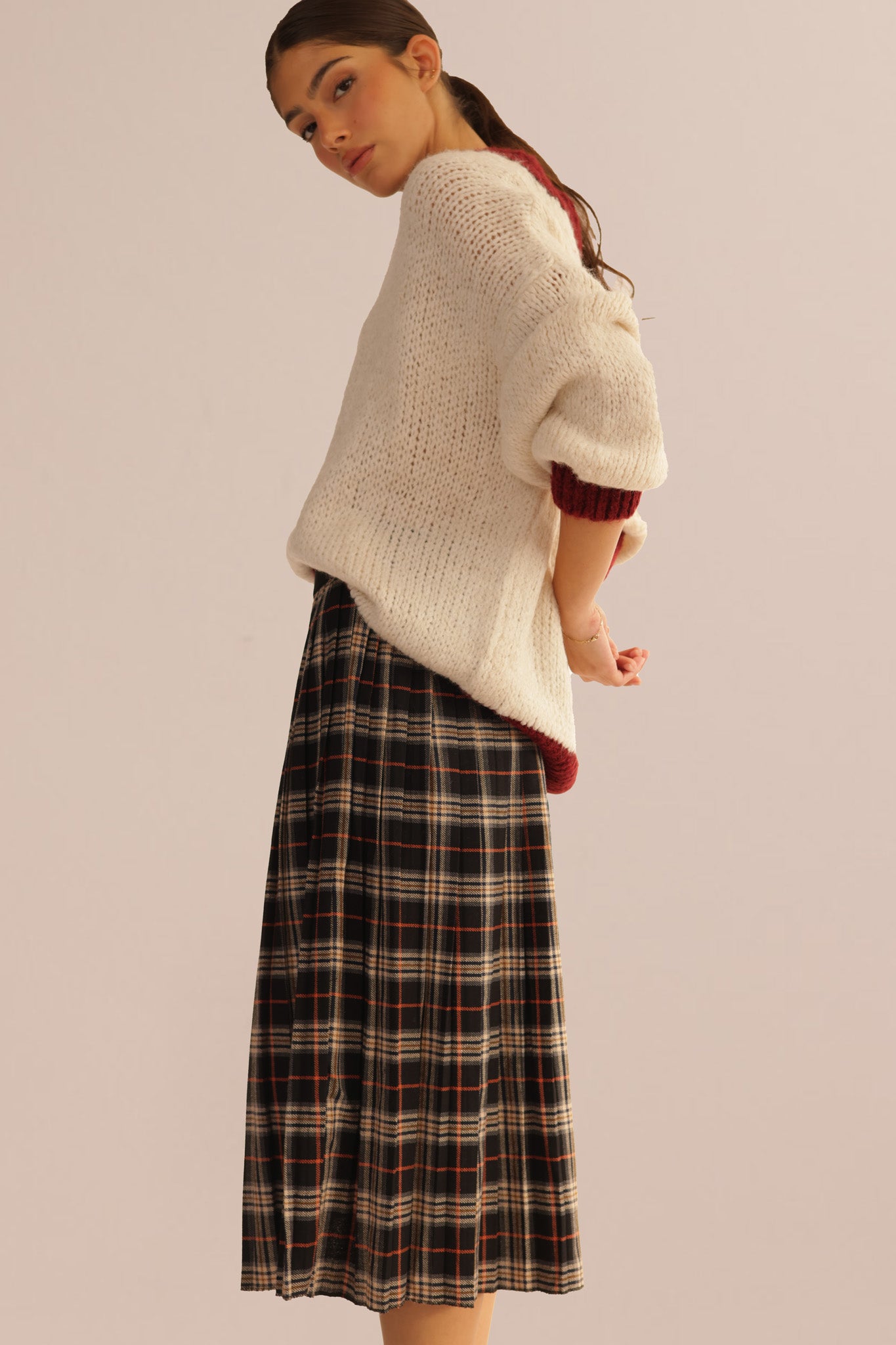Elegant pleated skirt featuring a timeless plaid design