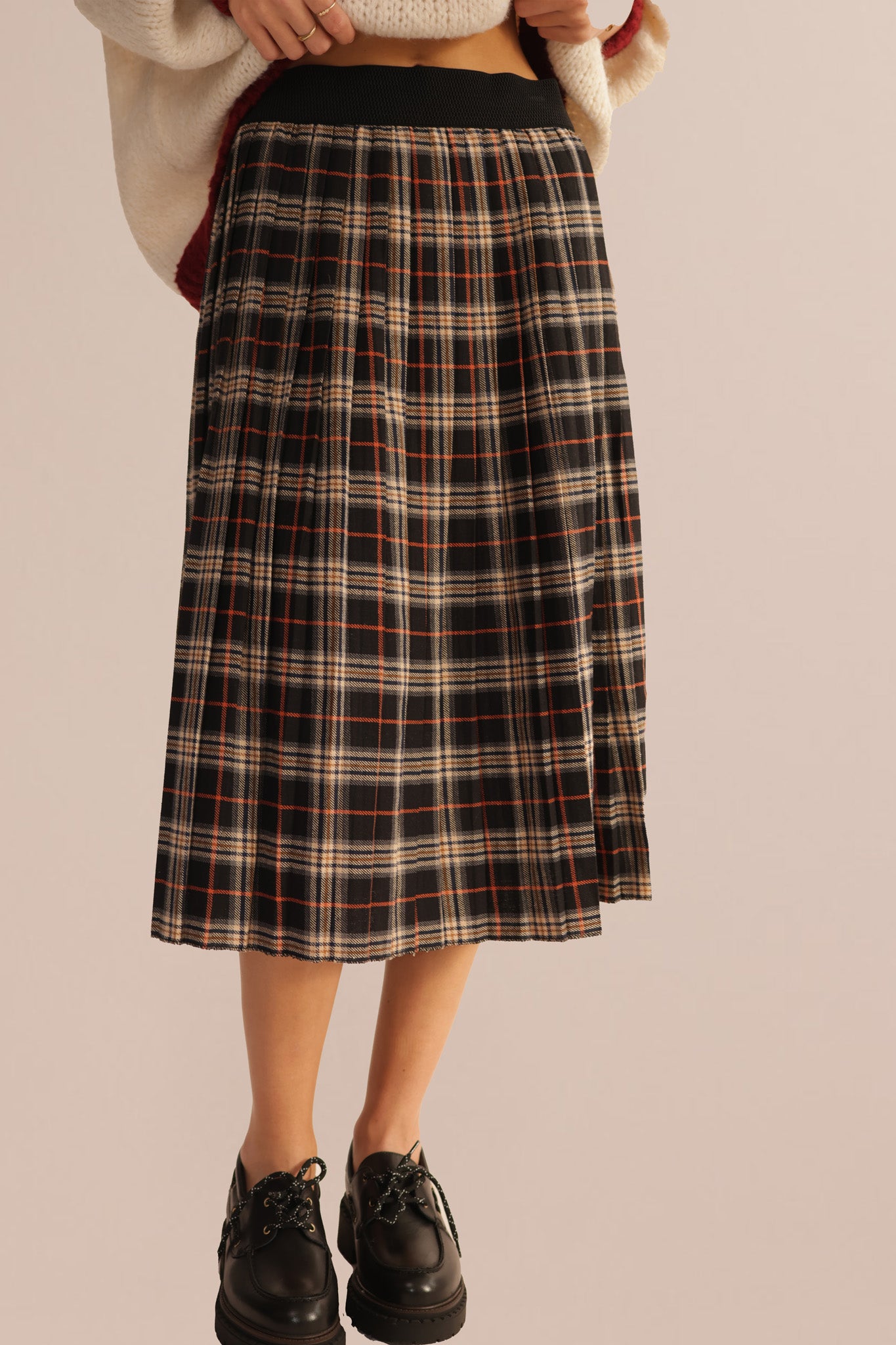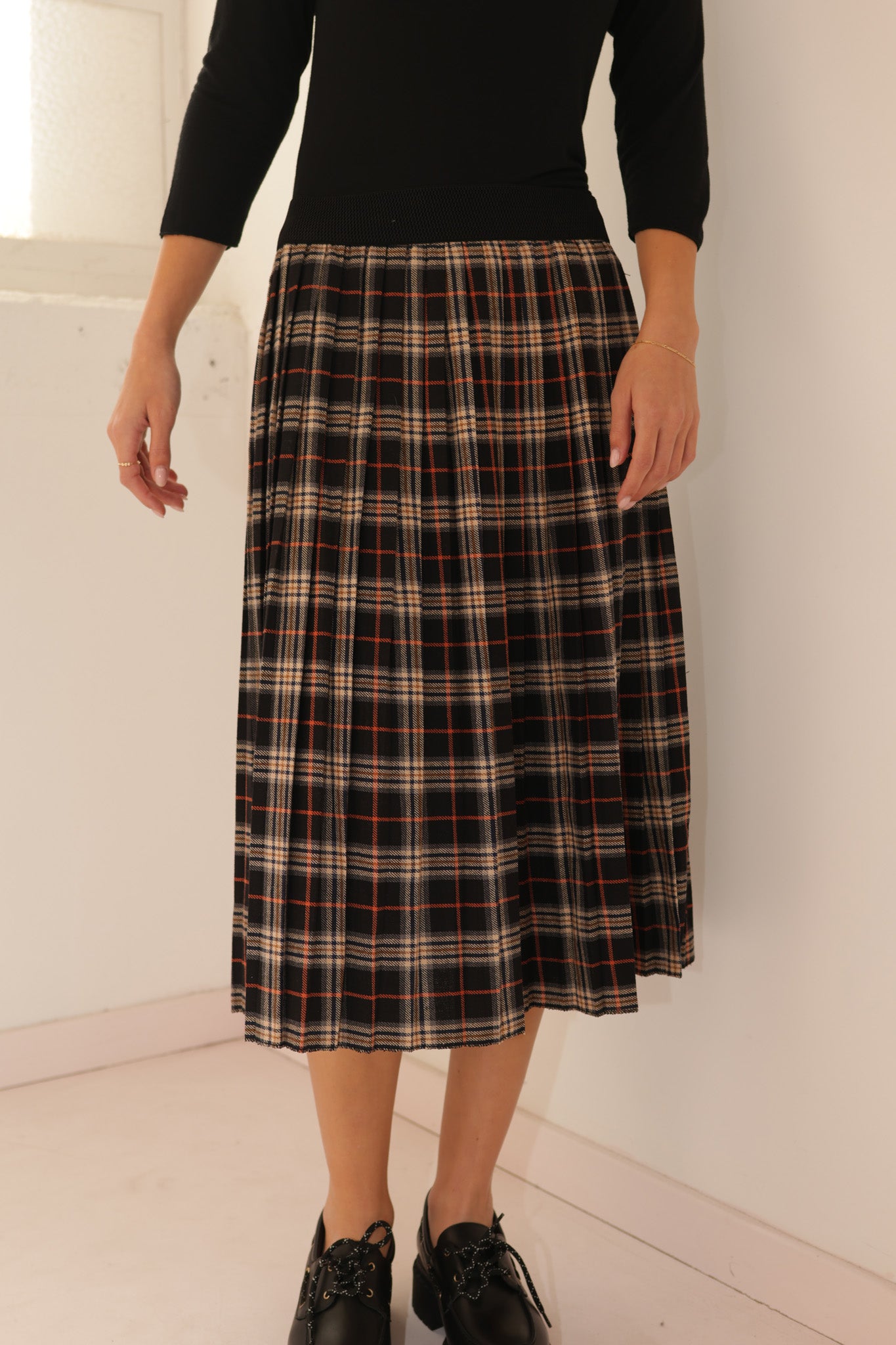 PLISSEE PLAID SKIRT – Pleated skirt with a classic plaid pattern.