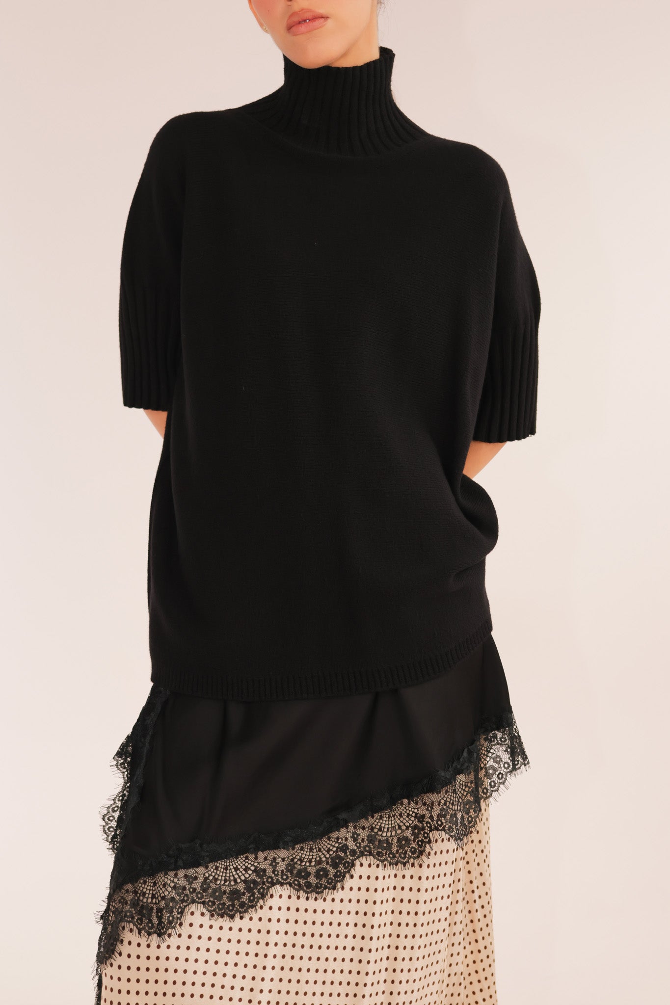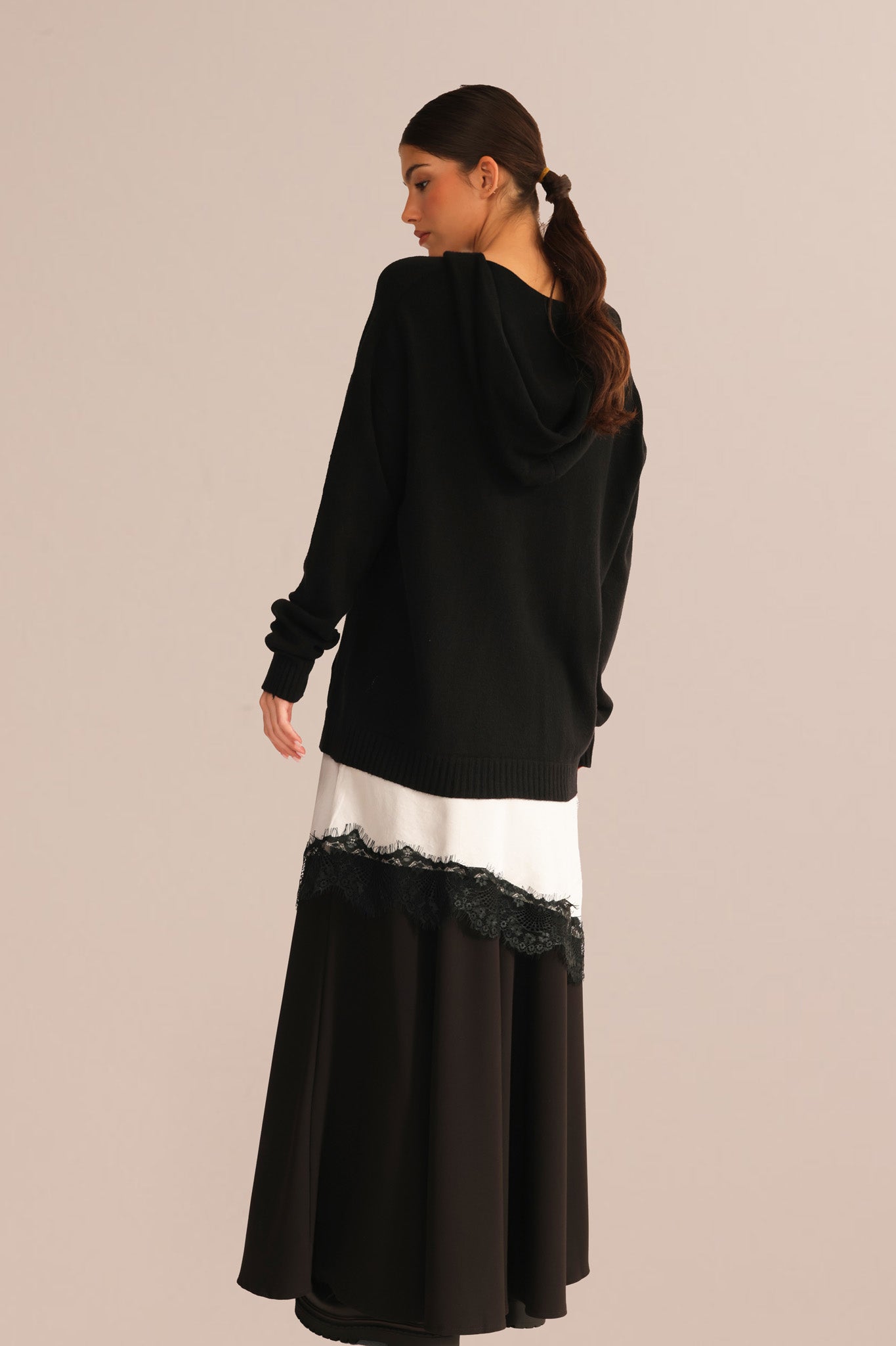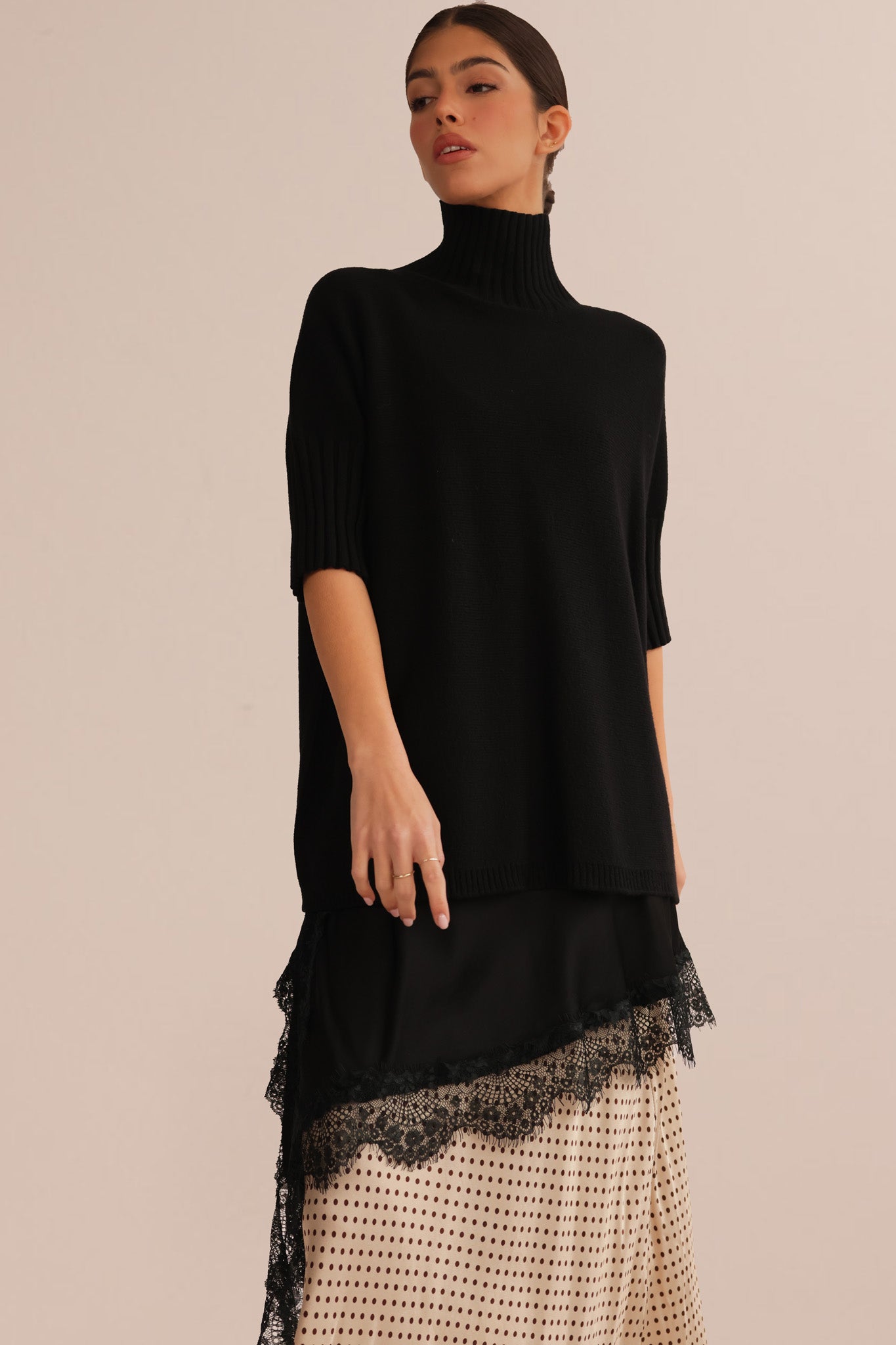 ASYMETRICAL SATIN LACE SKIRT – Asymmetrical satin skirt with lace details.