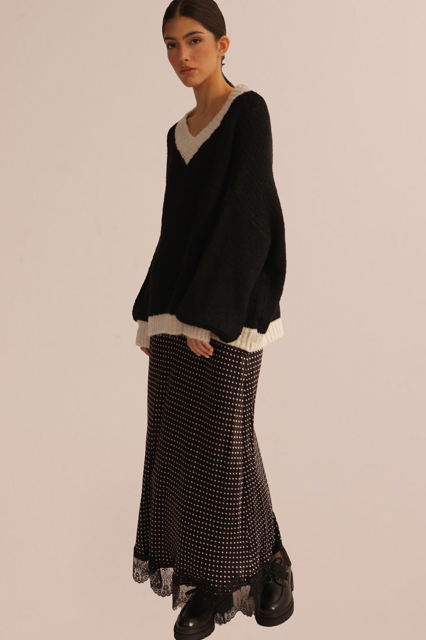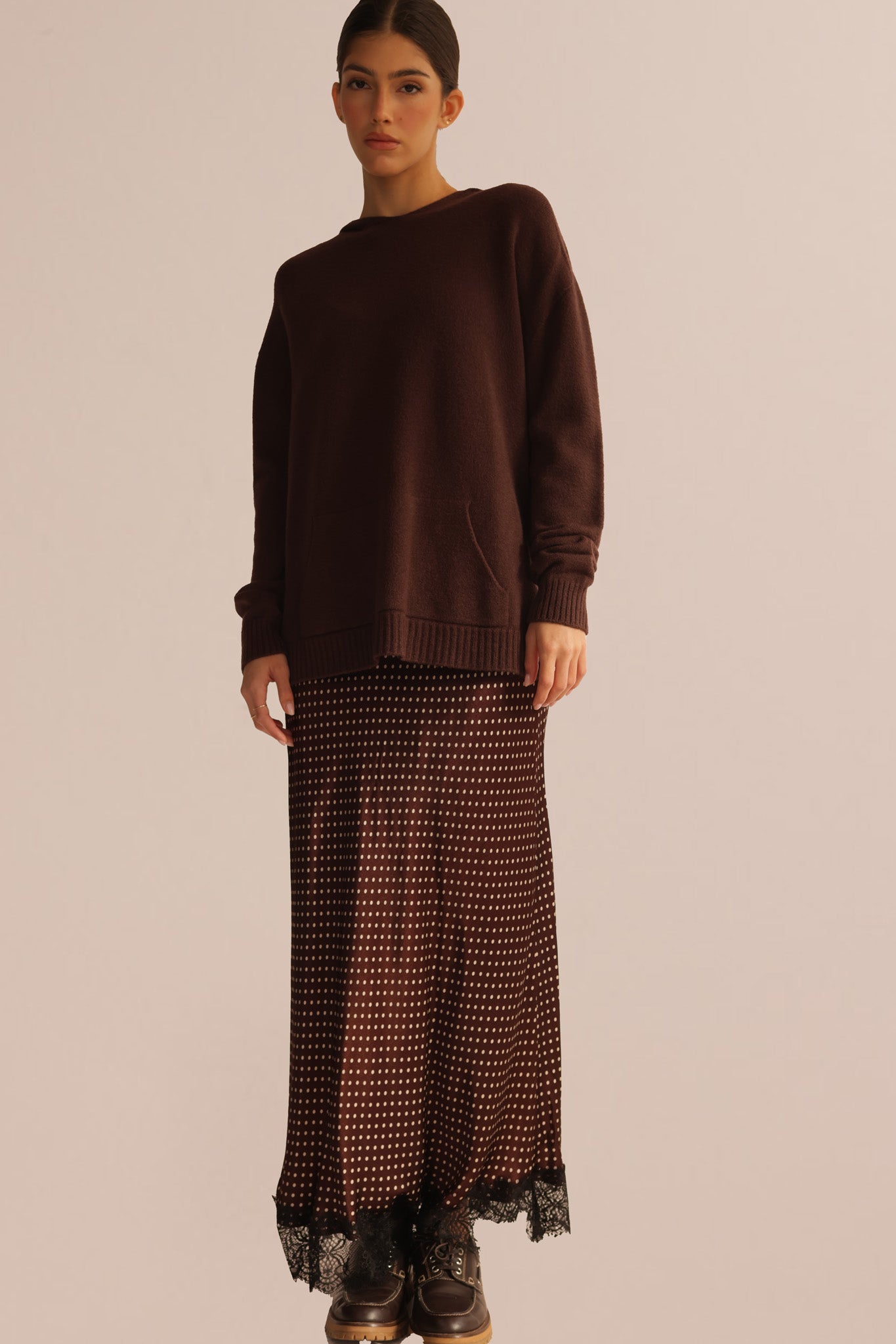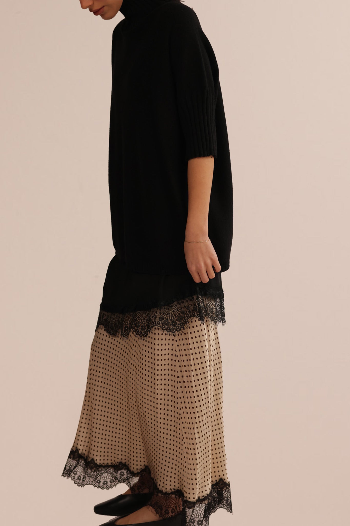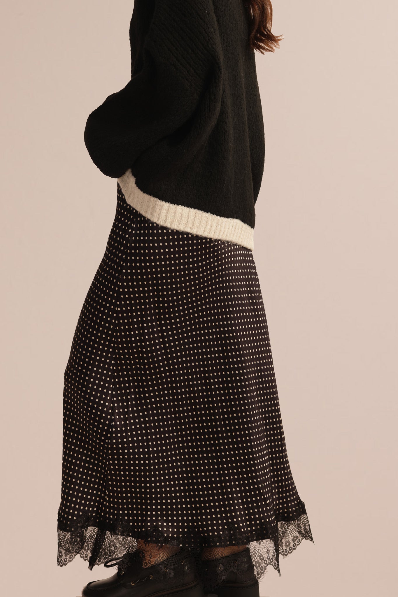 SMALL DOT LACE SKIRT – Delicate lace skirt with fine small-dot accents.