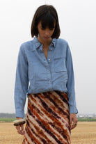 This classic denim button-up shirt features a relaxed cut, front pocket detail, and soft cotton fabric for all-day comfort.