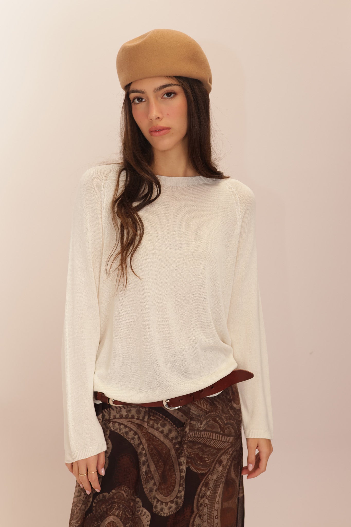LONG SLEEVES VISCOSA ROUND – Viscose long-sleeve top with a round neckline.