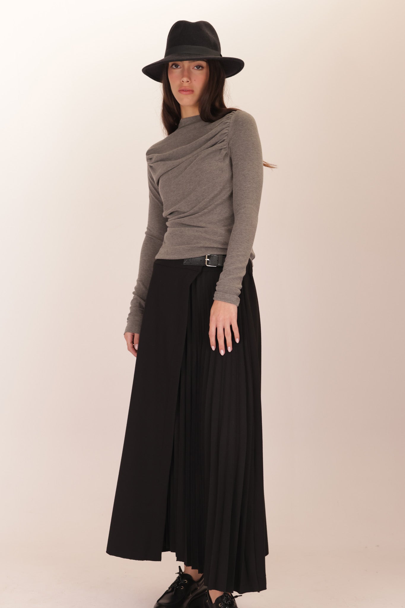 PLEATED DETAILED TOP – Top with pleated detailing.