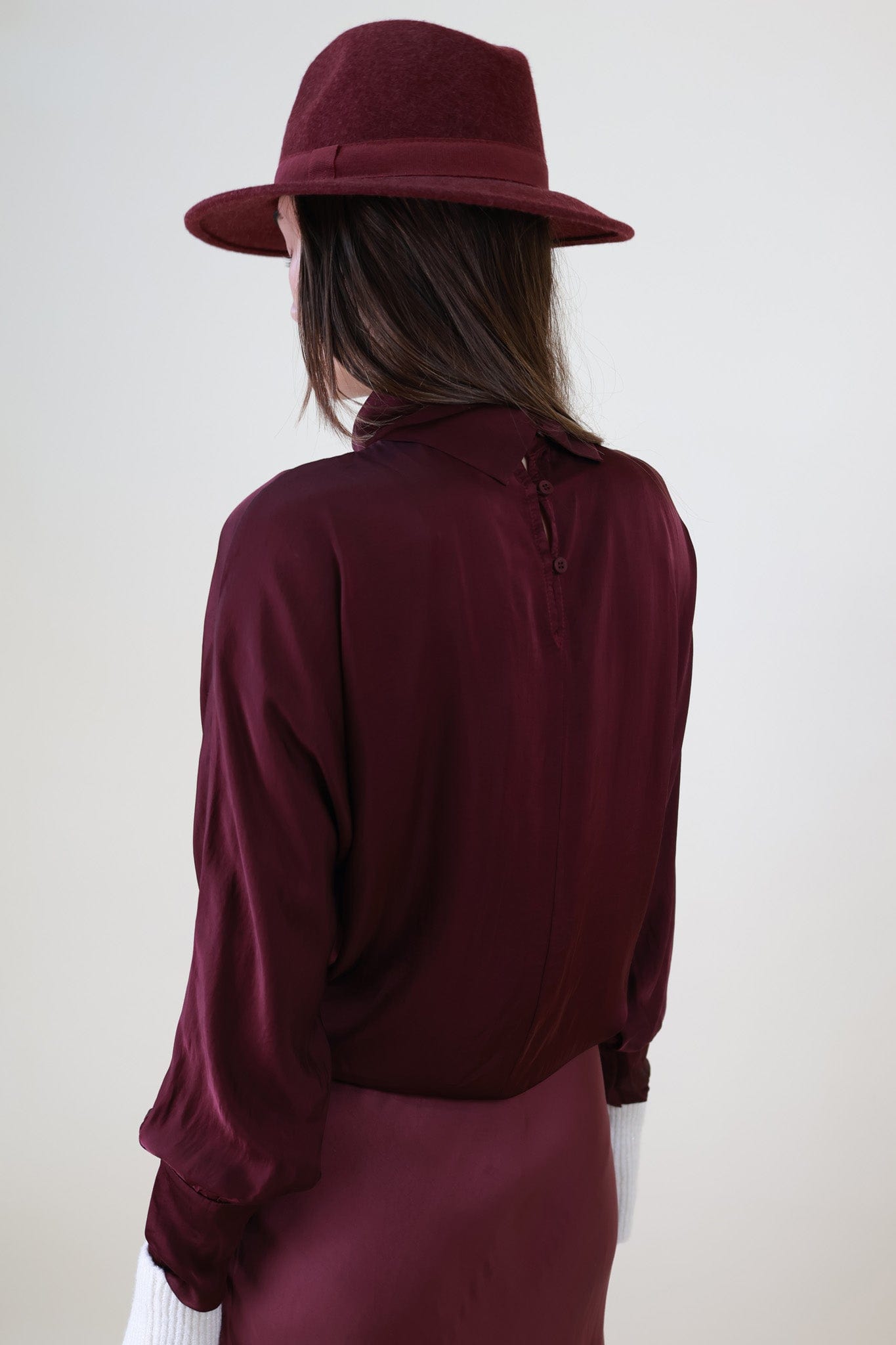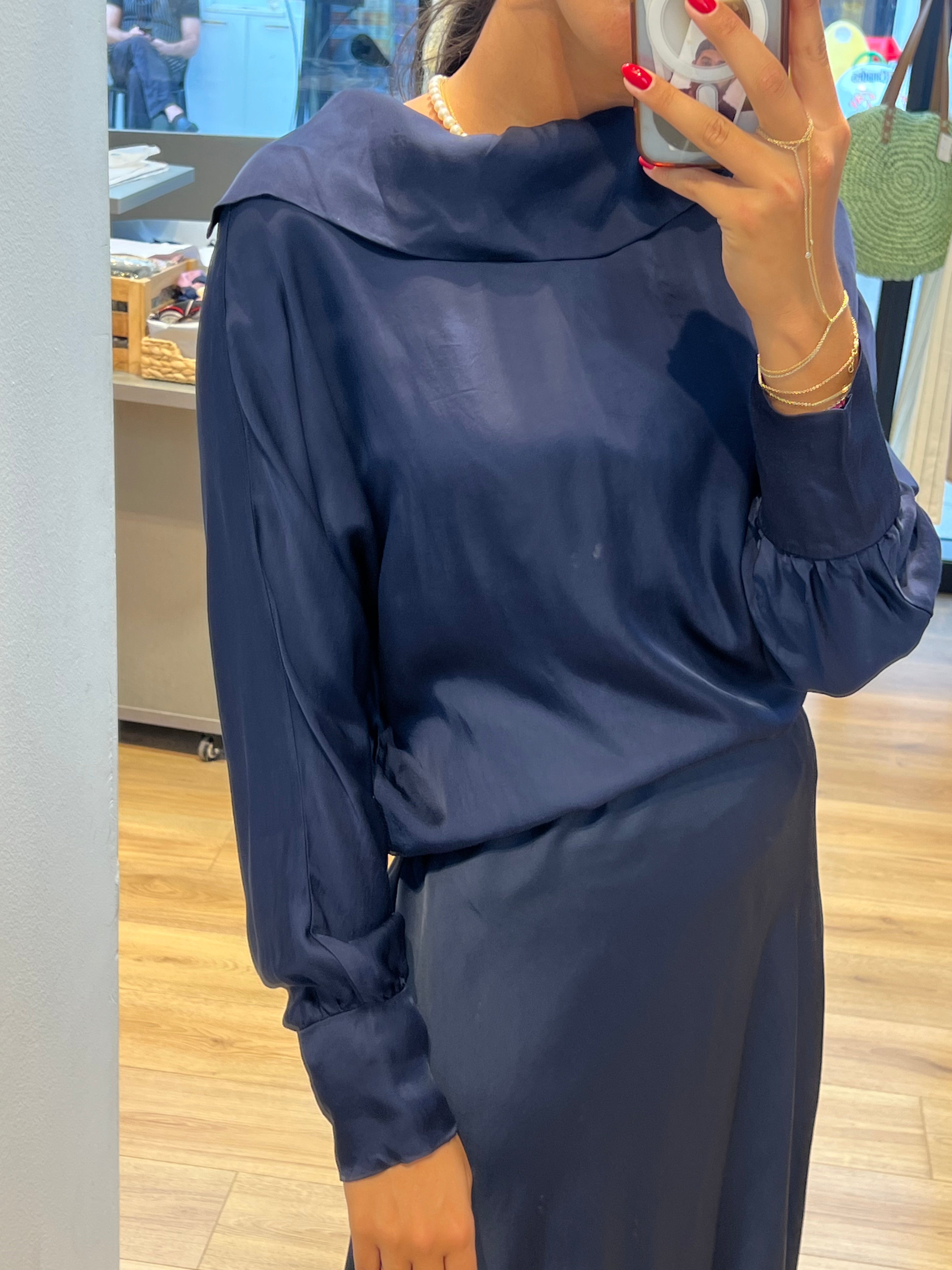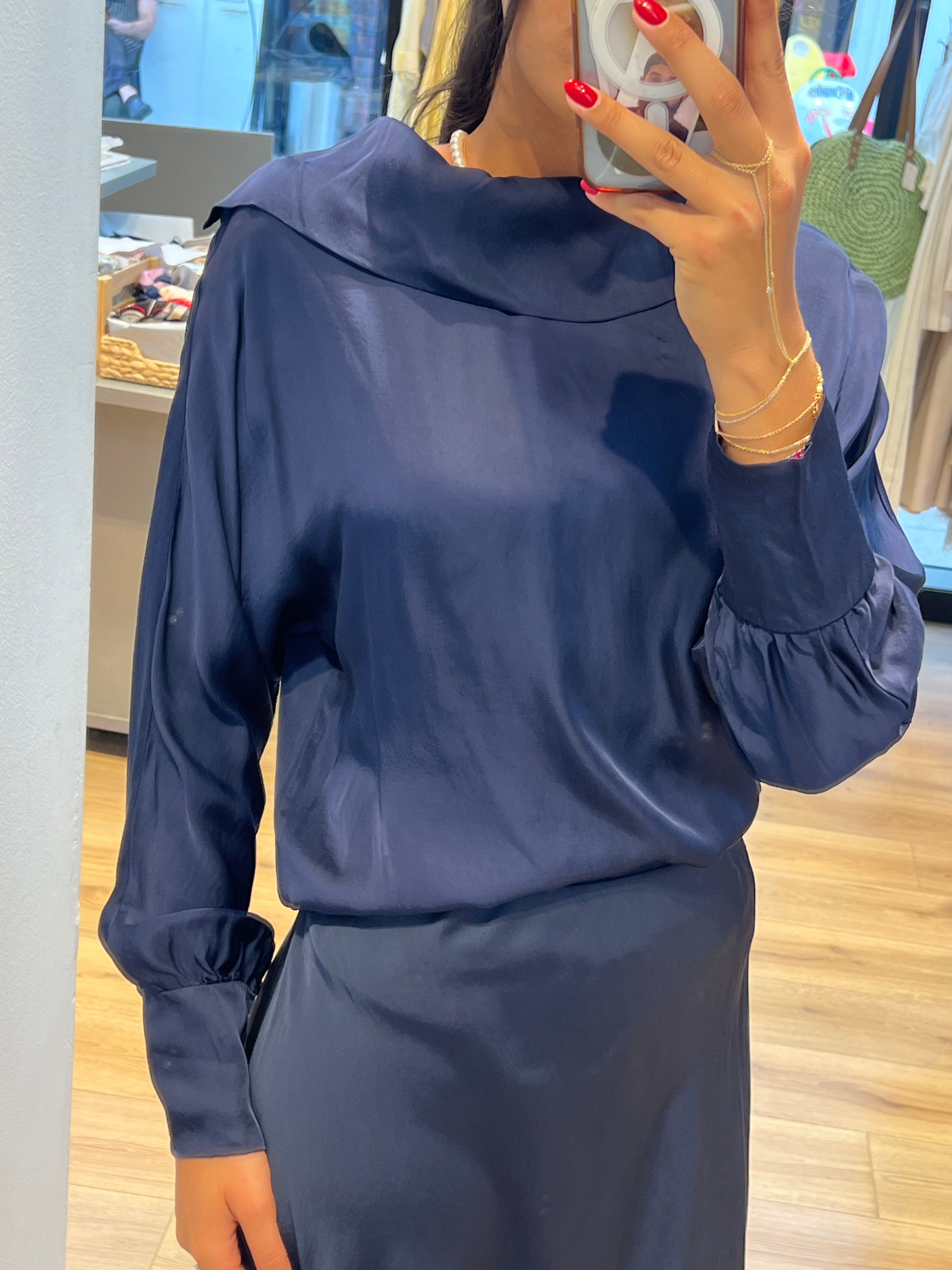 This top is a must-have, featuring a draped collar that instantly elevates any outfit. Made from 100% viscose and crafted in Italy, it is available in a variety of colors to suit your style.