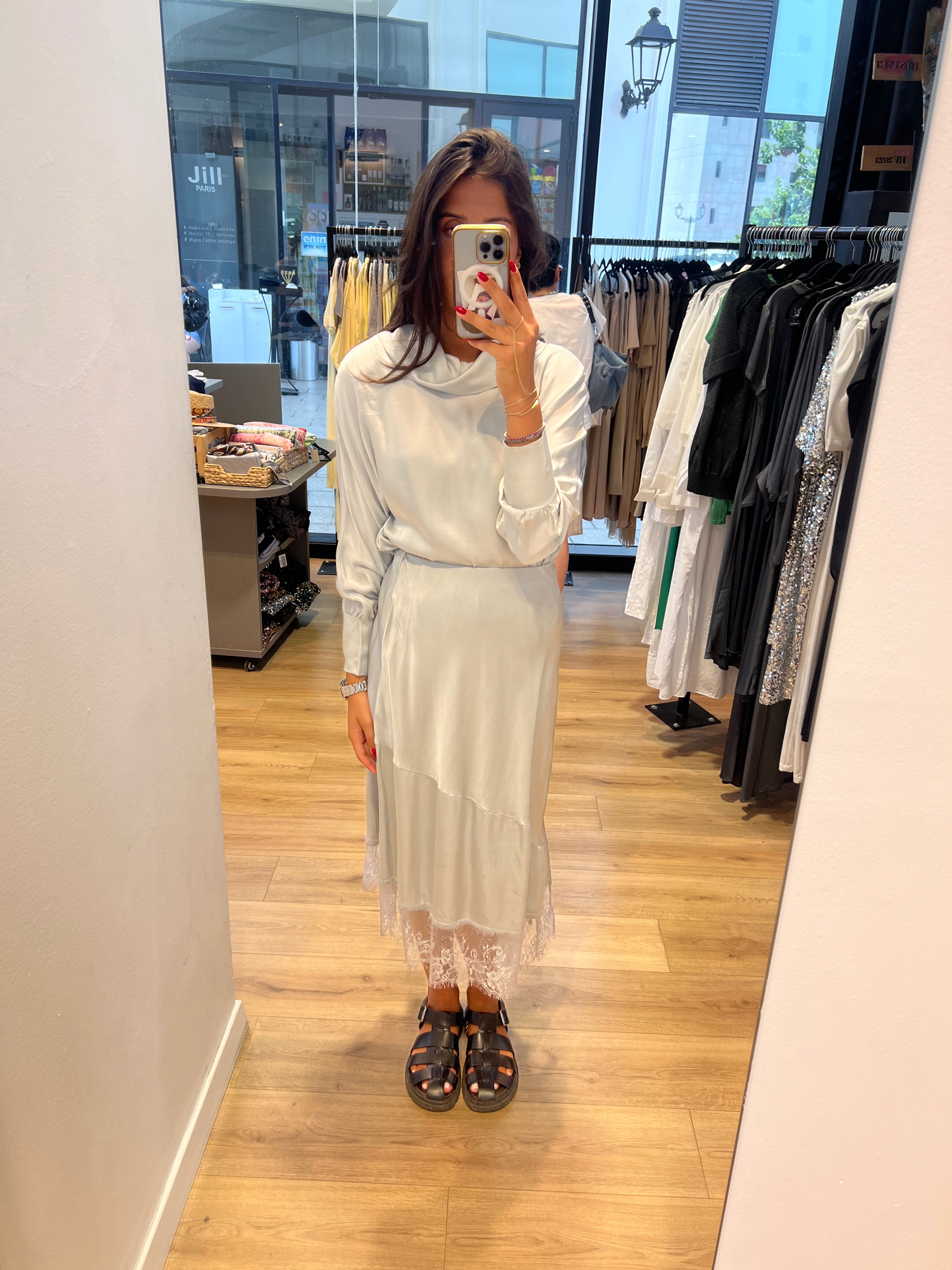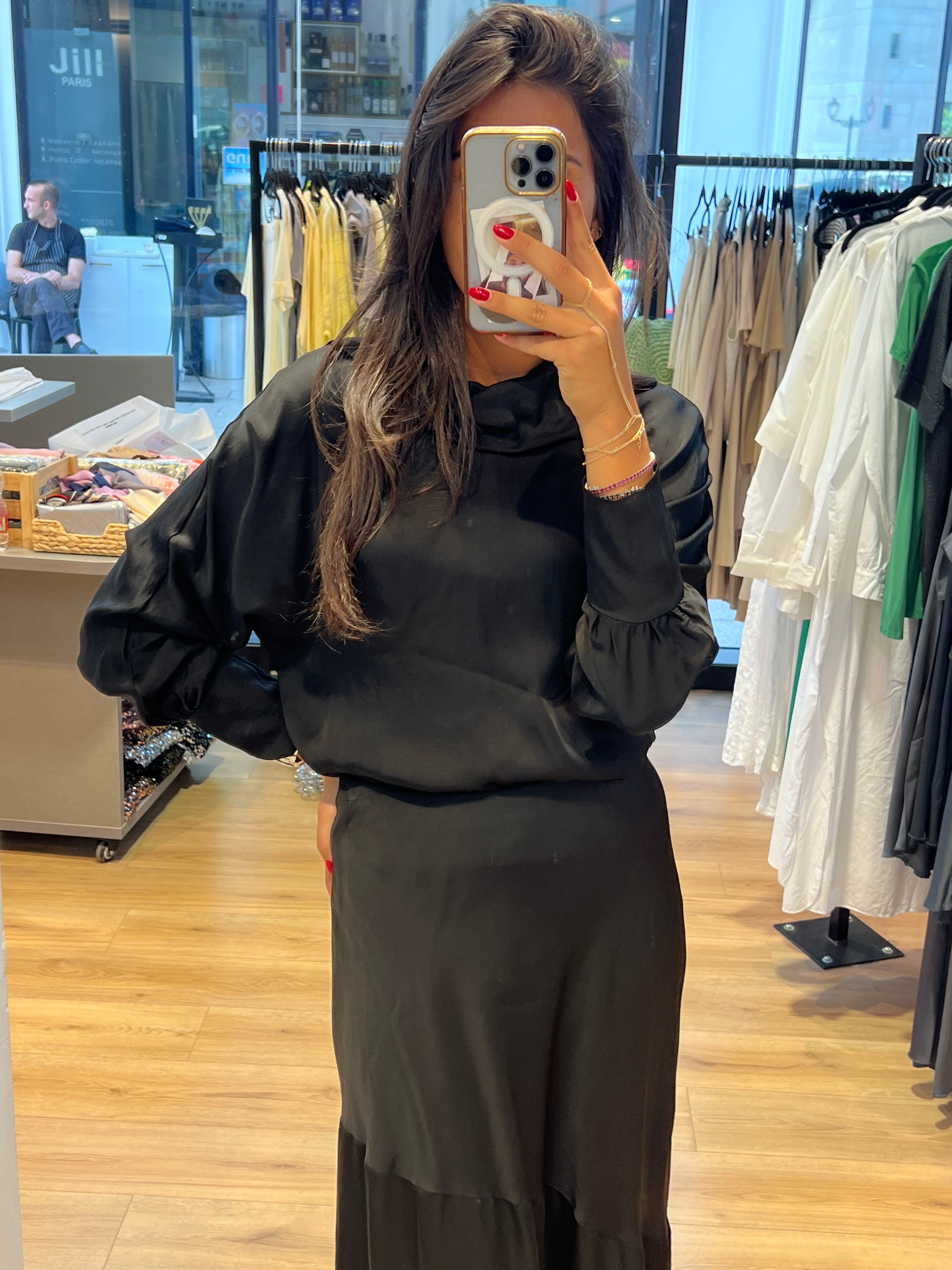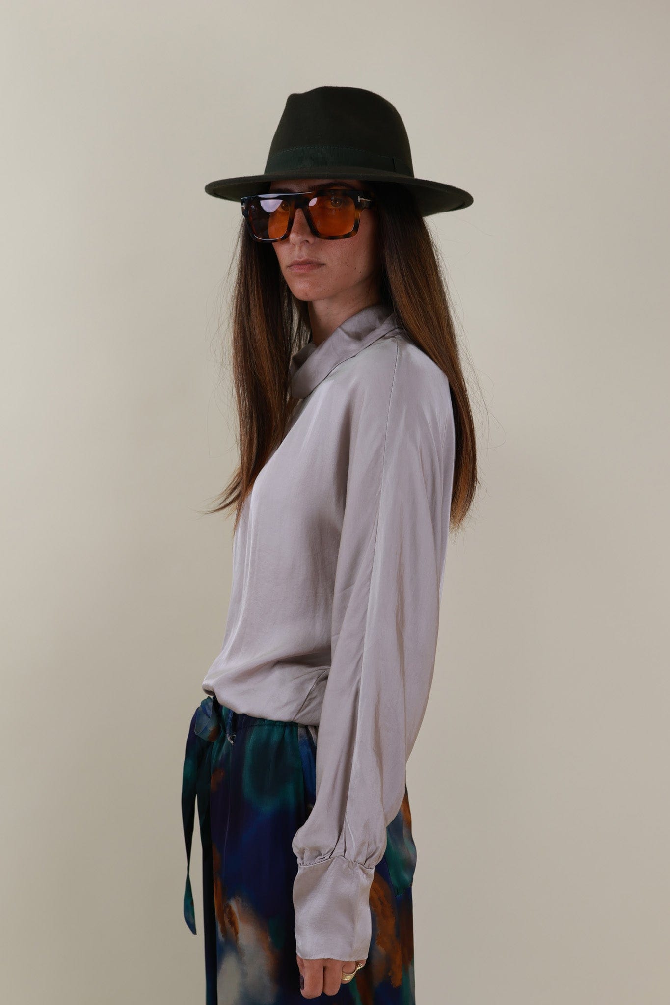 This top is a must-have, featuring a draped collar that instantly elevates any outfit. Made from 100% viscose and crafted in Italy, it is available in a variety of colors to suit your style.