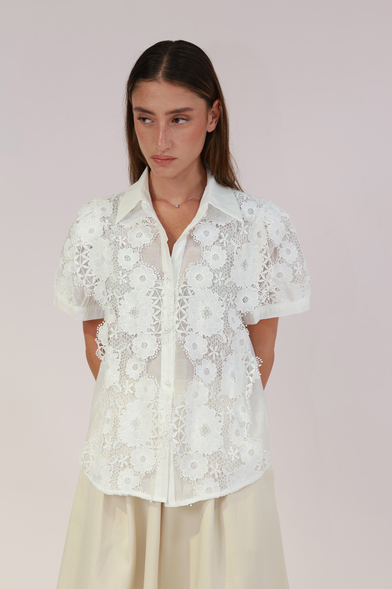 SHORT SLEEVES LACE SHIRT – Romantic lace with a modern touch.