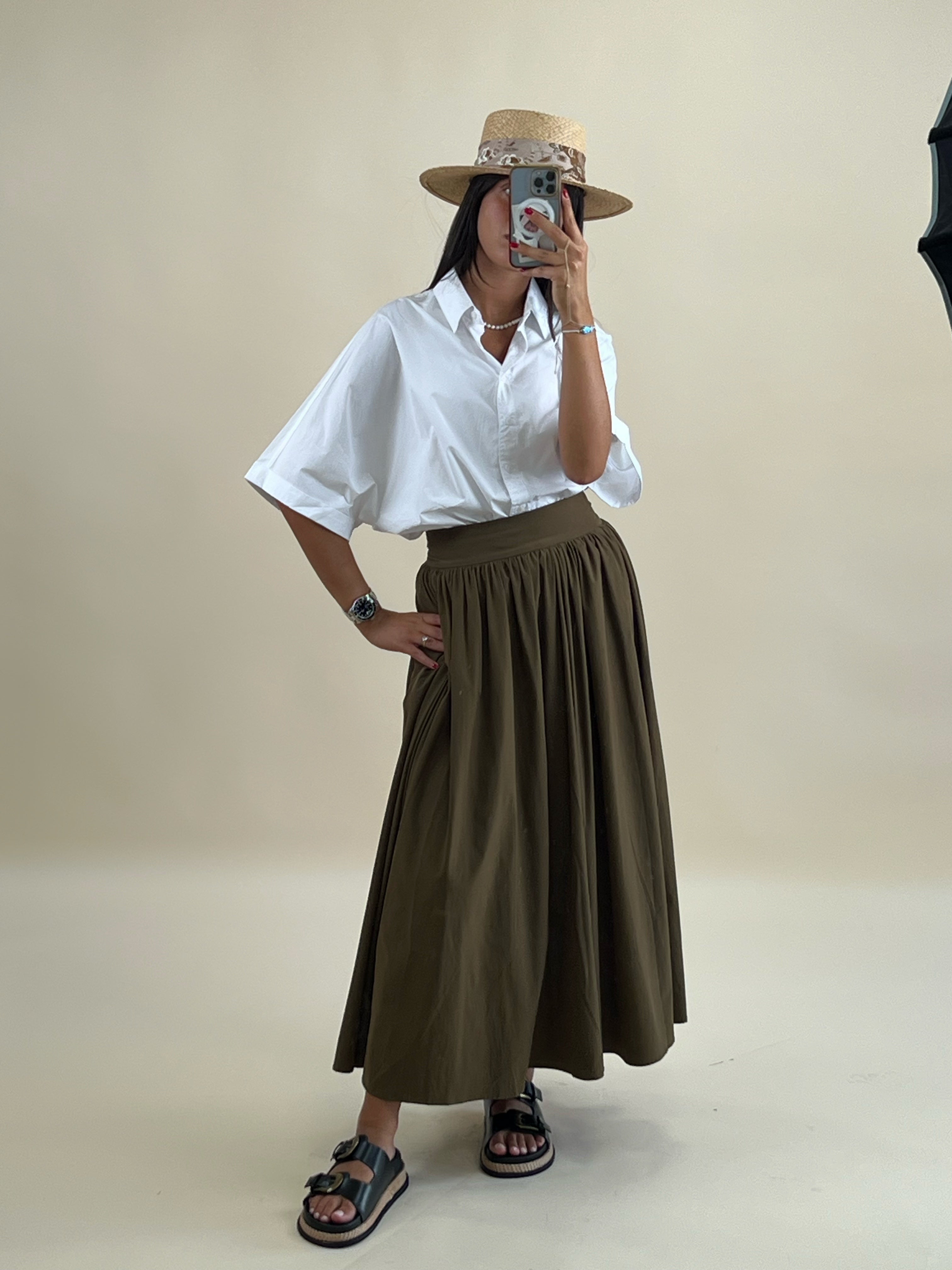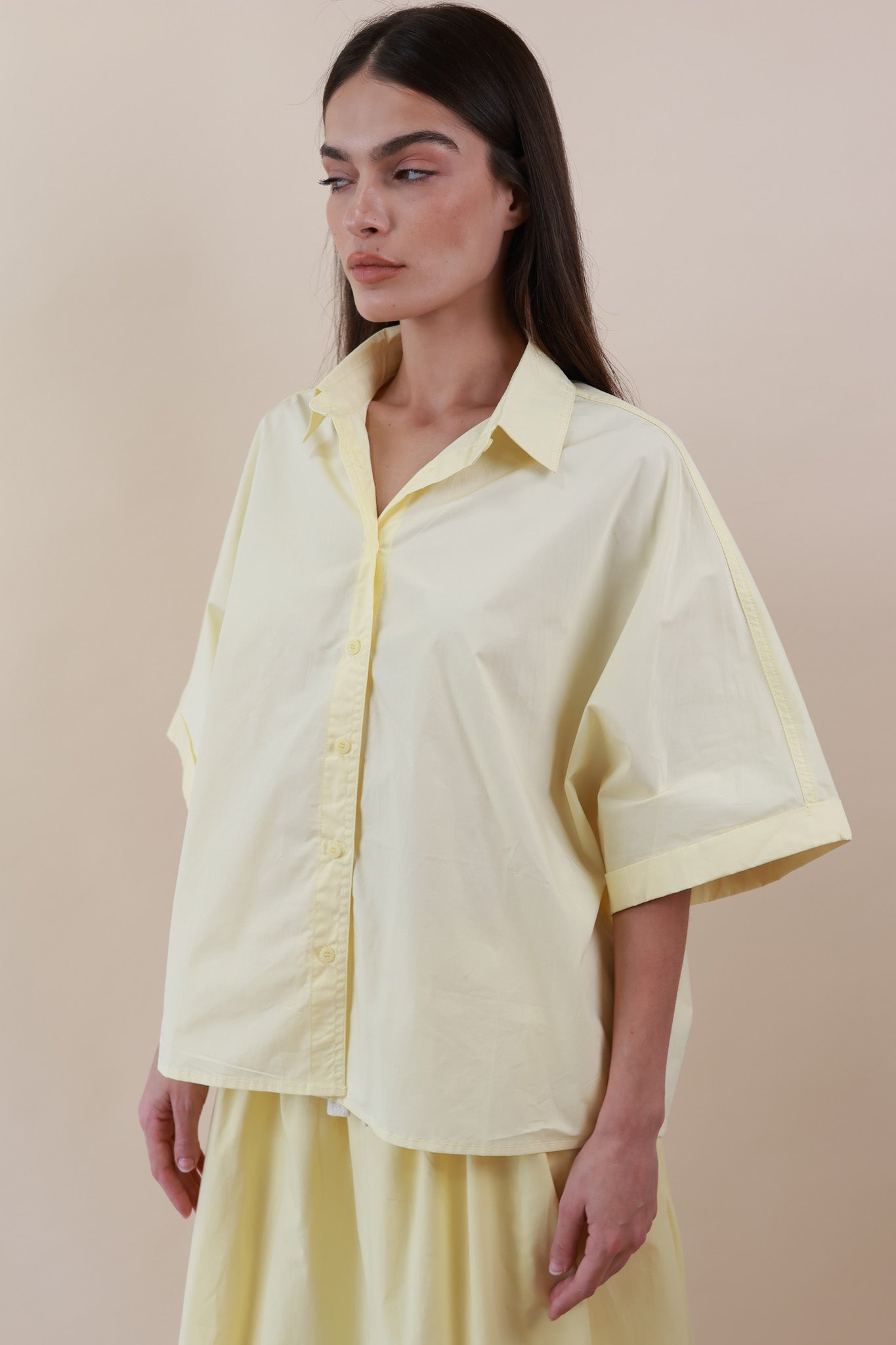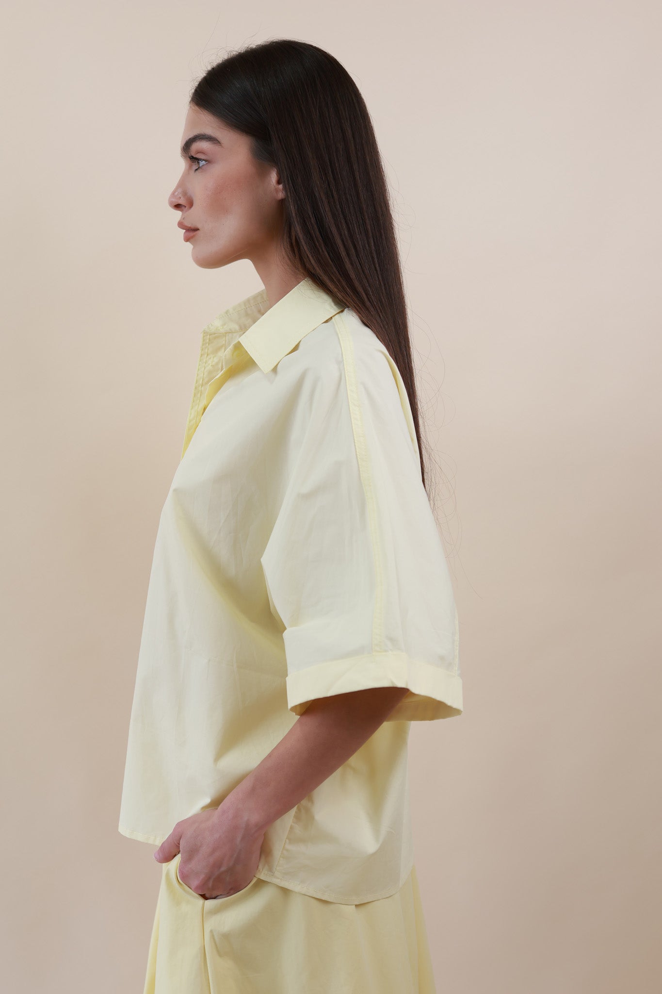 SHORT SLEEVES SHIRT – Flared cotton crop blouse, light and breezy.