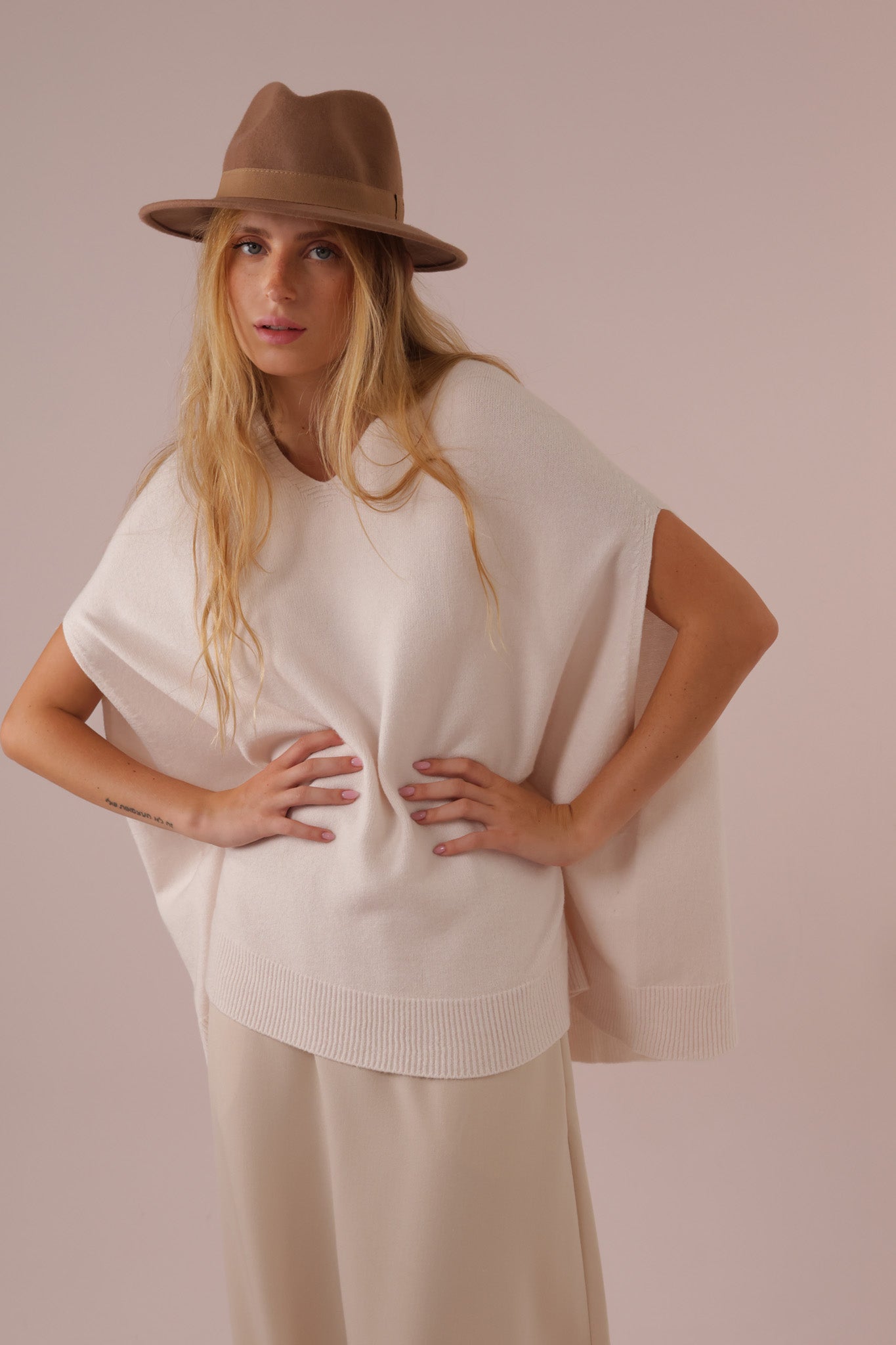 V OVERSIZED NO SLEEV KNIT – A modern twist on classic knitwear.