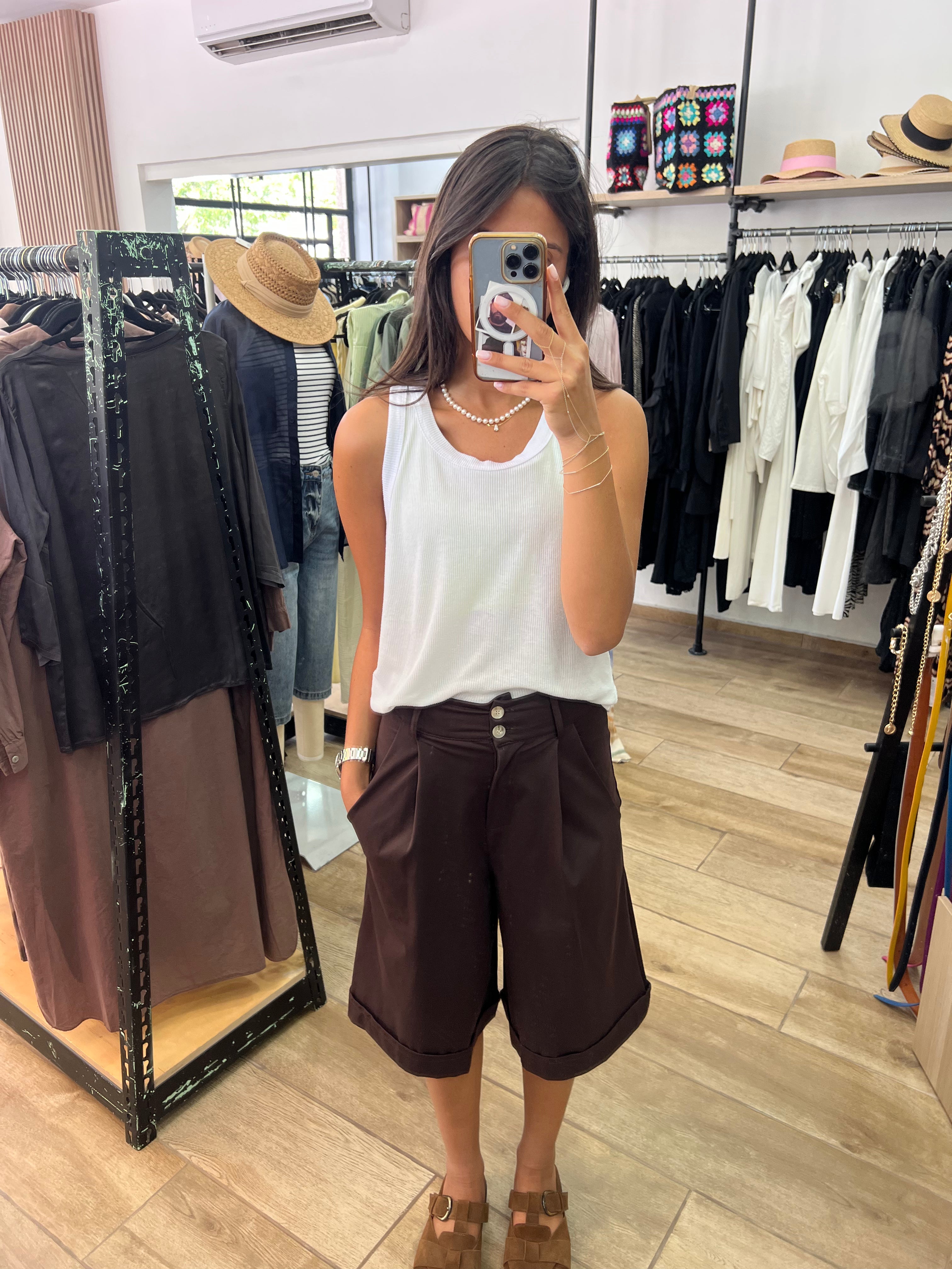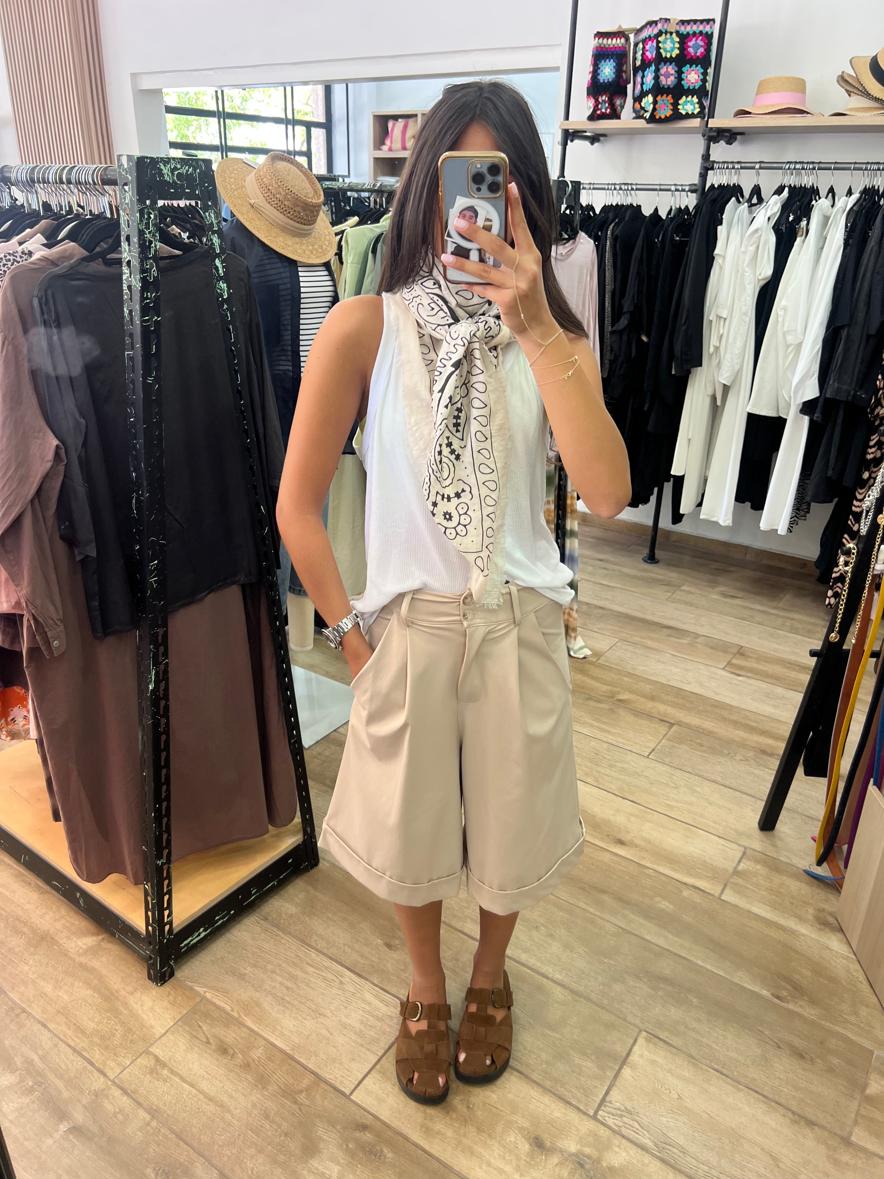 Comment le porter : avec une chemise blanche rentrée et des sandales plates pour une allure simple et casual, ou avec un top ajusté et des mules pour un style plus féminin.