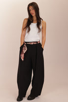 Tailored carrot-fit pants offering a modern, flattering silhouette