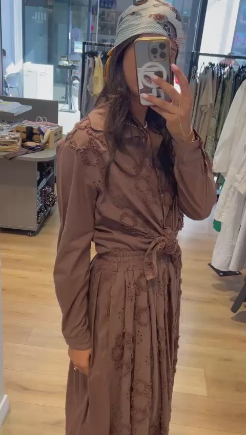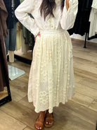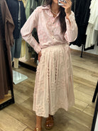 Confectionnée en 100% coton, cette jupe midi fabriquée en Italie séduit par son tombé fluide, sa taille élastiquée confortable et ses broderies ton sur ton au motif floral. Une pièce au charme bohème chic, à la fois élégante et facile à porter.