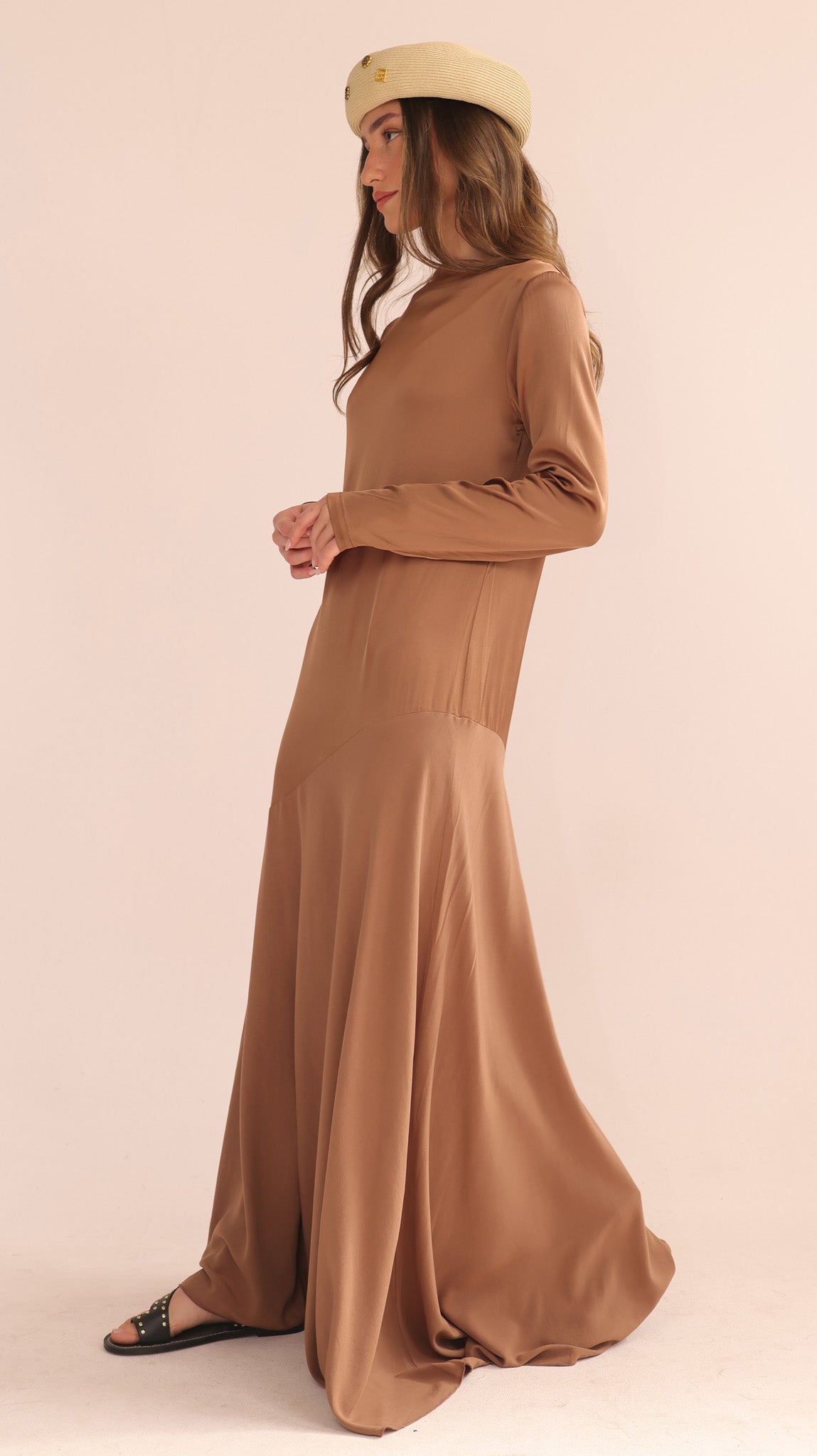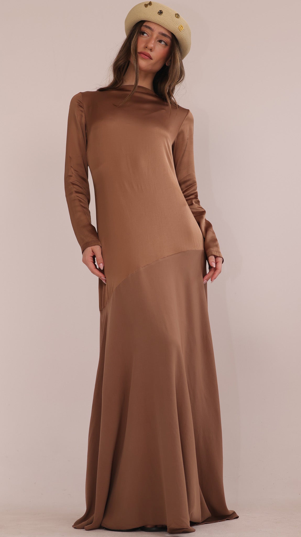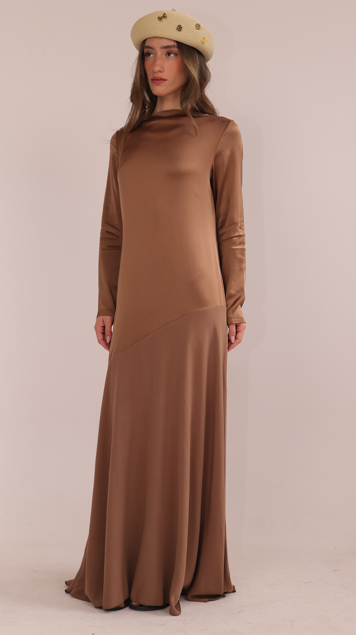 Crafted from a silky satin fabric, this bi-material dress drapes beautifully along the silhouette. Its straight cut creates a refined and modern line, while the soft sheen enhances every look with understated elegance. The contrast of textures adds subtle depth, giving the piece a contemporary edge.