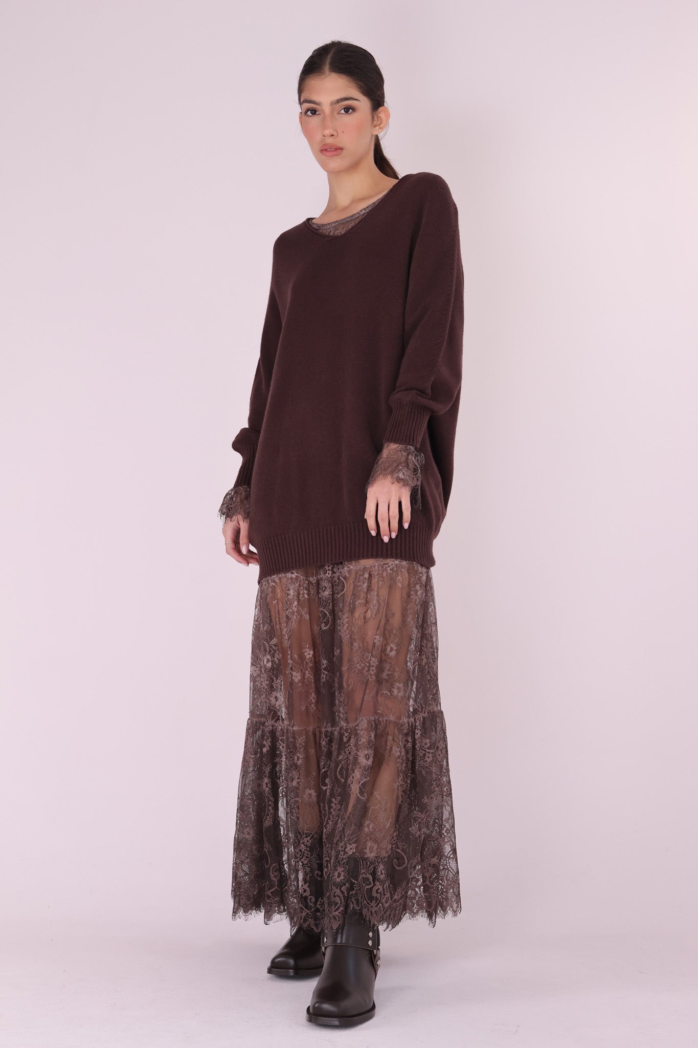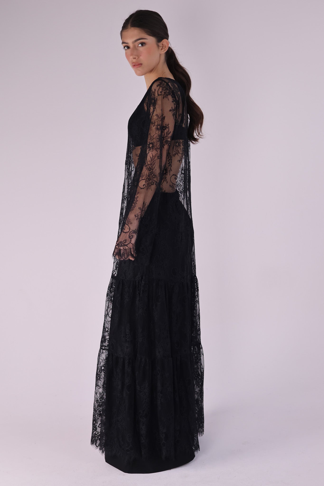 LACE TRANSPARENT DRESS – Elegant sheer lace dress with refined detailing.