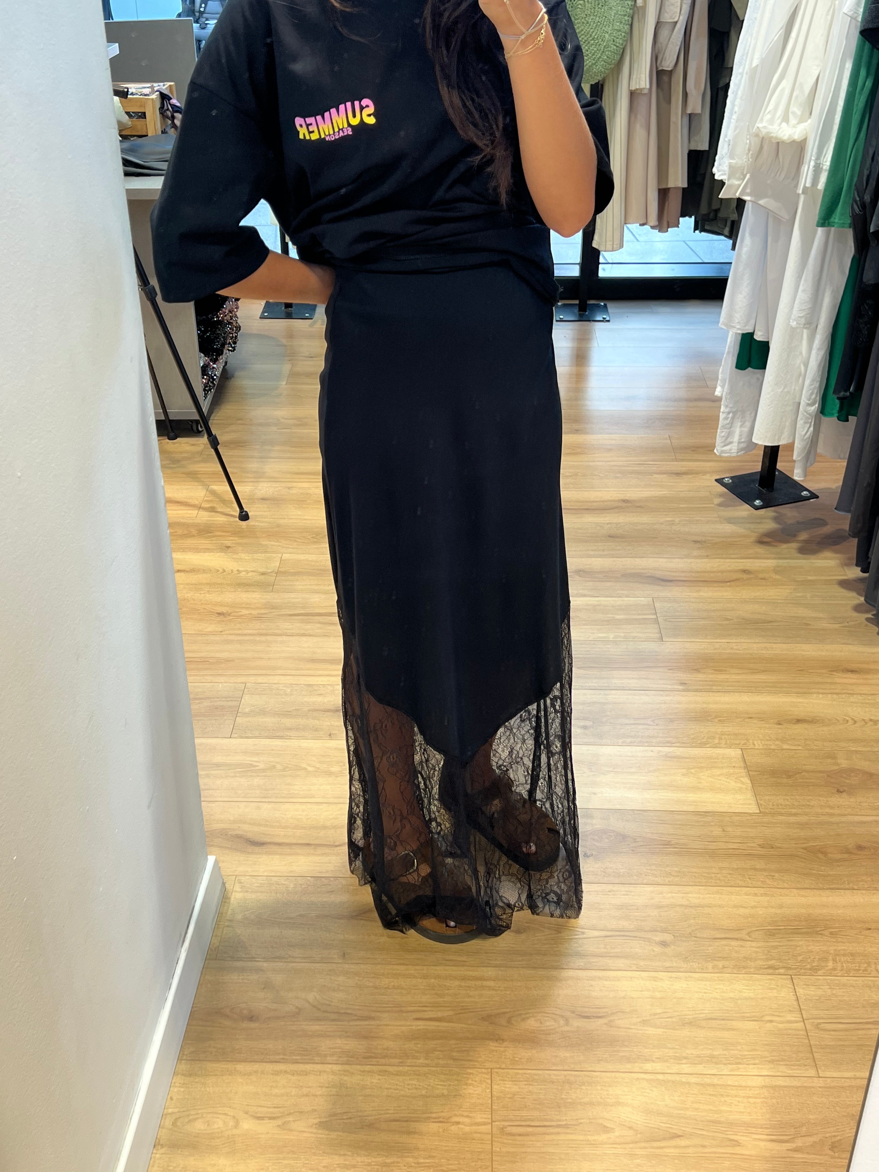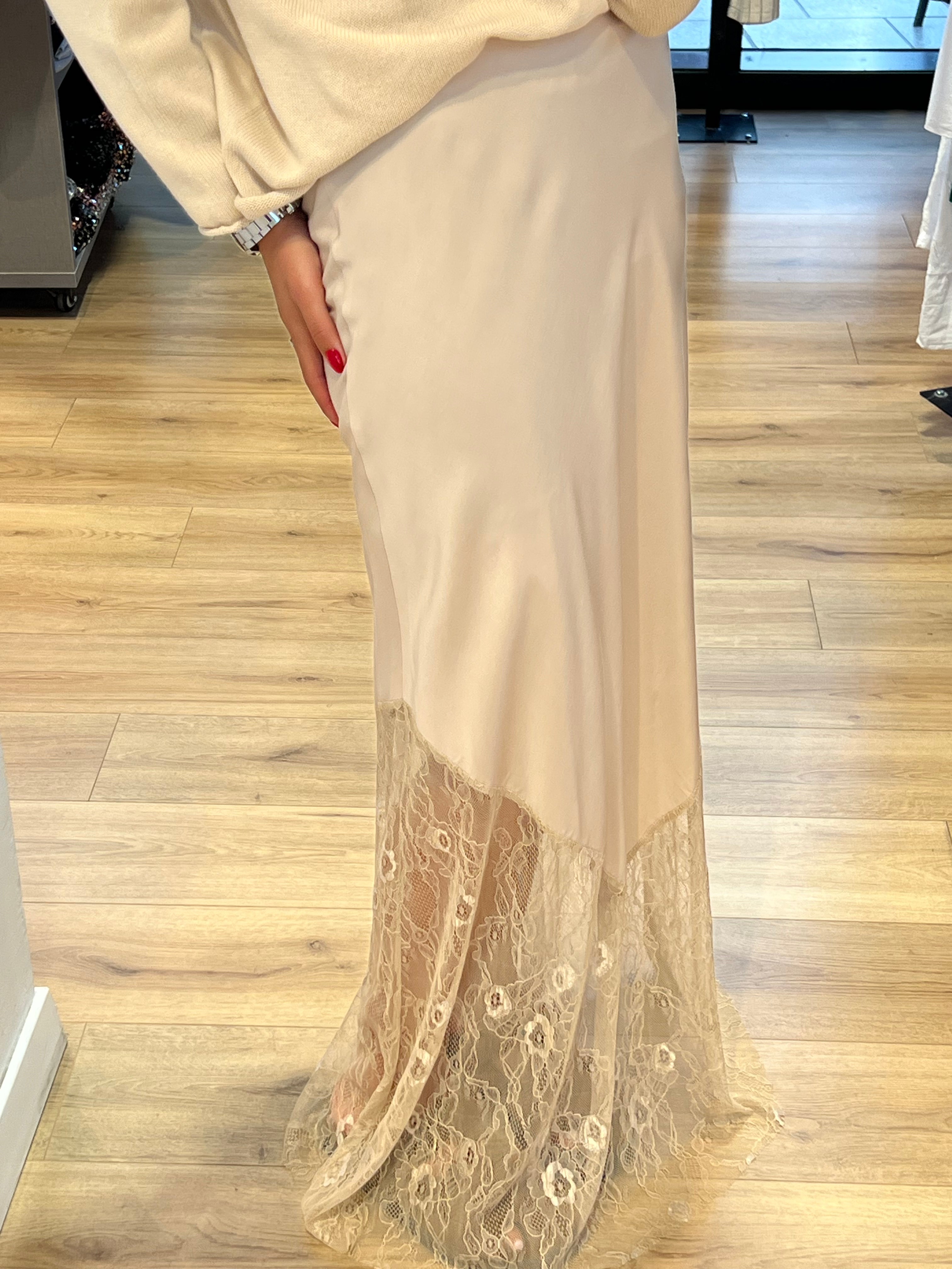 Cette jupe bi-matière mise sur le détail qui fait la différence : une base en dentelle qui apporte une touche féminine et stylée.