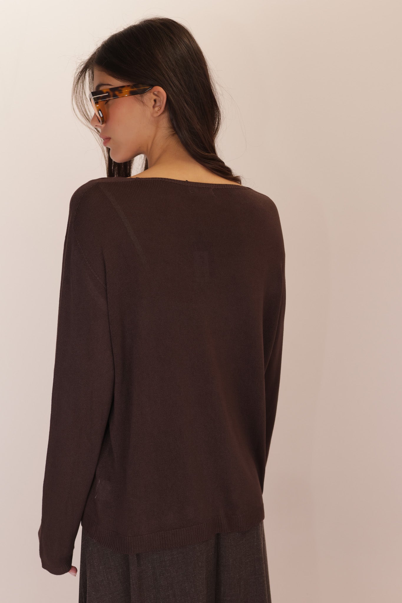 LONG SLEEVES VISCOSA V – Long-sleeve viscose top with a V-neck.