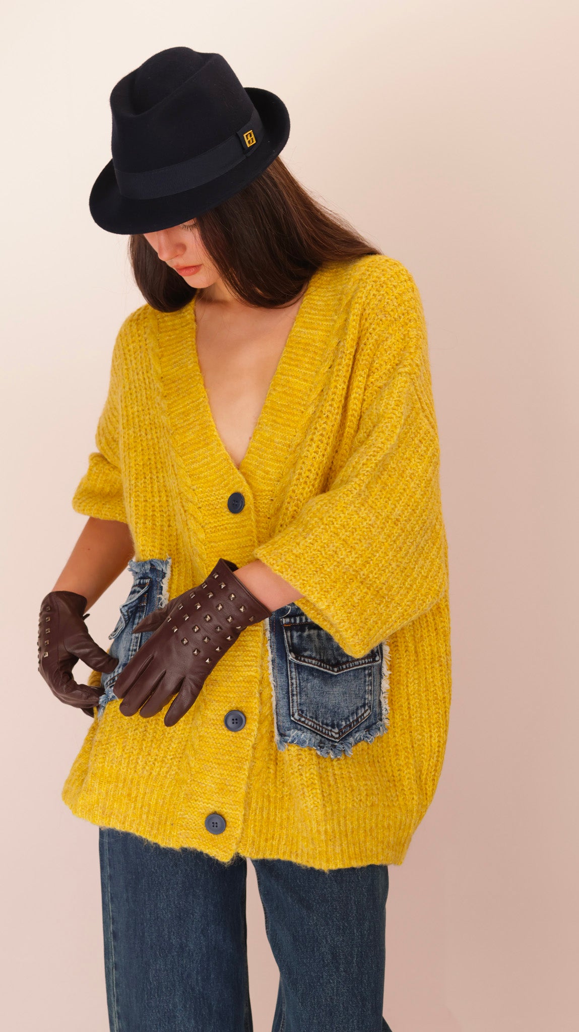 MIX DENIM WOOL JACKET | Sophisticated Long Gilet