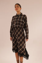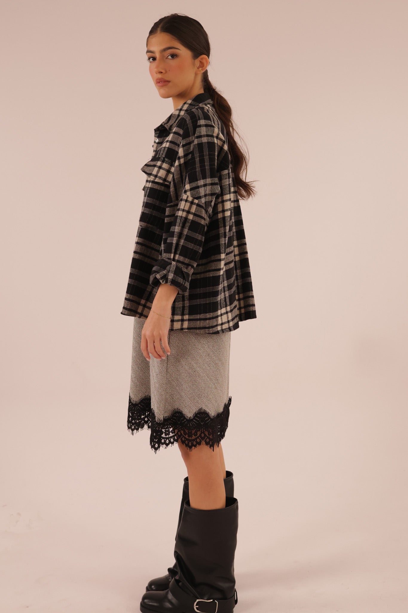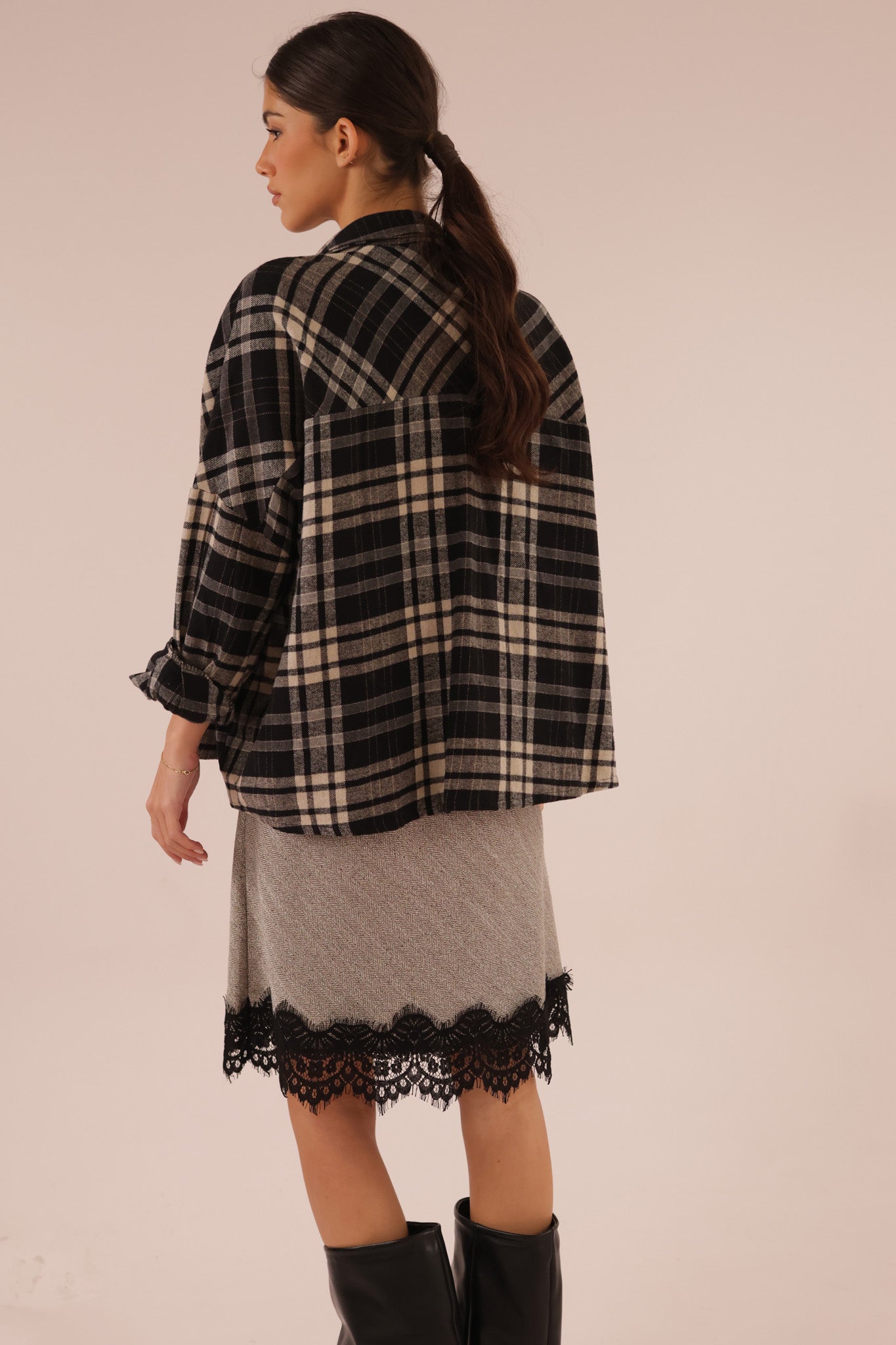 PLAID BUTTON SHIRT – Elegant plaid shirt with button detailing.