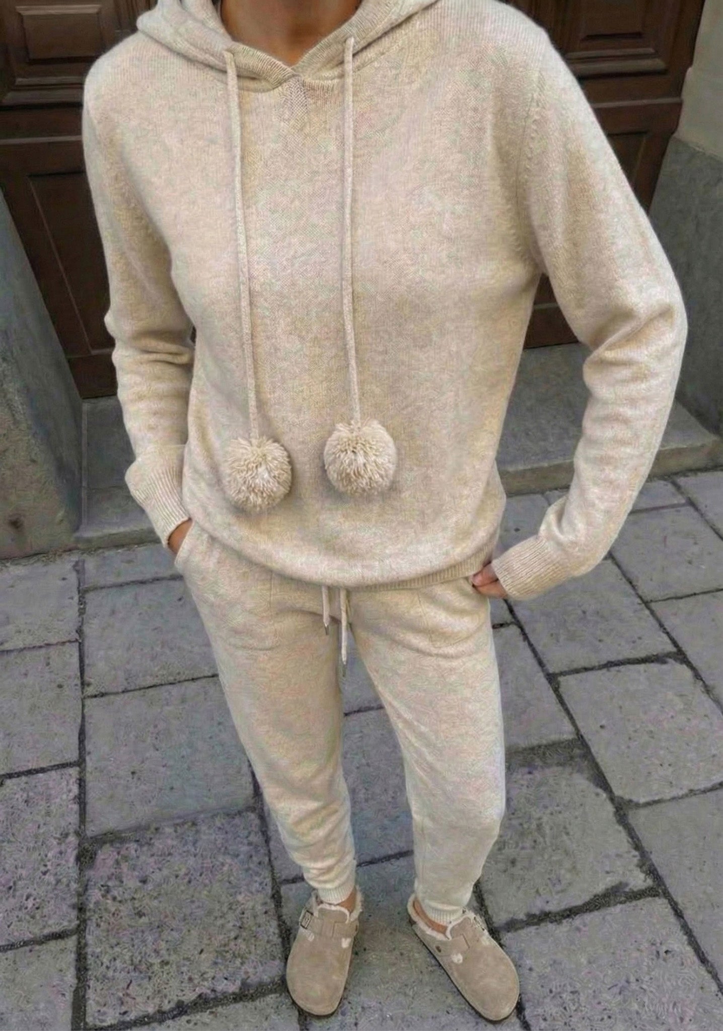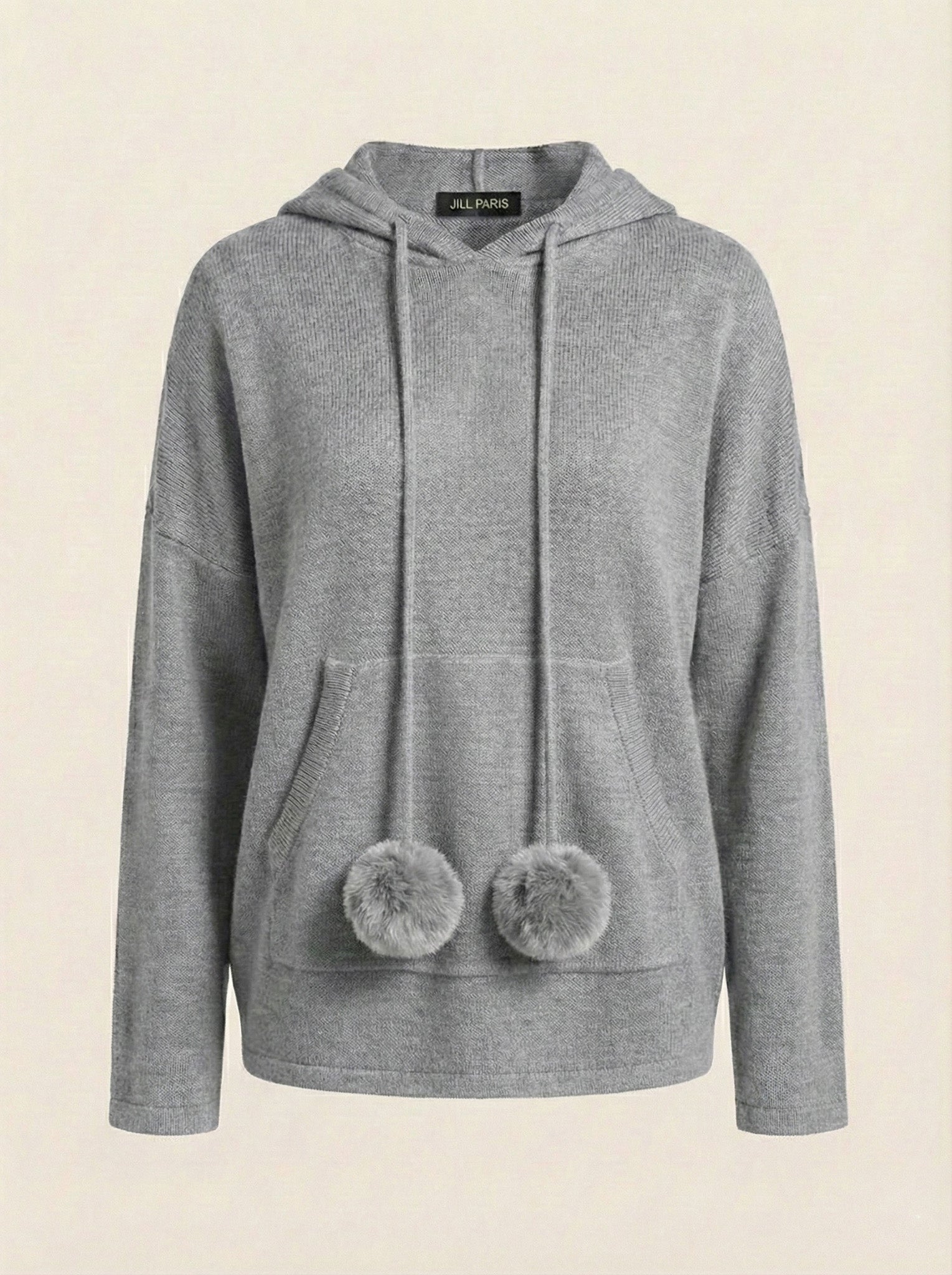 PULL PONPONS – Premium soft-touch knit hoodie-style sweater
